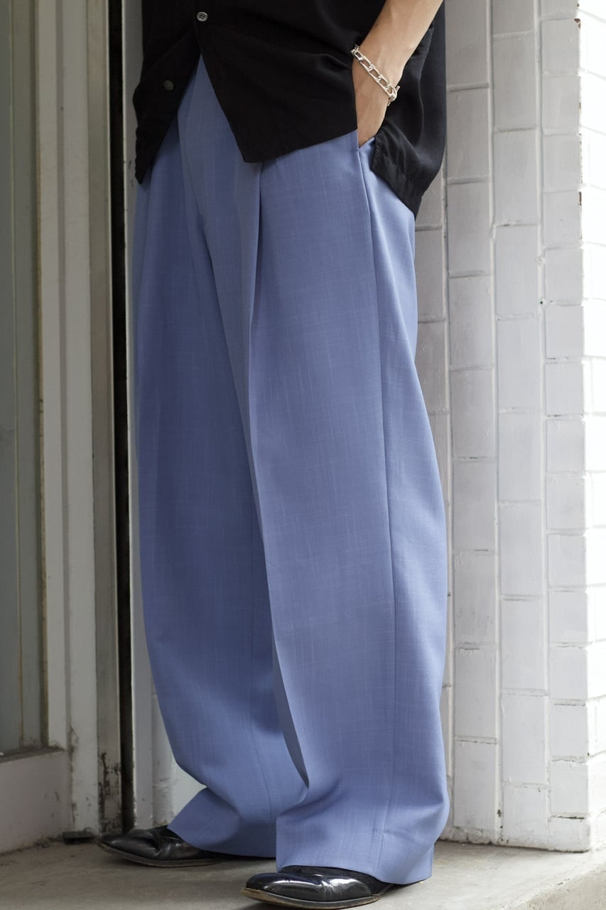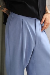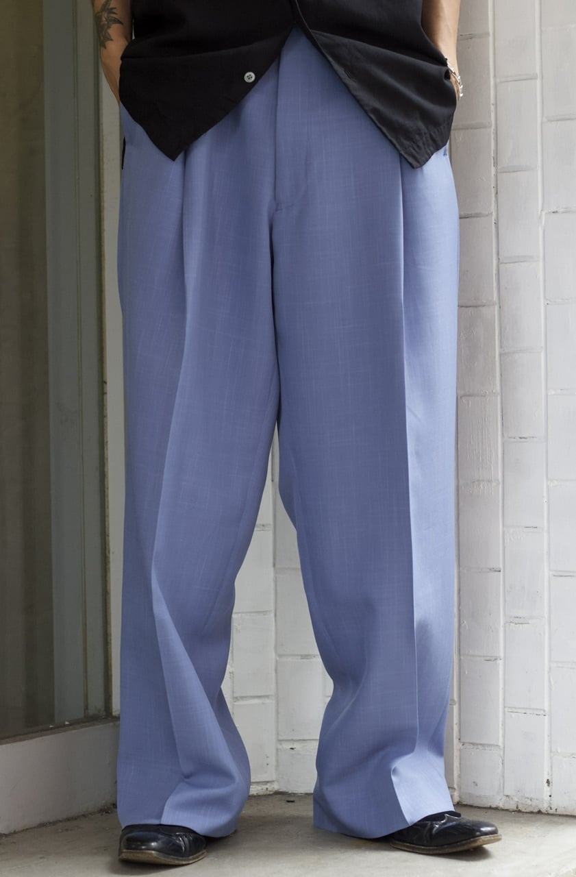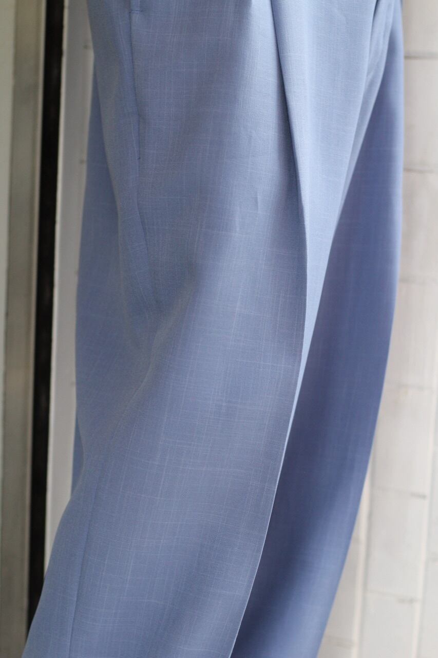 上品なブルーカラーに、腰回りに綺麗に入ったタック等、高級感のある一本となります☺︎