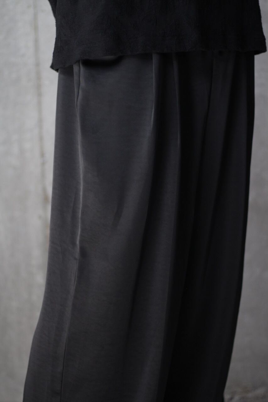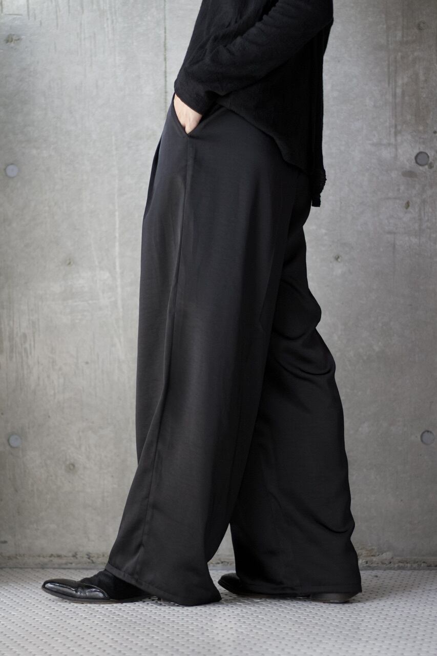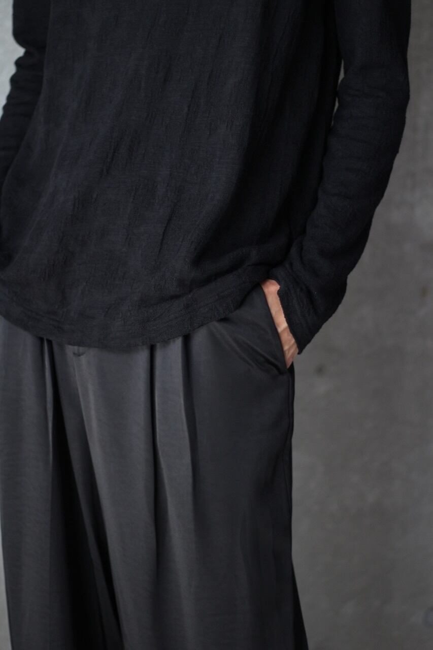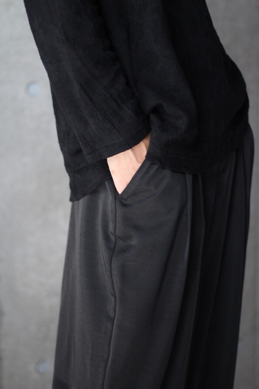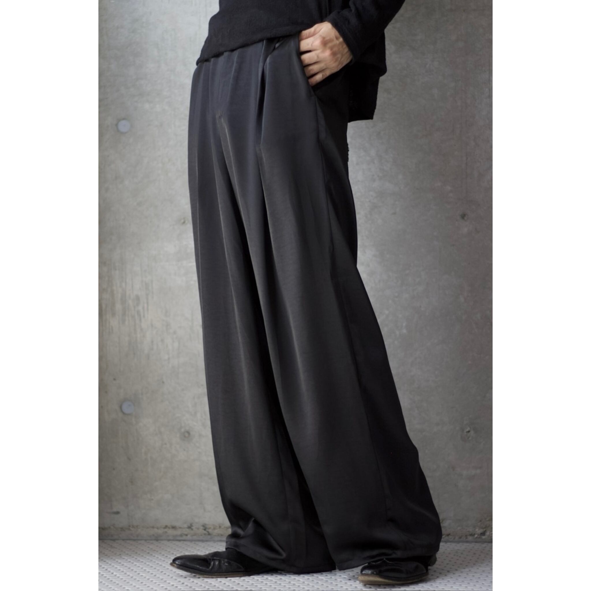 ウエストのバックにはゴムが付きながら、ベルトループも付属するイージーパンツの様なスラックス。