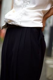 3タックと、綺麗なセンタープレスが施されているので、裾にかけてストンと落ちる上品な一着。