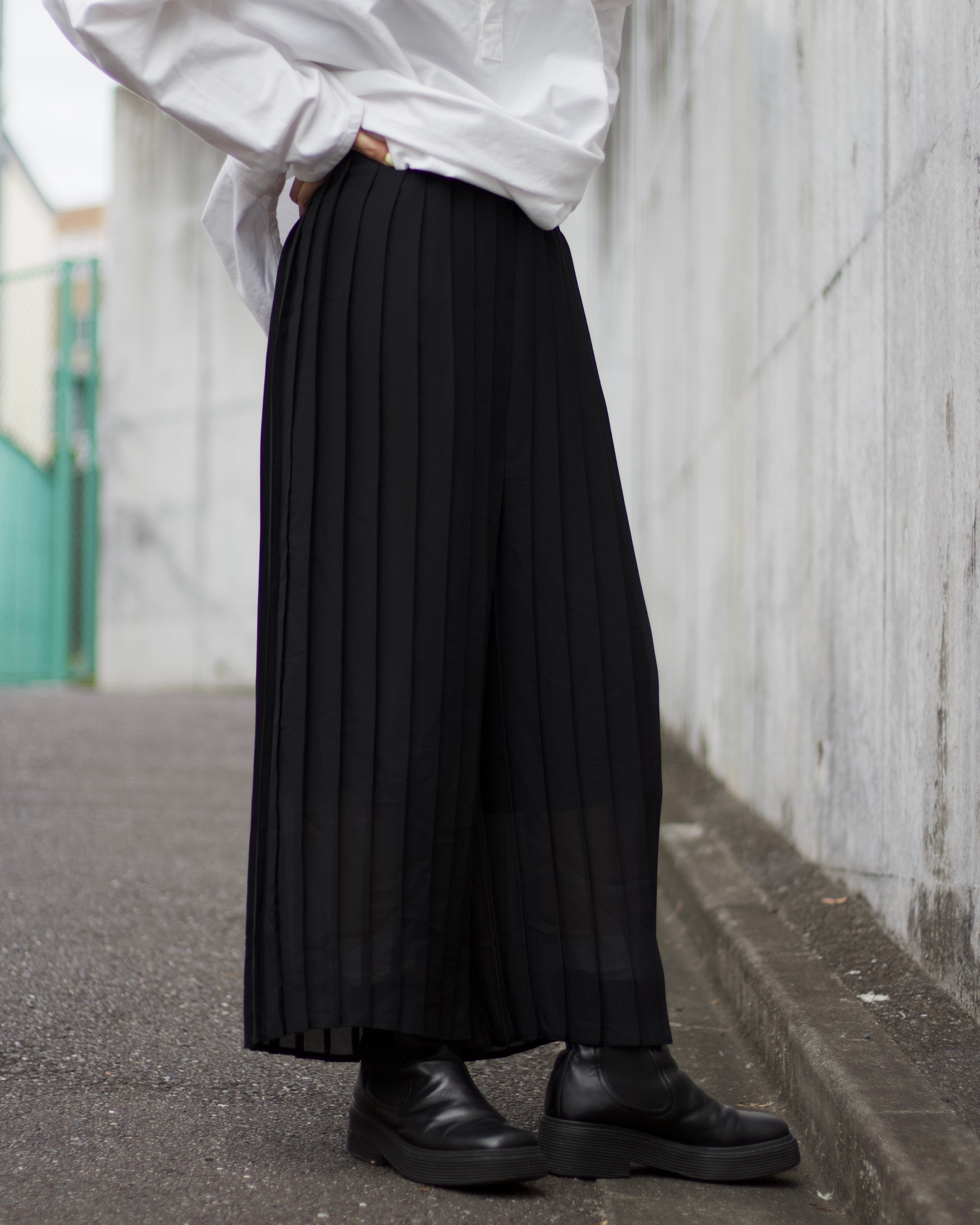 ワイドストレートシルエットのプリーツパンツが入荷。