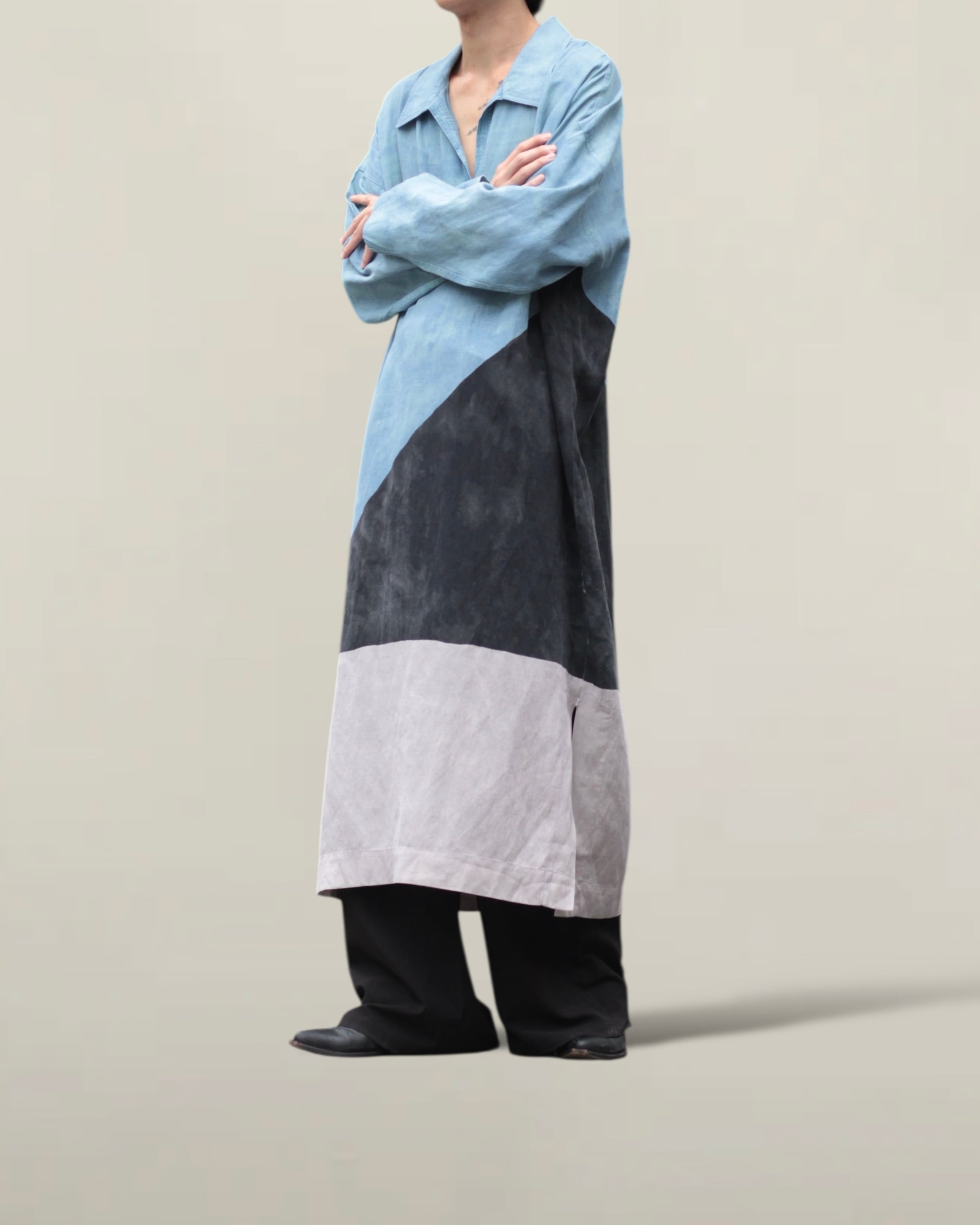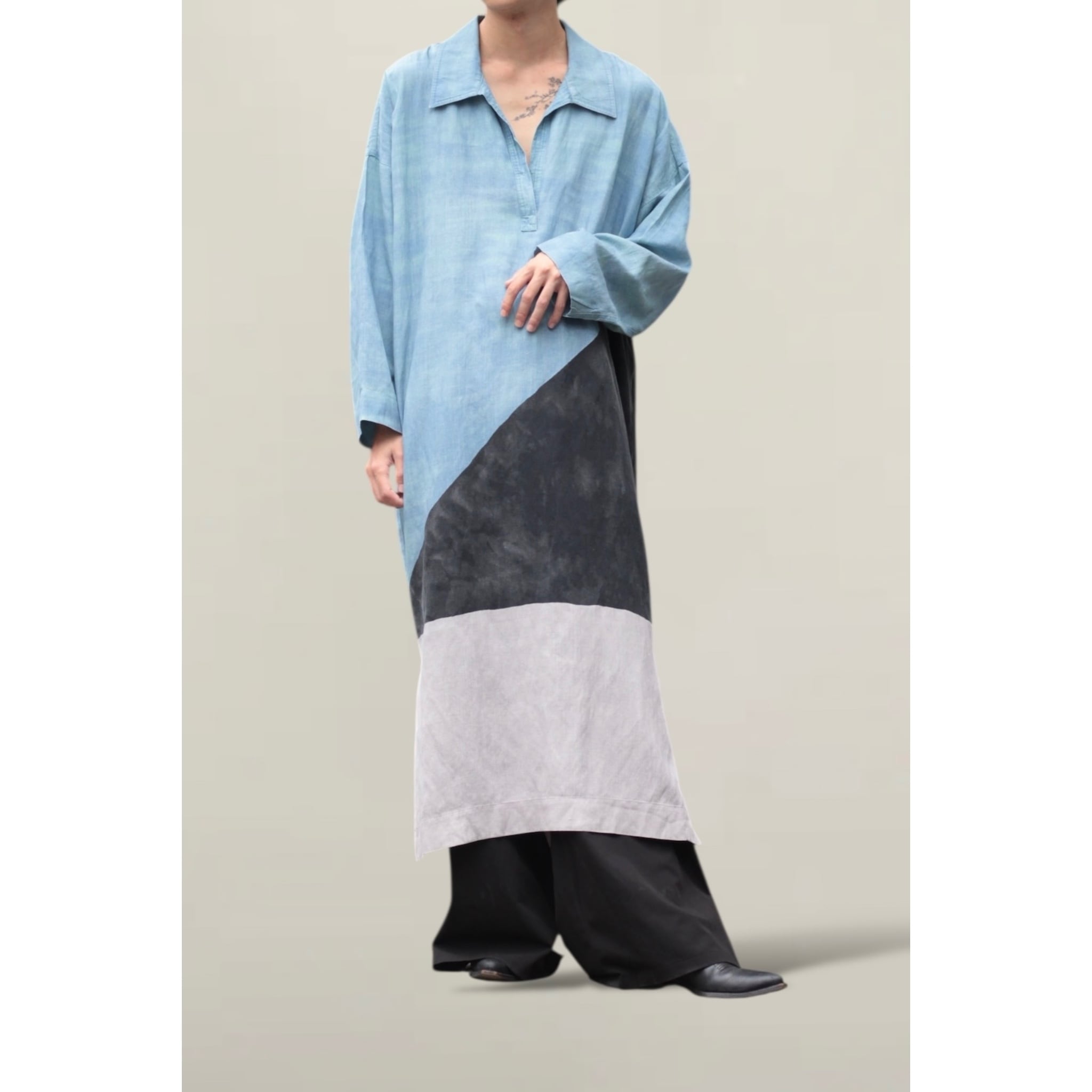 " Mara Hoffman "Ethnic linen skipper collar three-color dress with long shirt 【OT-13365】