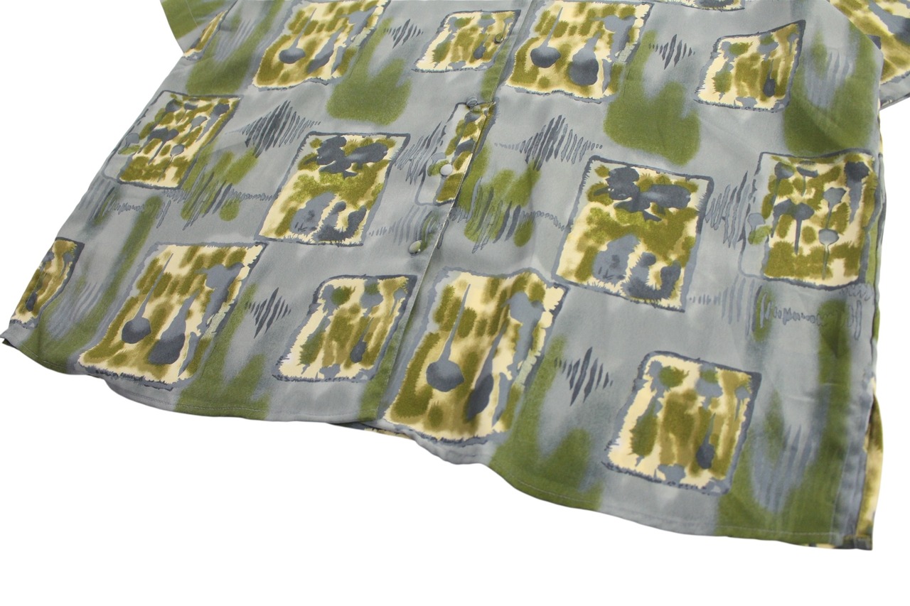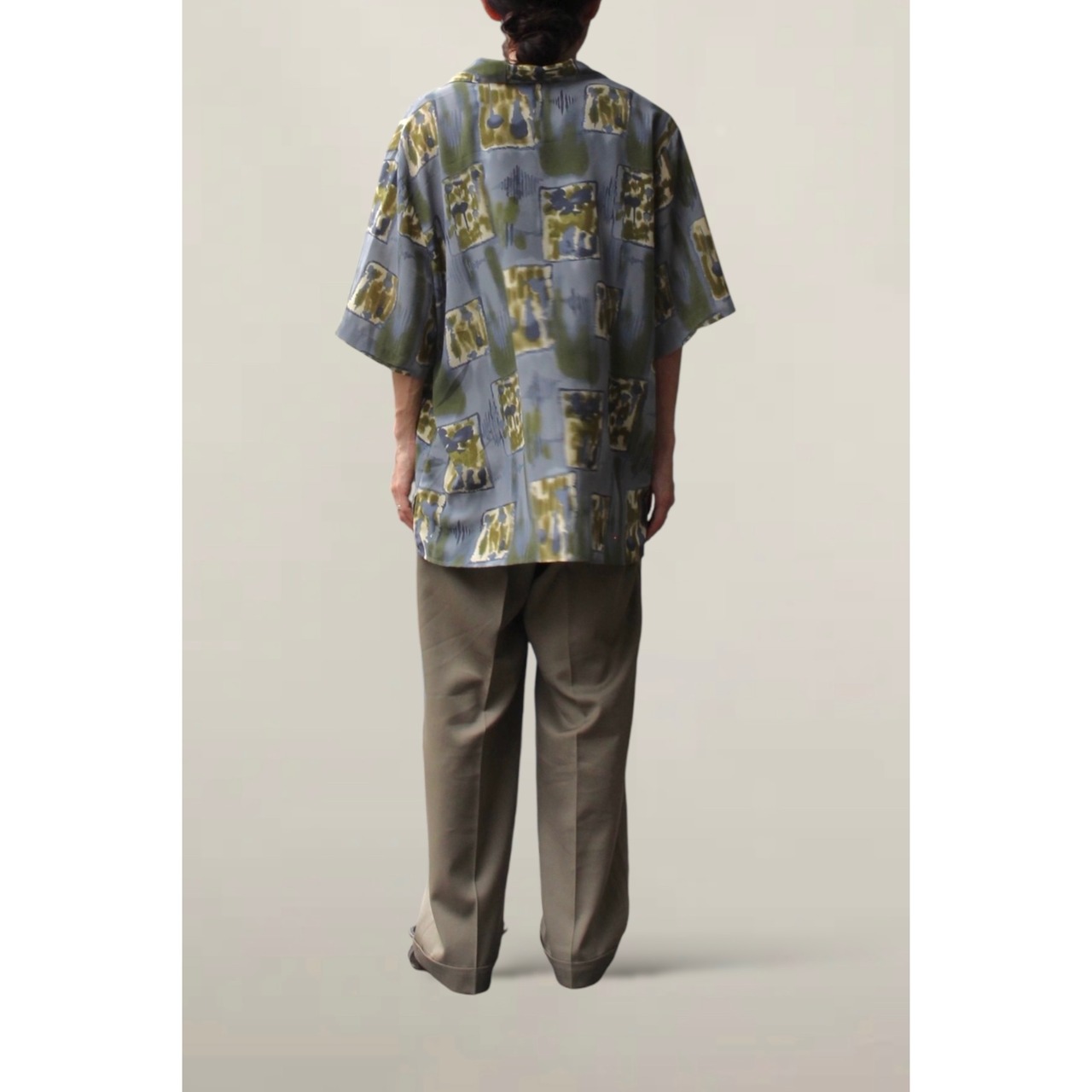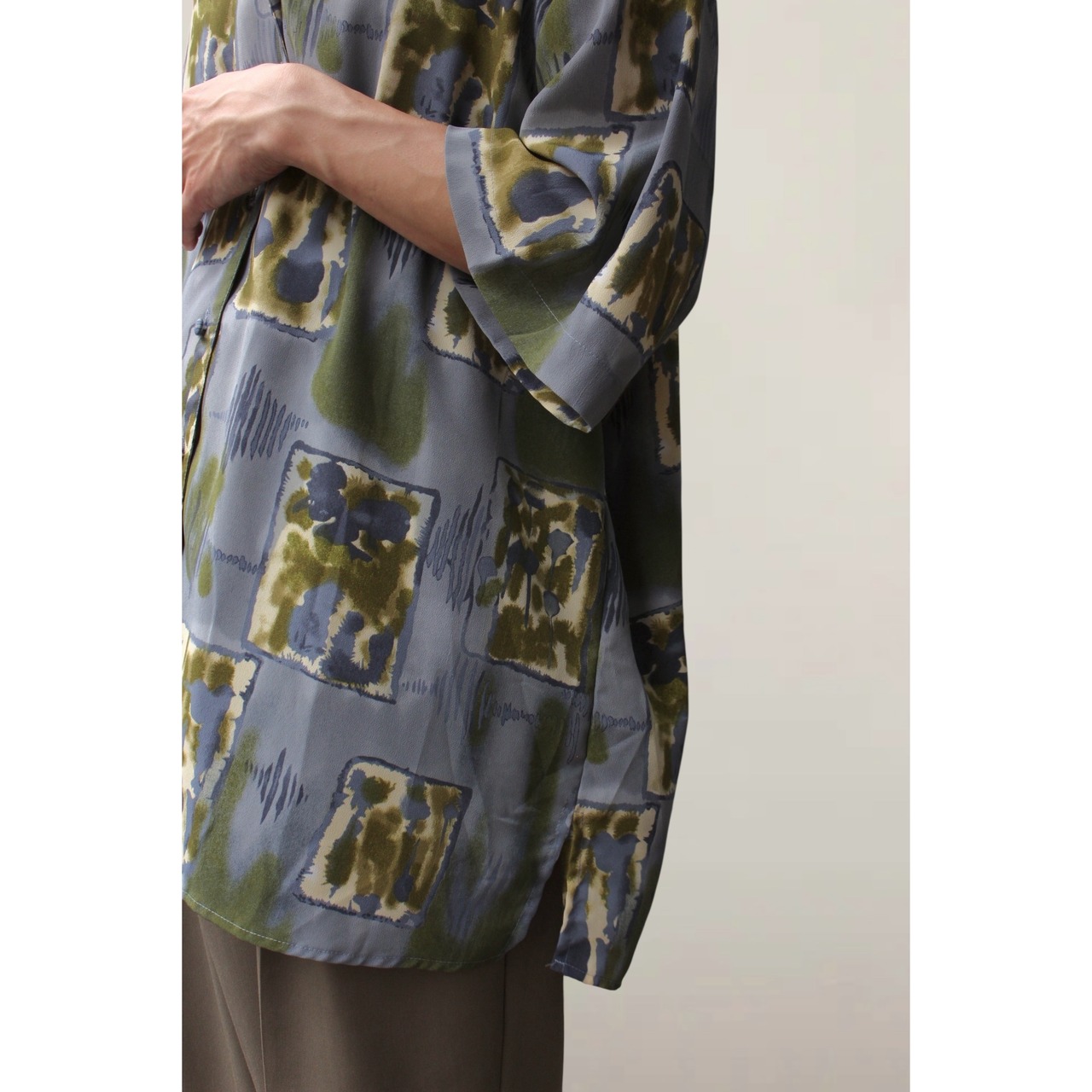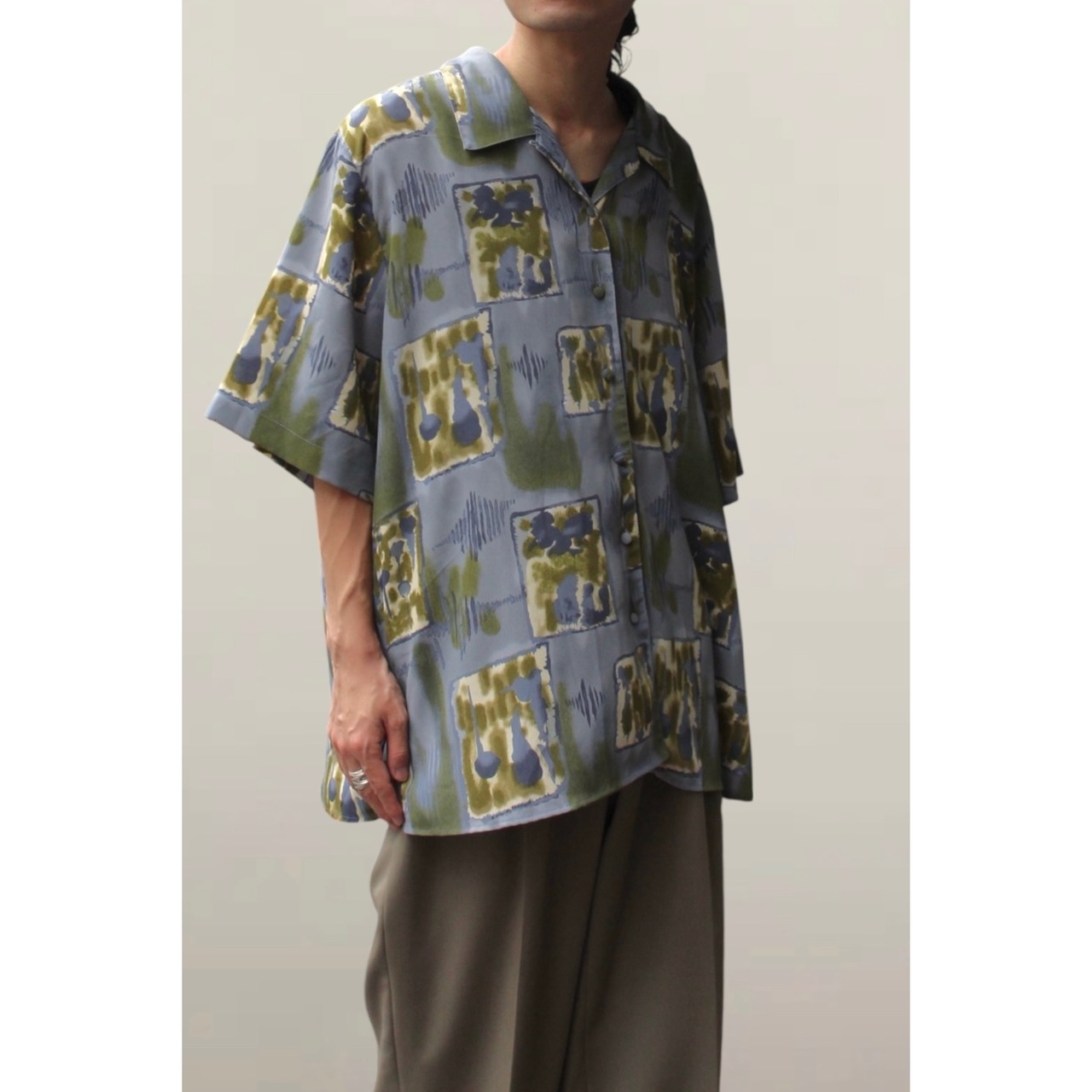 スモークブルーベースの爽やかな配色にアートな総柄パターン。着にくい印象もなく存在感のある一枚ですね☺︎