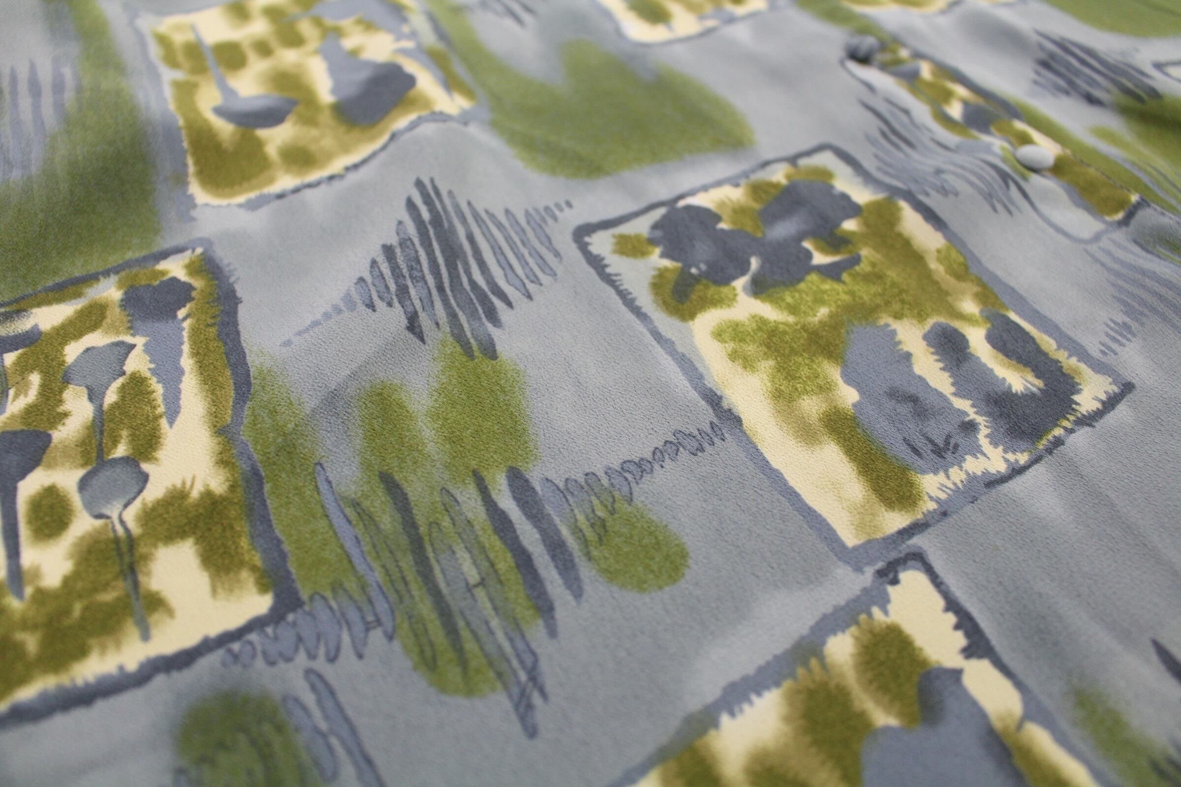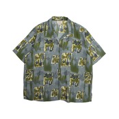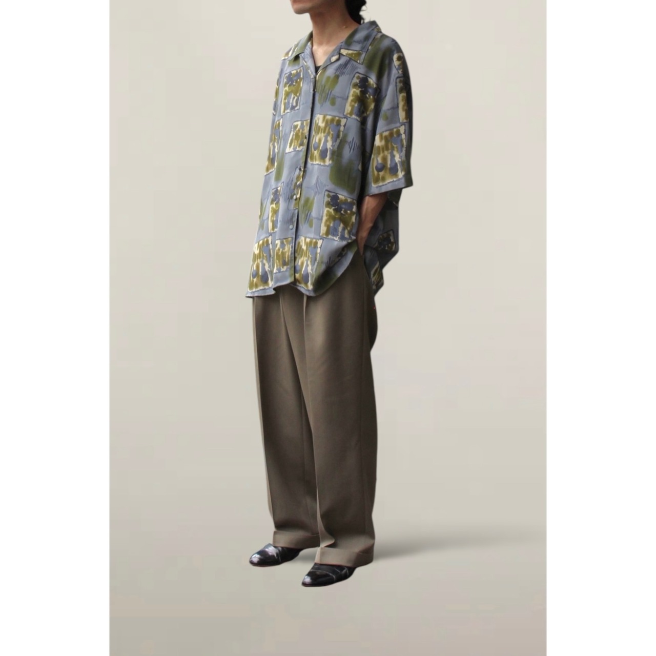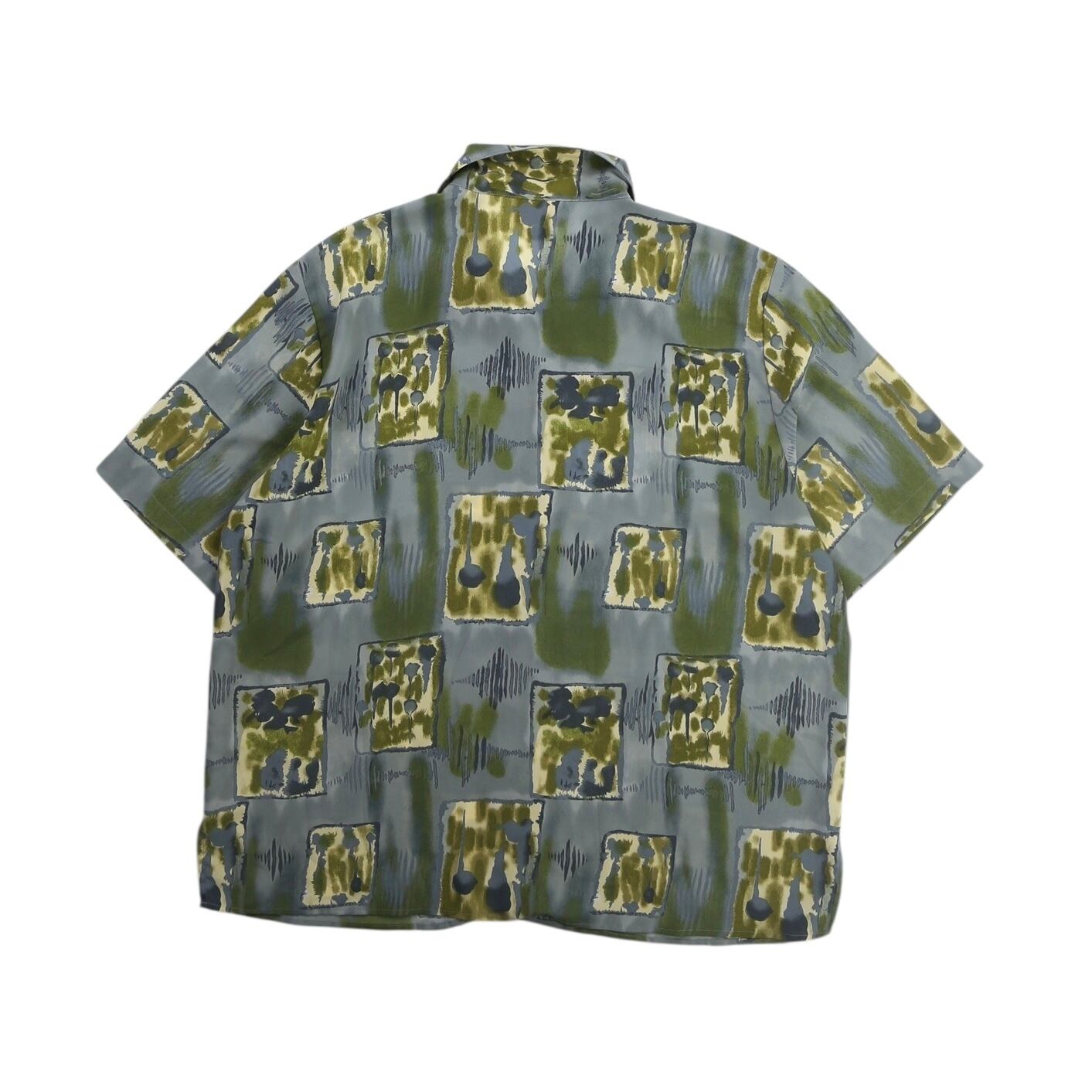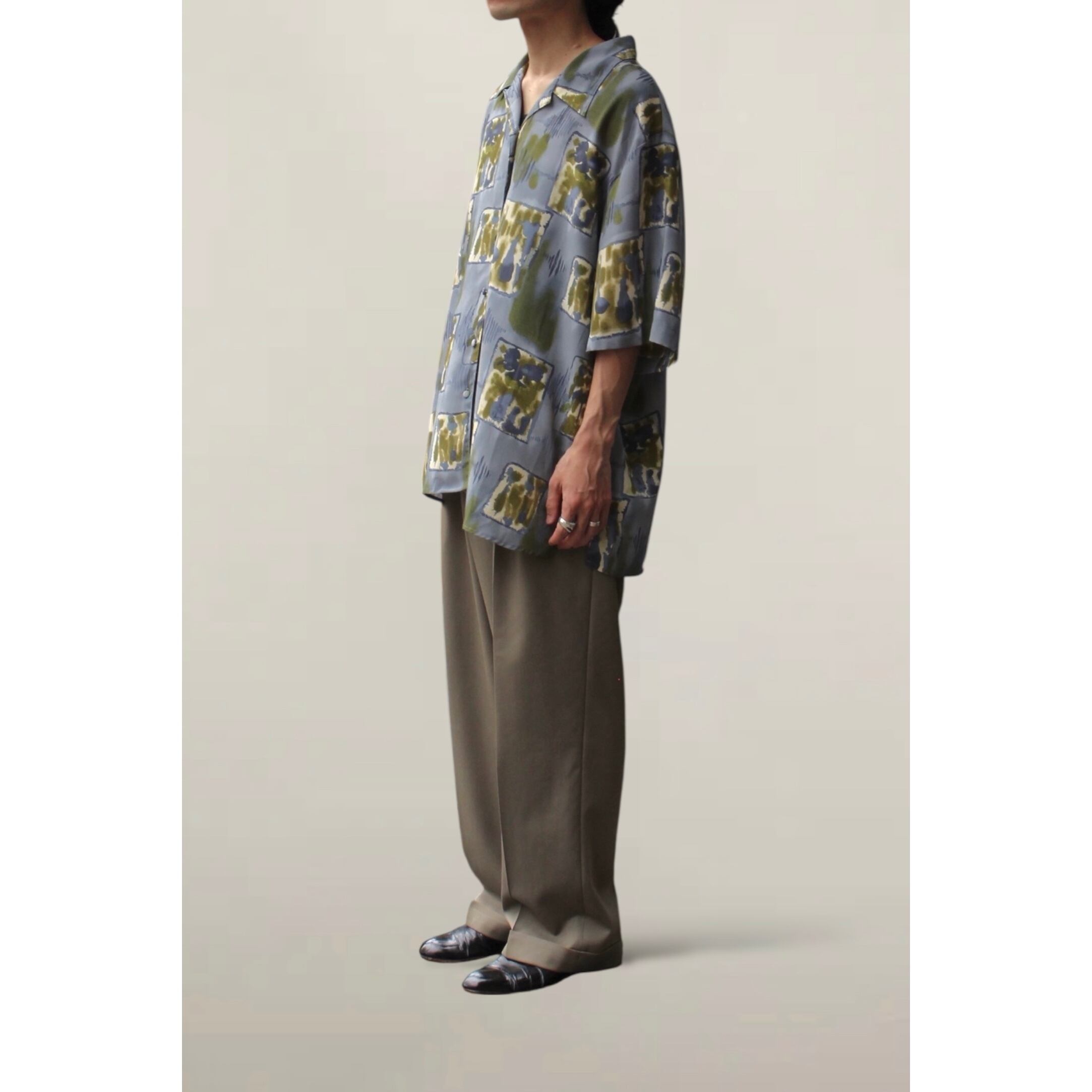 スモークブルーベースの爽やかな配色にアートな総柄パターン。着にくい印象もなく存在感のある一枚ですね☺︎