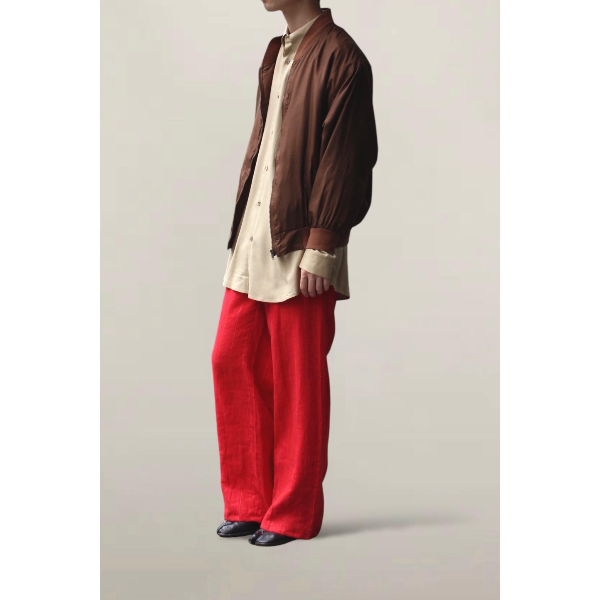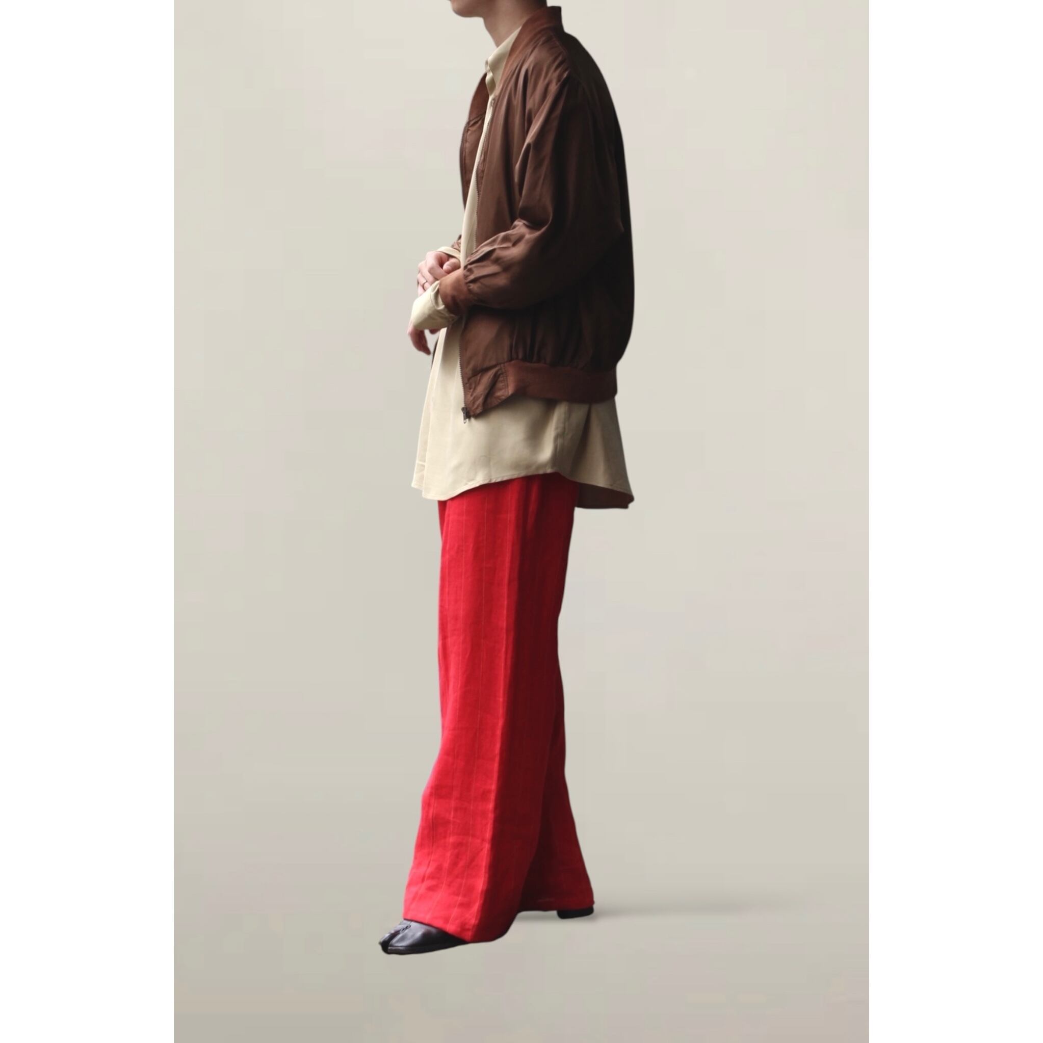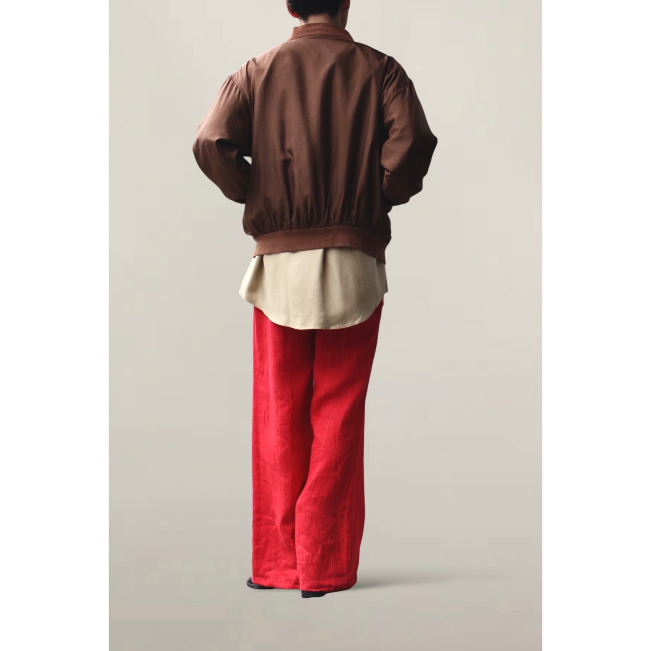 ブラウンの重厚な雰囲気で愛用いただけると思います。着画のように色物のパンツも合わせて楽しみたいです☺︎