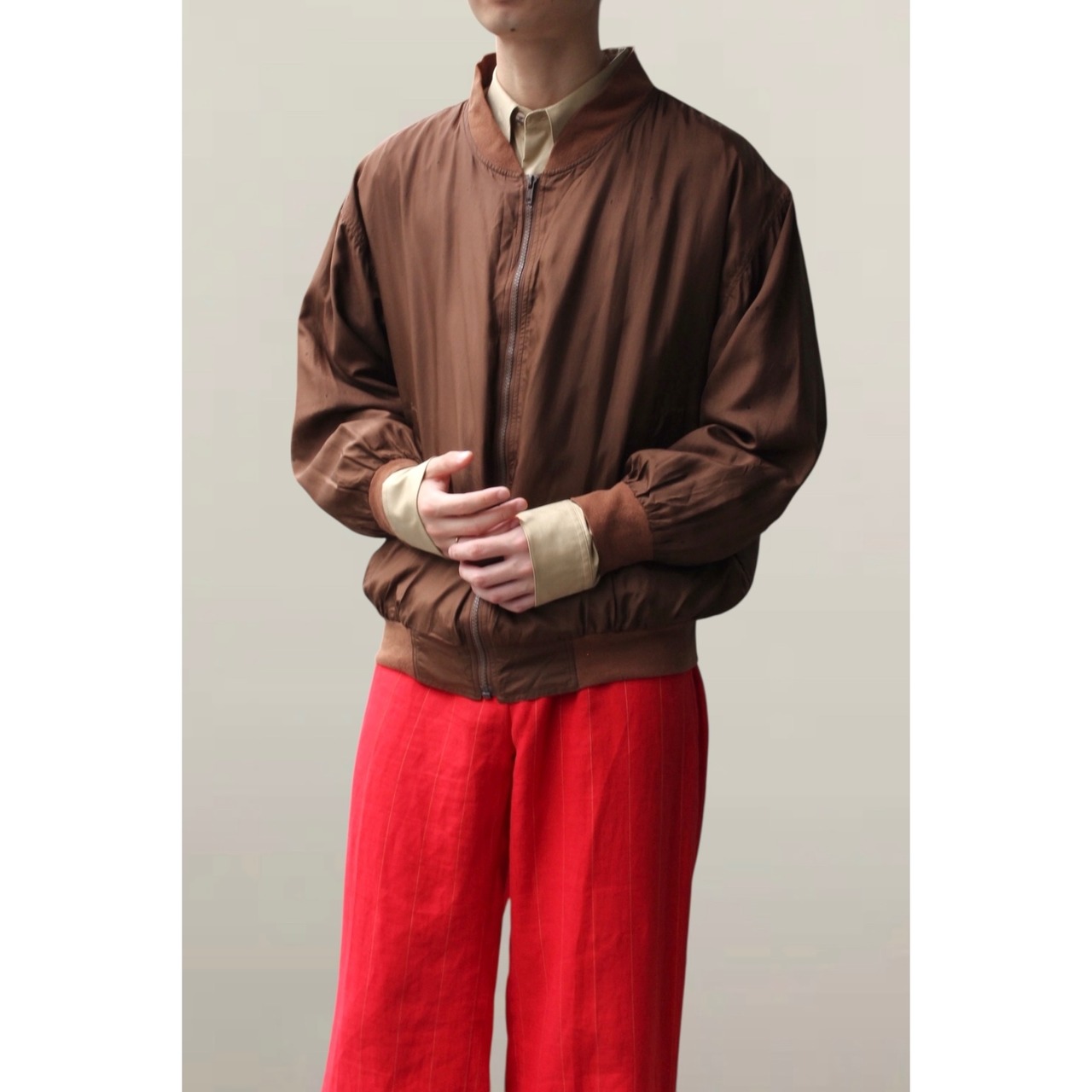 ファブリックに100%シルクを使用したジップアップブルゾン。本当に良いです。。