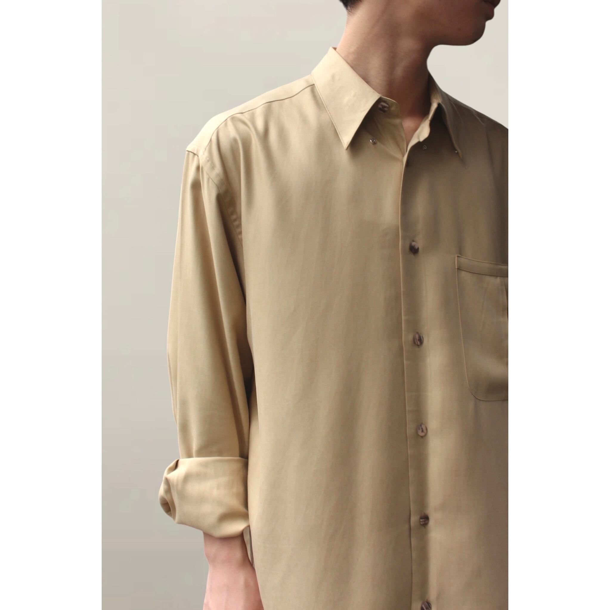 シンプルなビジュアルながら隠れたボタンダウンのディテールなどこだわりも感じられるシャツ。こういうアイテムが1番愛用できますね〜