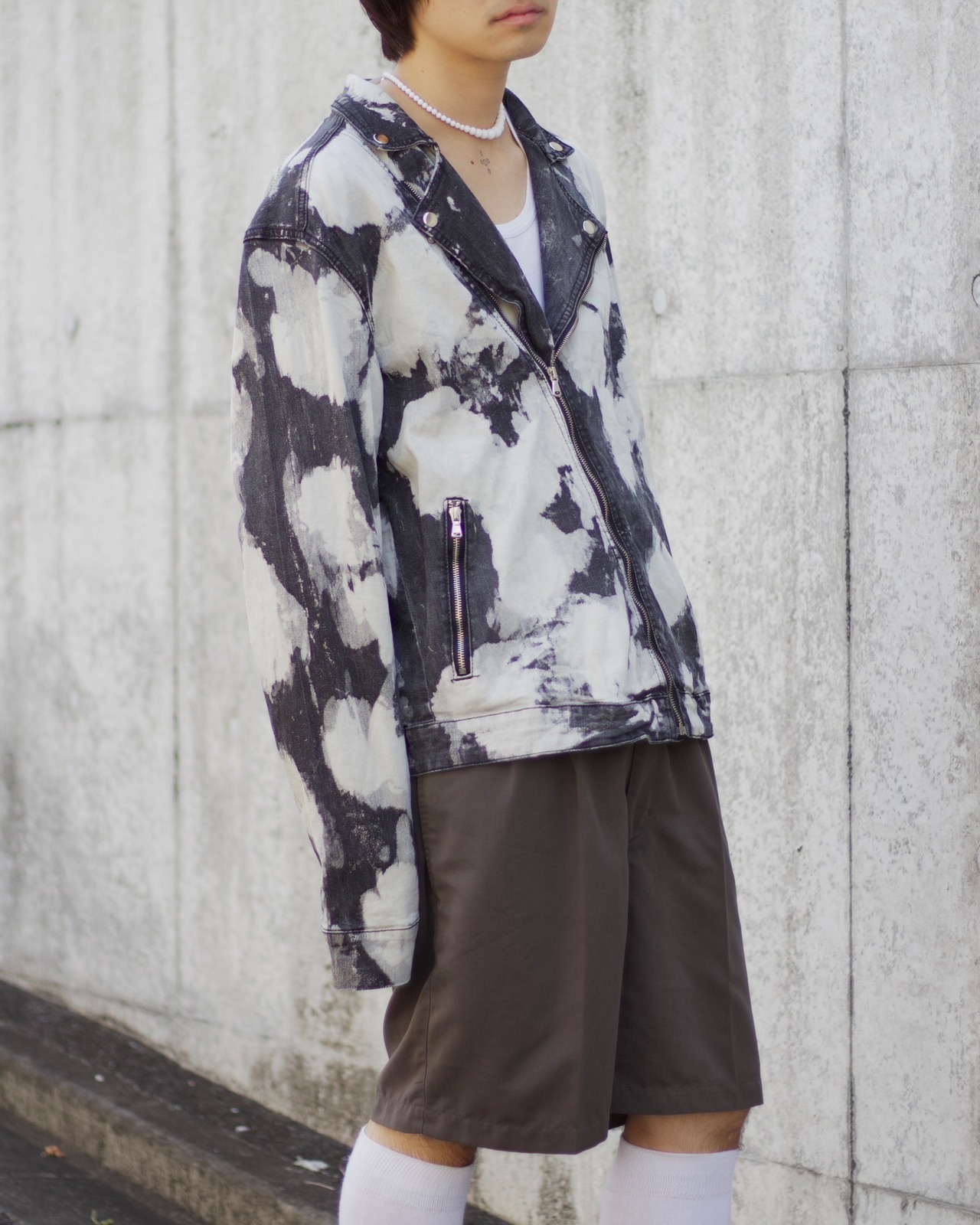 HENRY & WILLIAMのブラック×グレーのタイダイ染めデニムライダースジャケットが入荷。