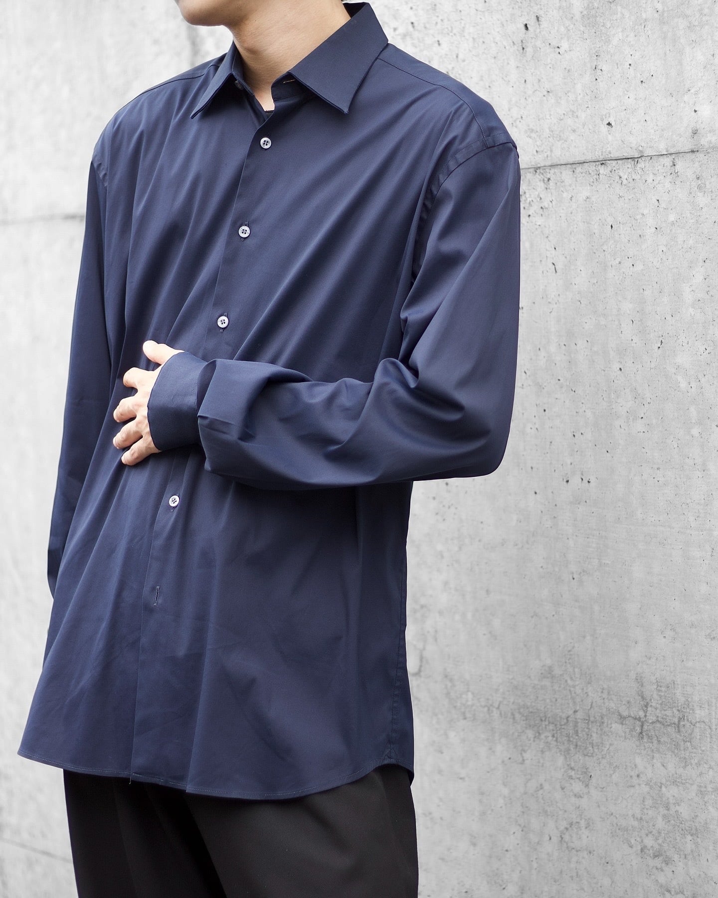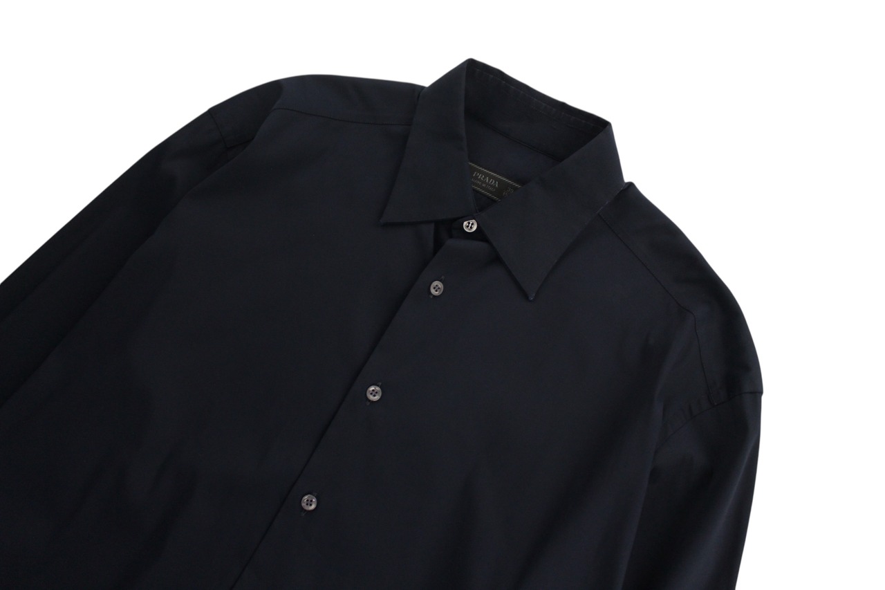 “PRADA” dark navy cotton × nylon dress shirt 【COOT-3026】