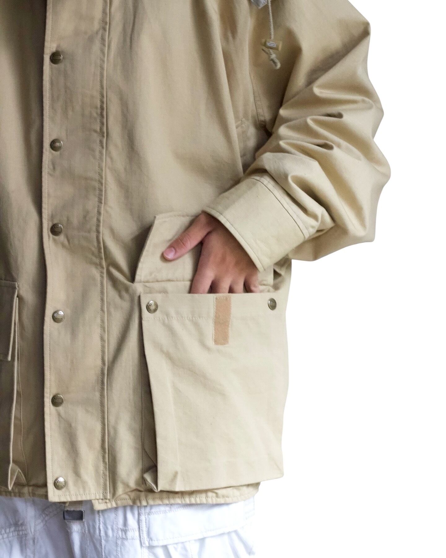 ベージュトーンのコットンナイロン生地で仕立てたマウンテンパーカーの入荷です!