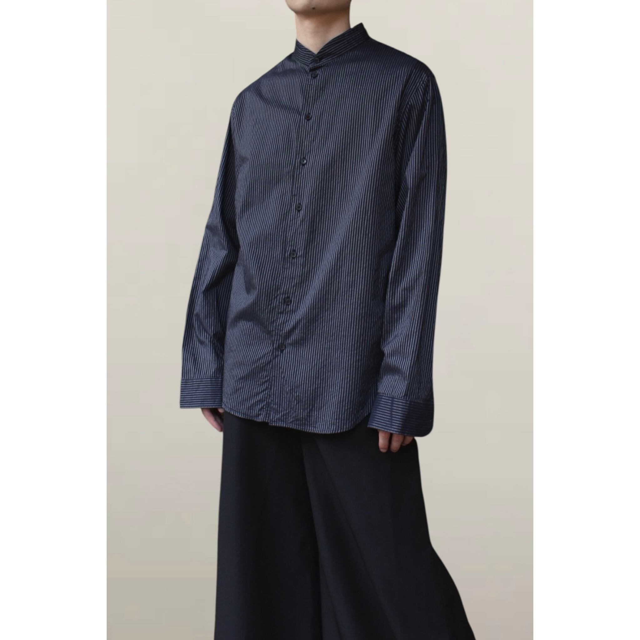 1990's "ARMANI COLLEZIONI" stripe design band collar shirt【OT-13386】