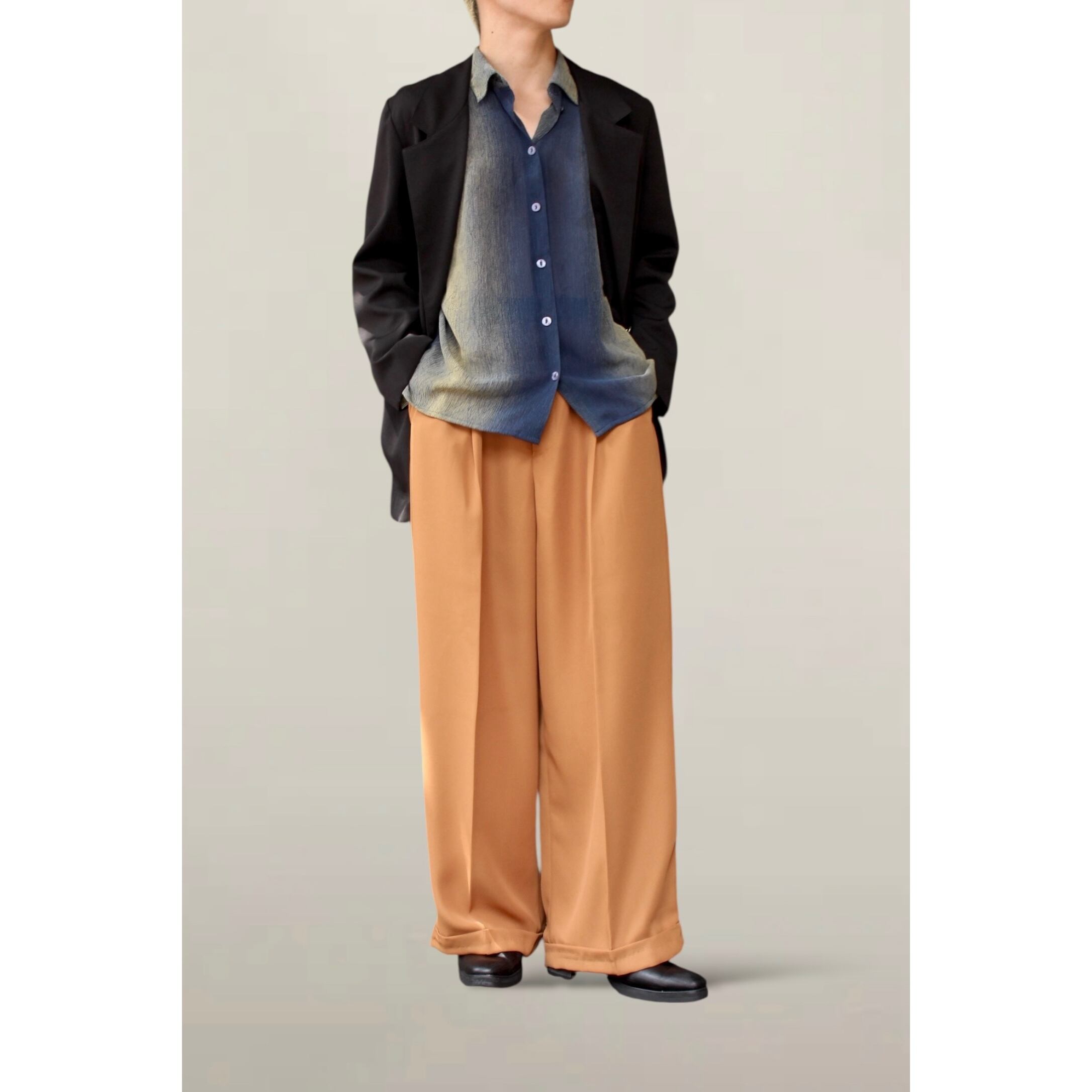 春、秋等に羽織りメインでお楽しみ頂ける一着ですが、元々夏用なのでここ数年の強い日差しを防いで夏でもレイヤードを楽しめる1着かと。