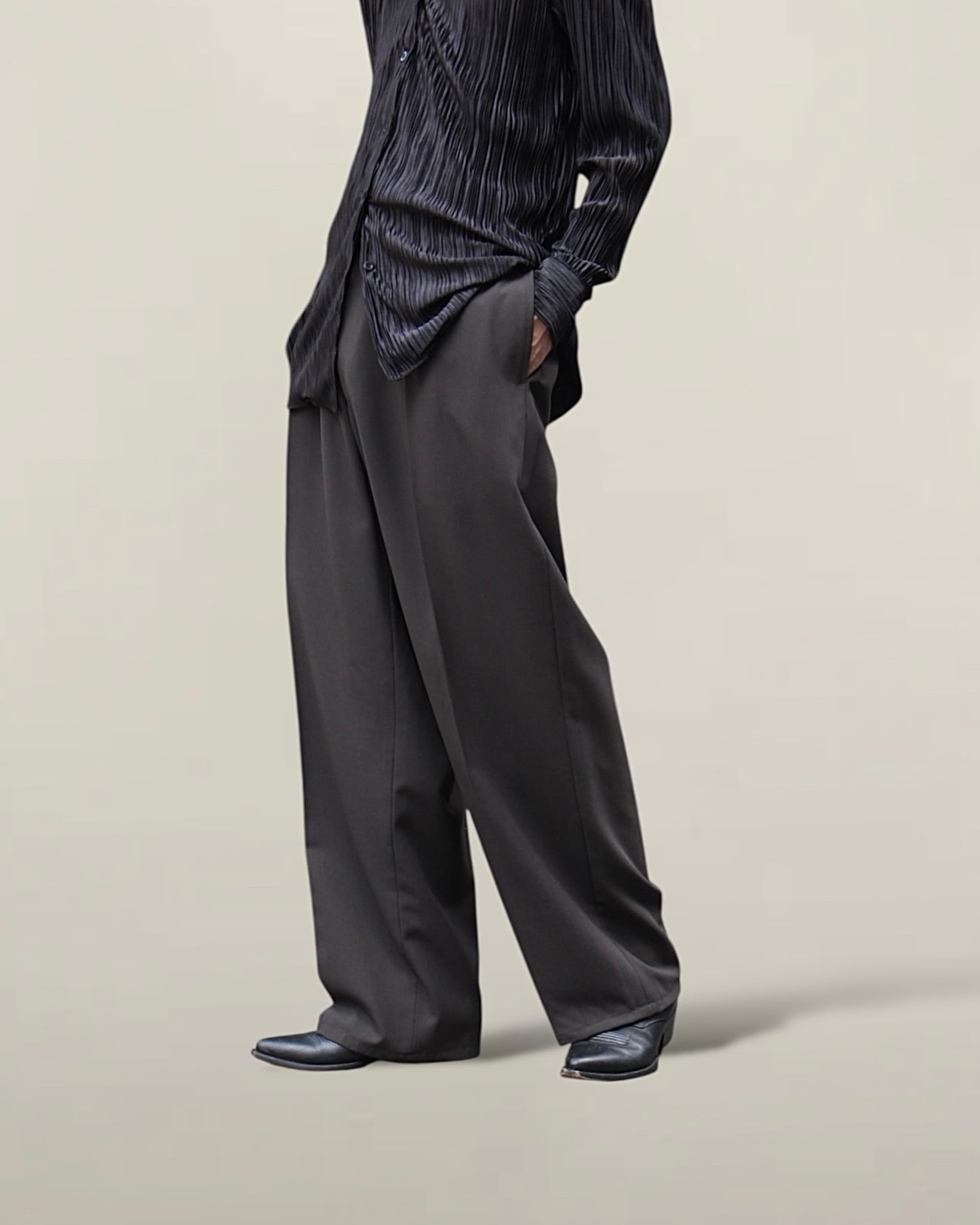 程よくゆとりを持って作られたウエストにほぼストレートに落ちるワイドシルエット。