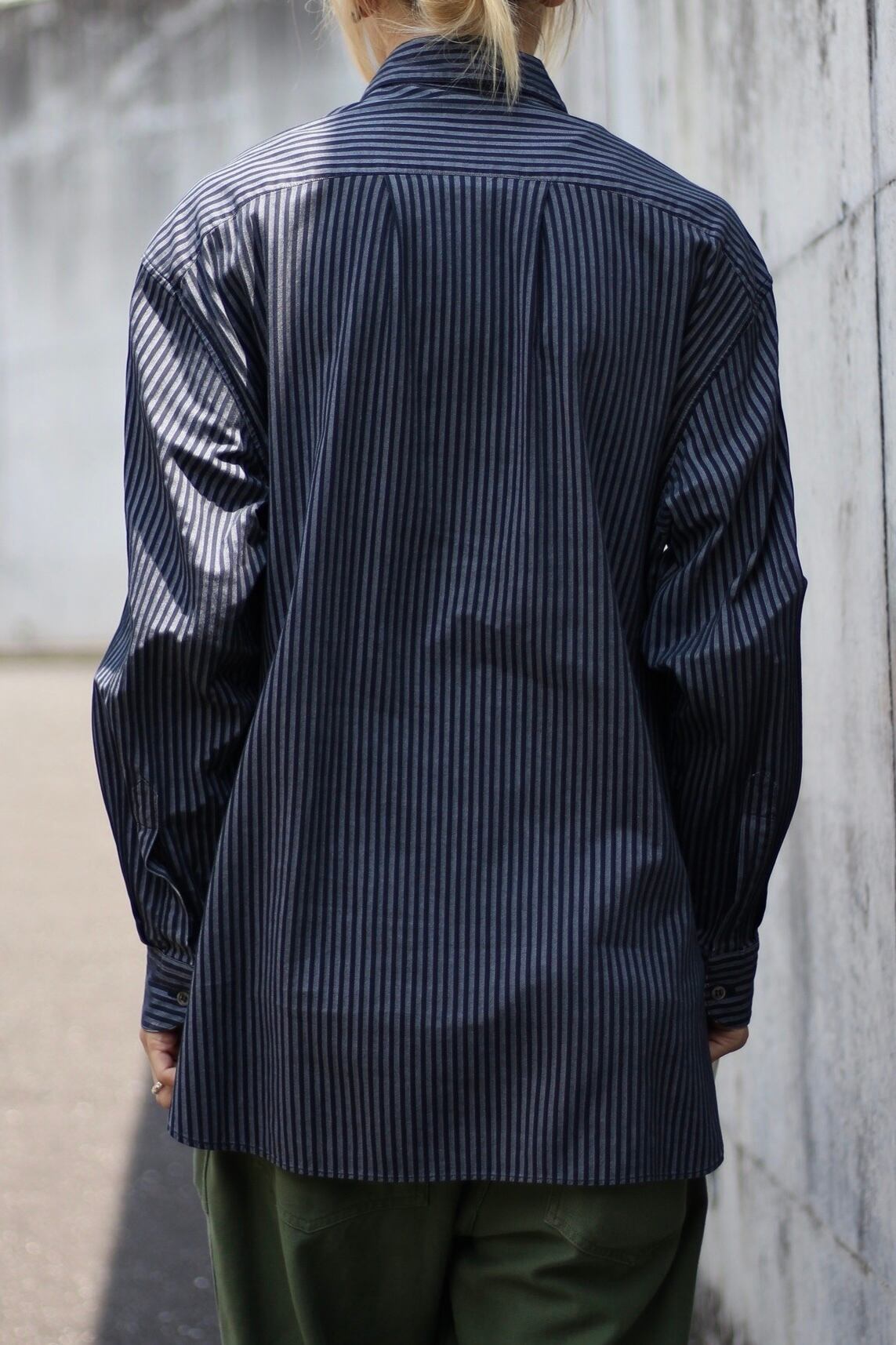 ストライプシャツの綺麗さもありながら、しっかりと大人っぽさもある1着。