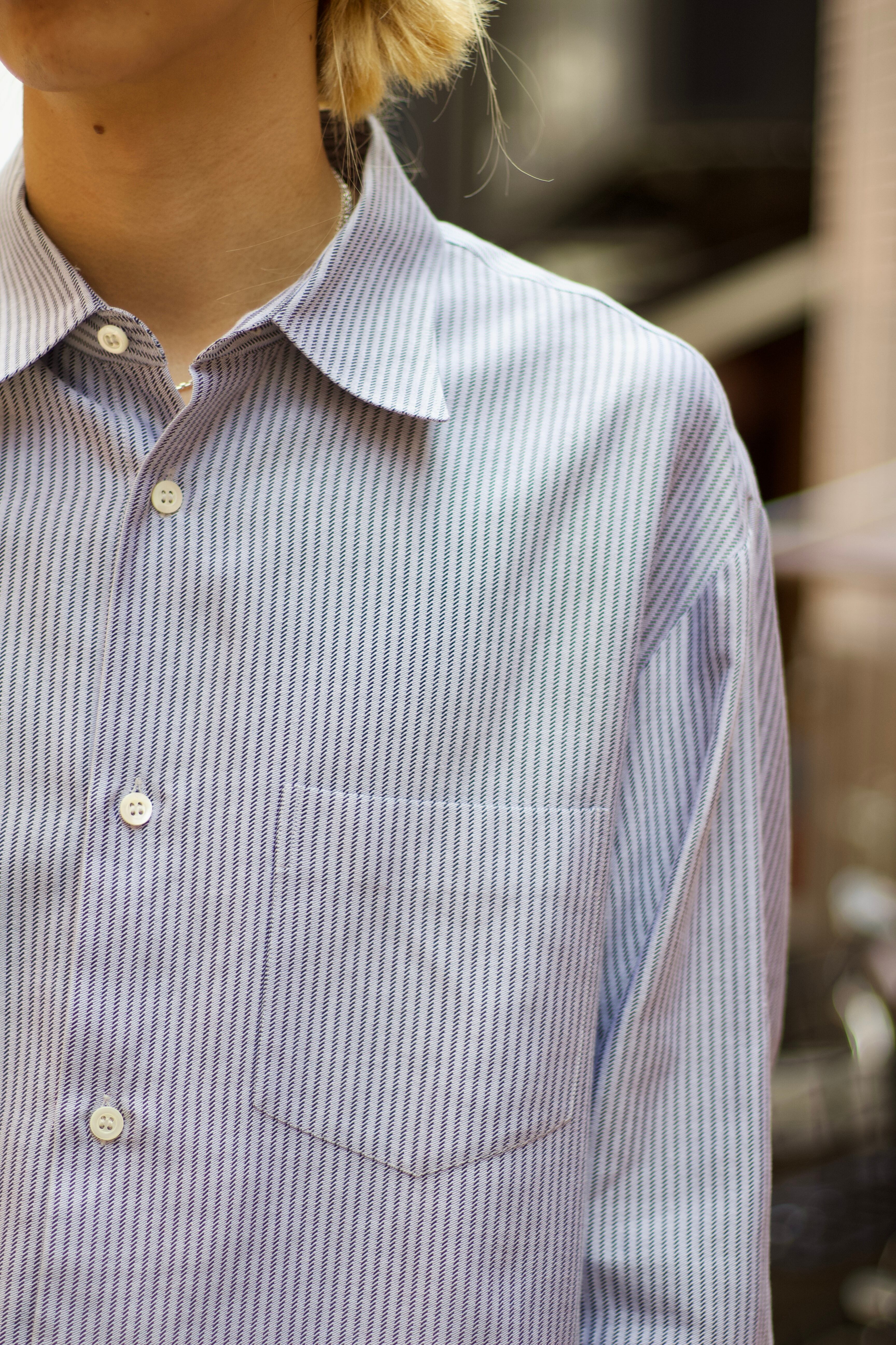素材はコットンで、シャリっとした肌触りが印象的。年中着れるような一着となっております。