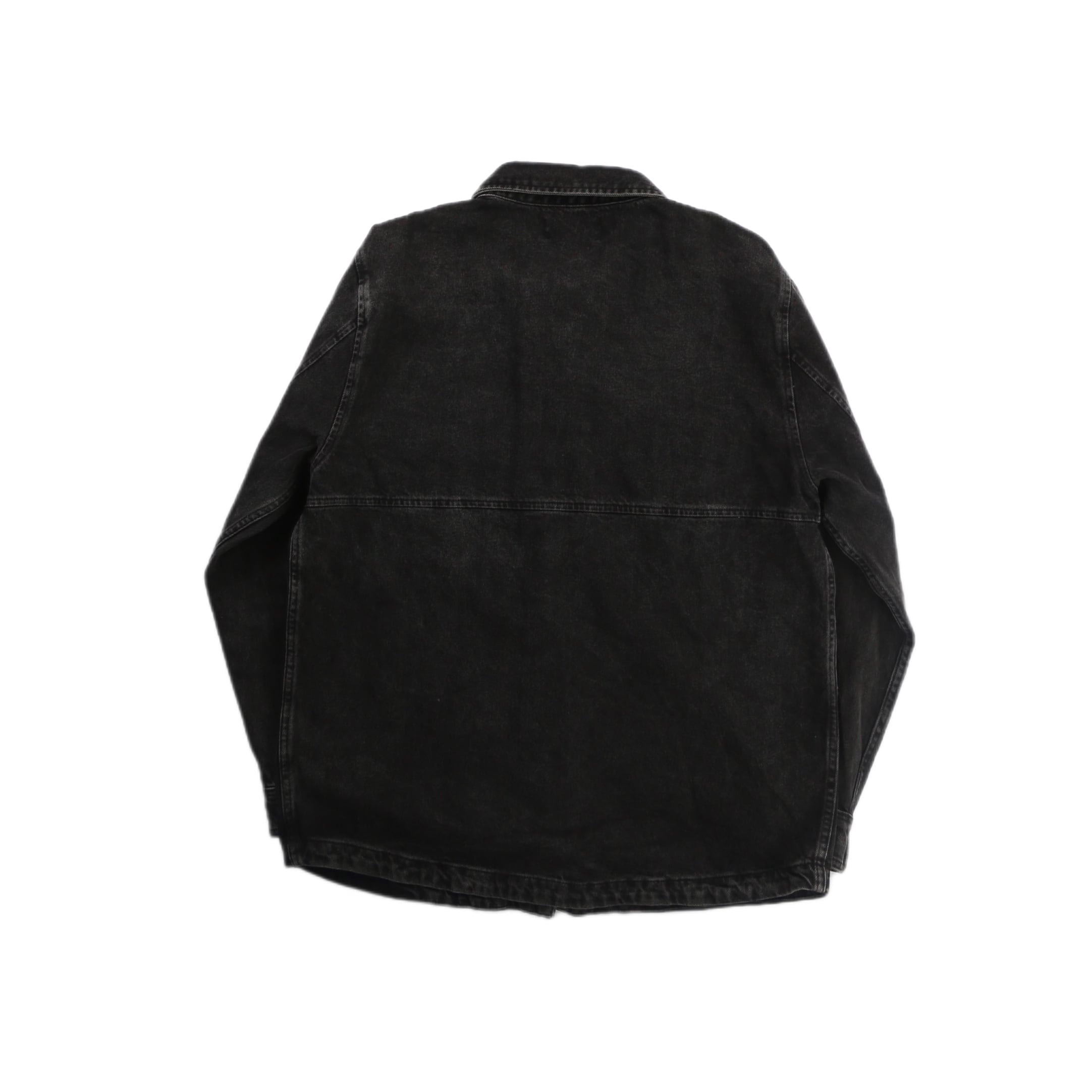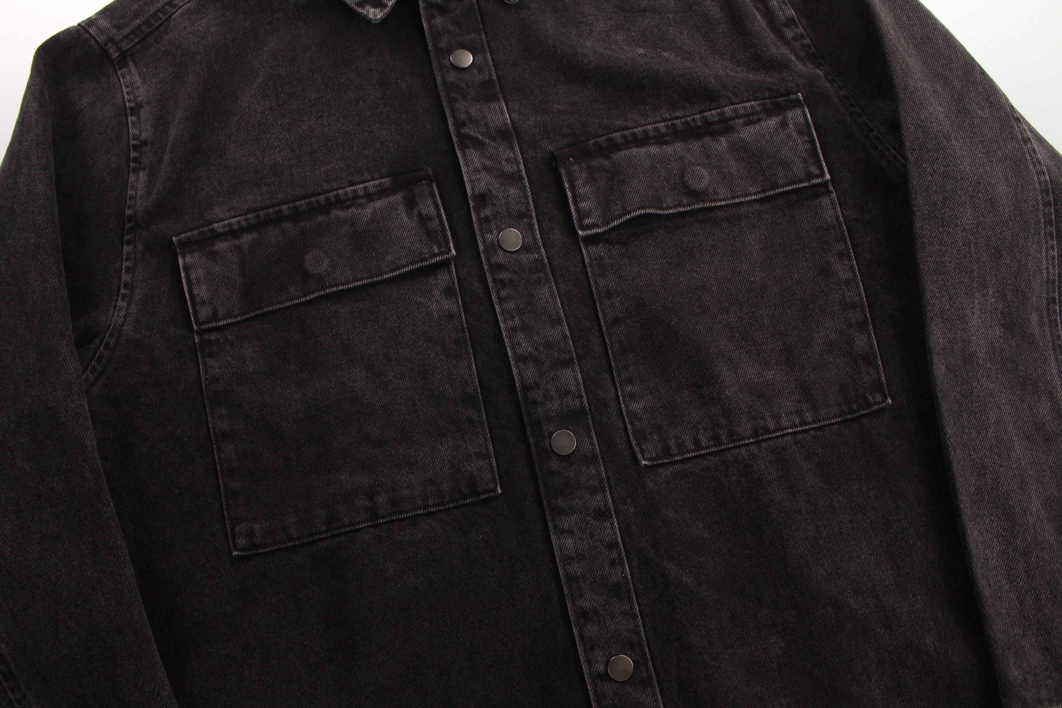 完全なブラックじゃなくて、後染め特有の胸ポケットのボタン部分や袖,裾の色落ちなど無骨な男っぽさも渋さがあっていいですね☺︎