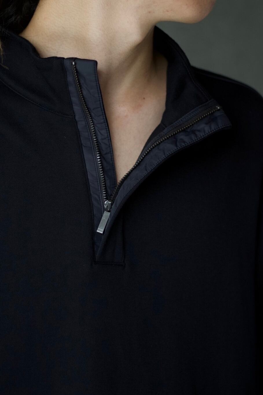 シンプルなデザインですが、比翼のハーフジップや、裾元にある小さめのタグがさりげない個性を出しています。
