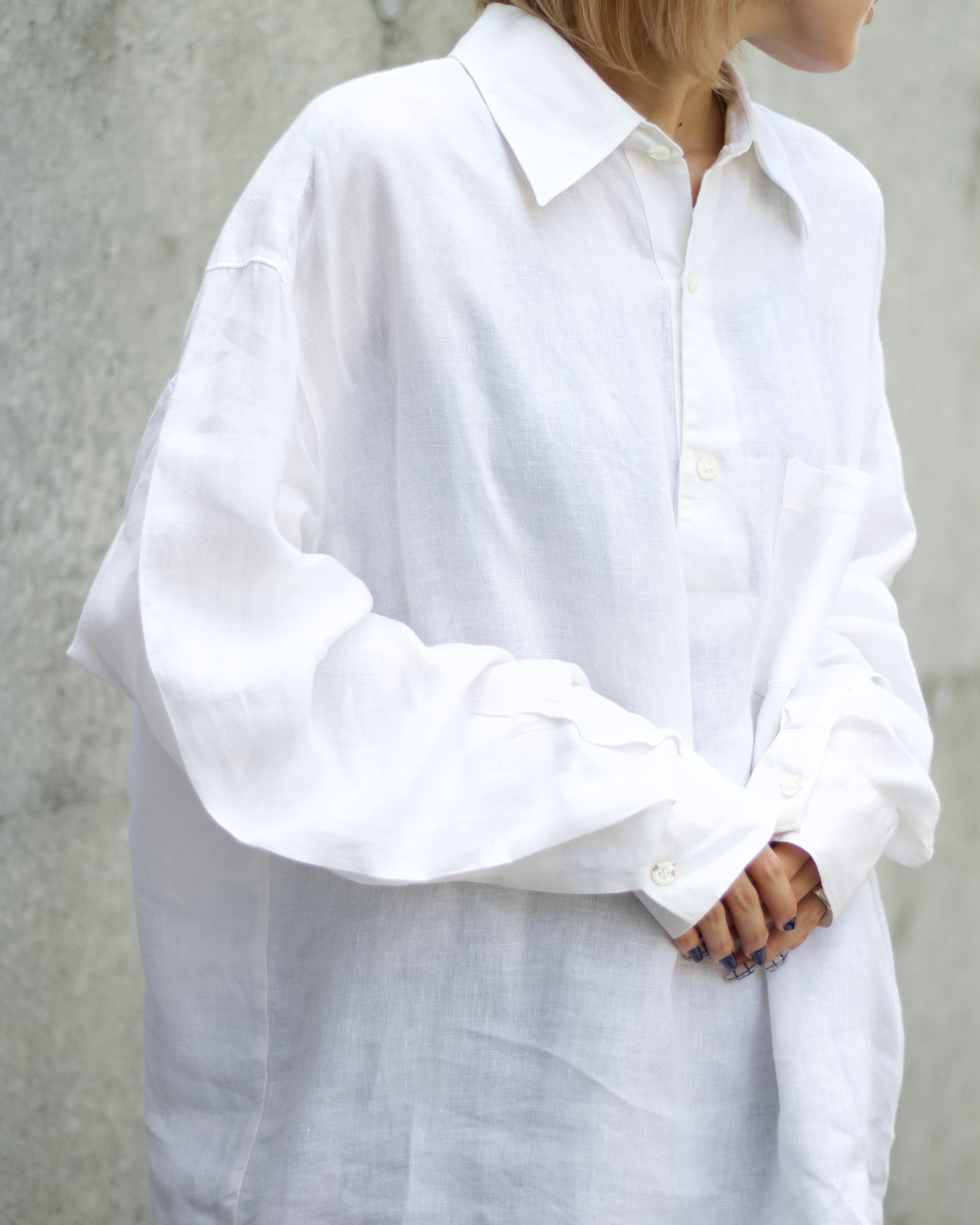 "linen" over size shirt half button made in ITALY【MM-0615】
