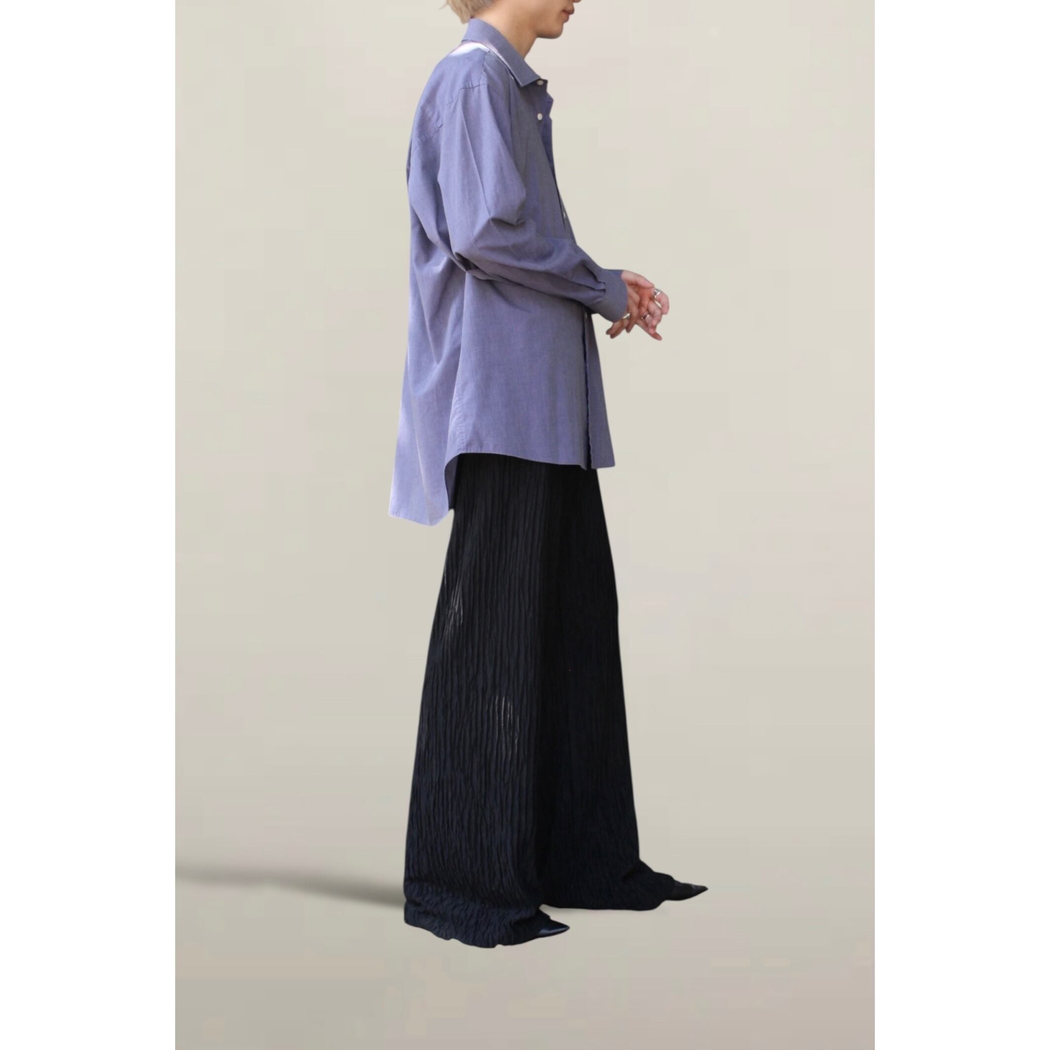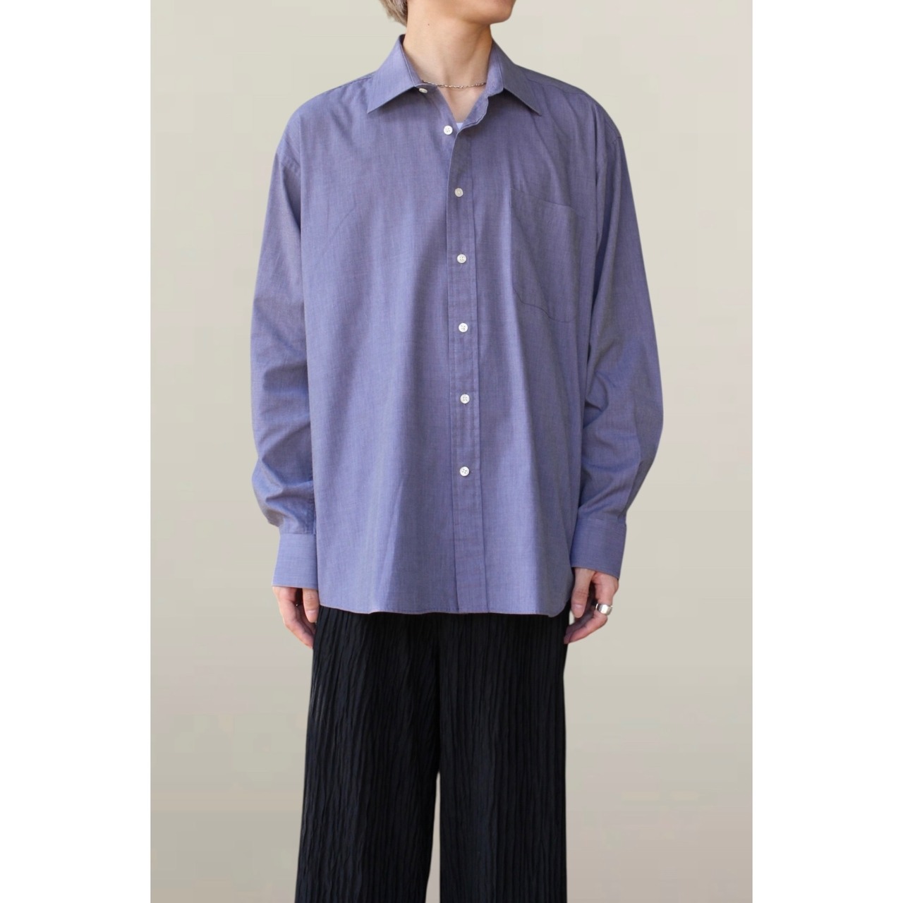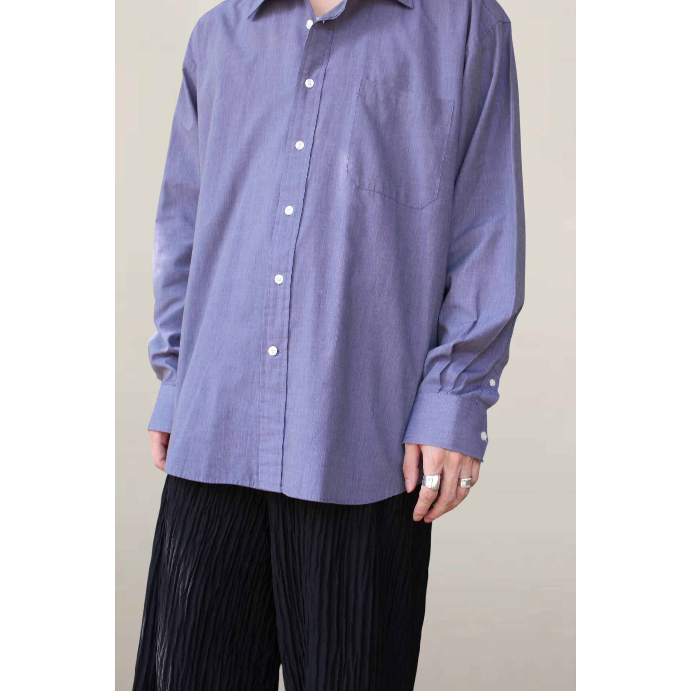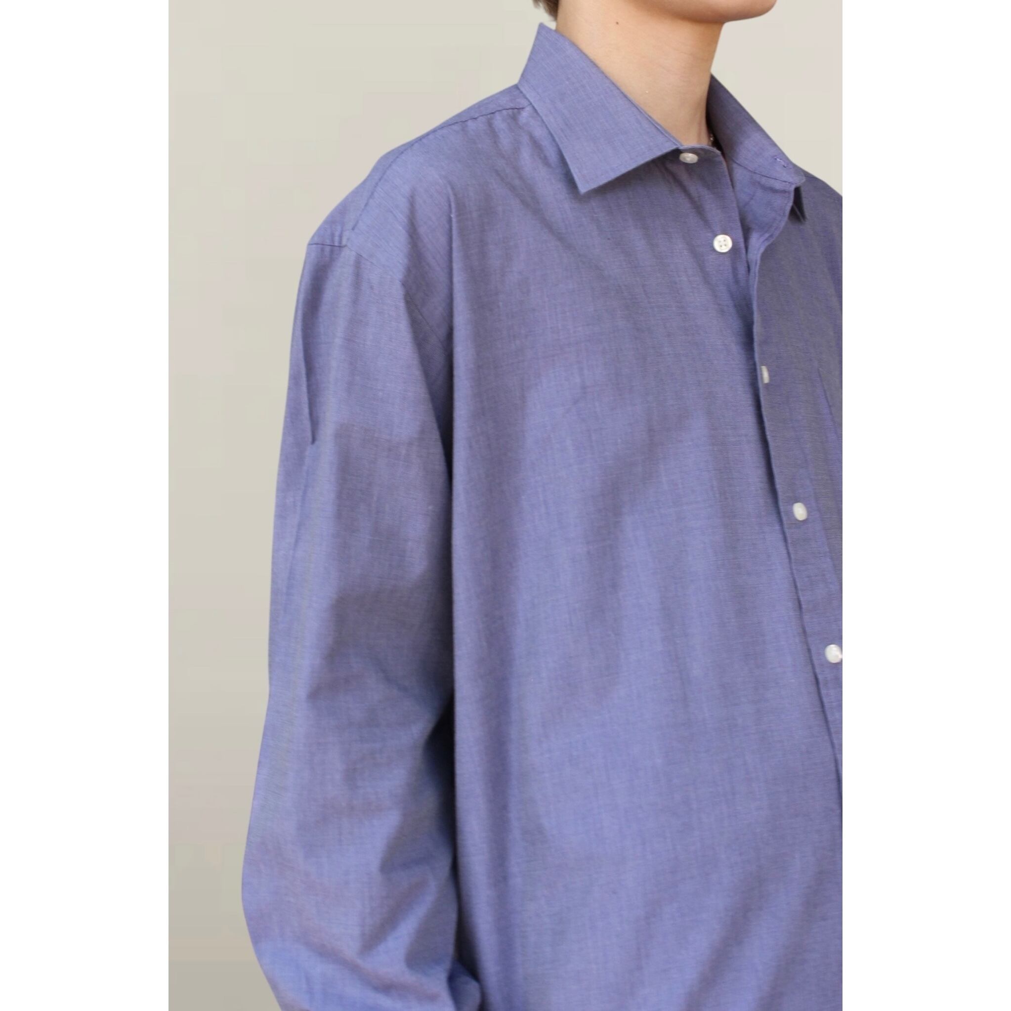 よく見るとパープルにも見える柔らかく、クラシックな印象のあるシャツになっています。
