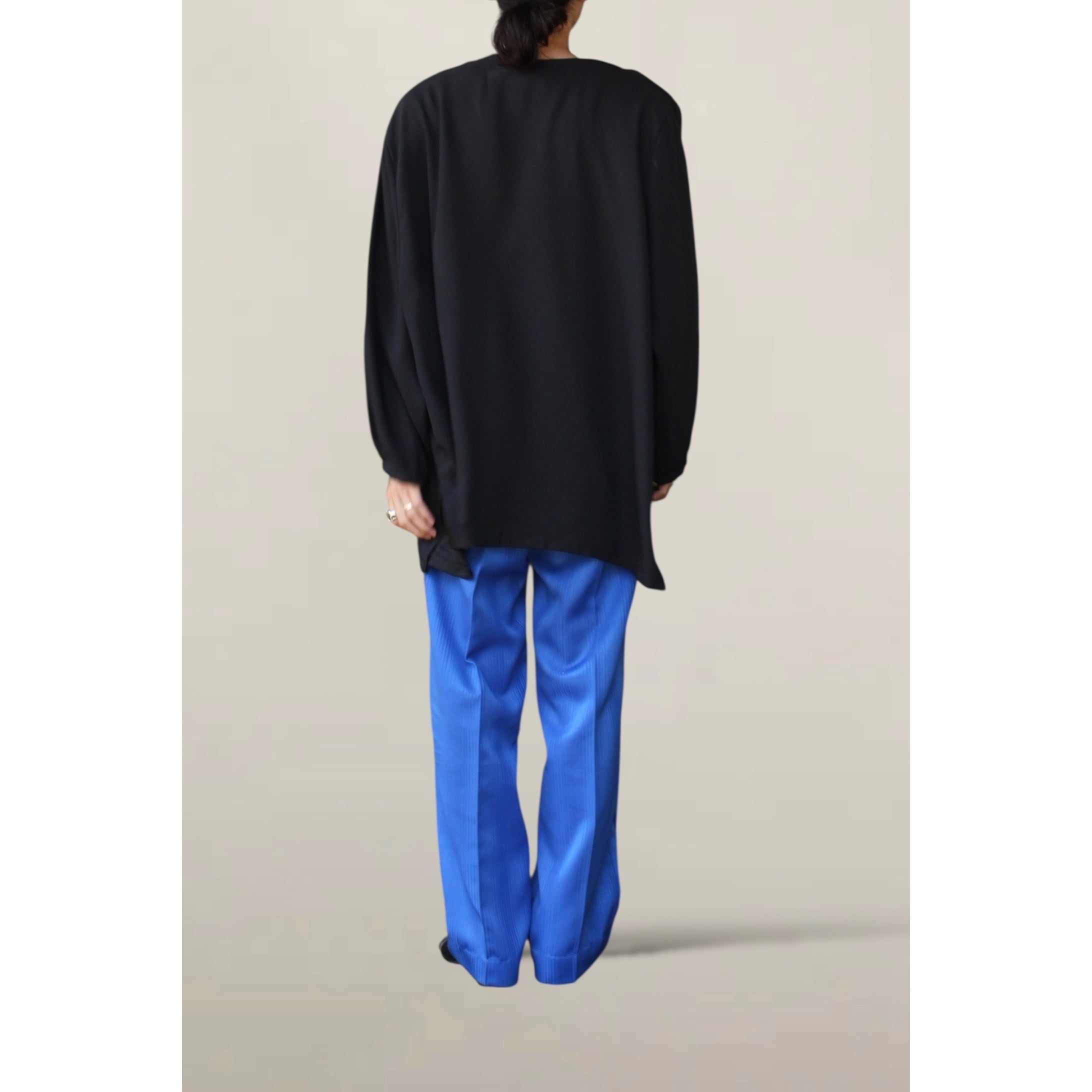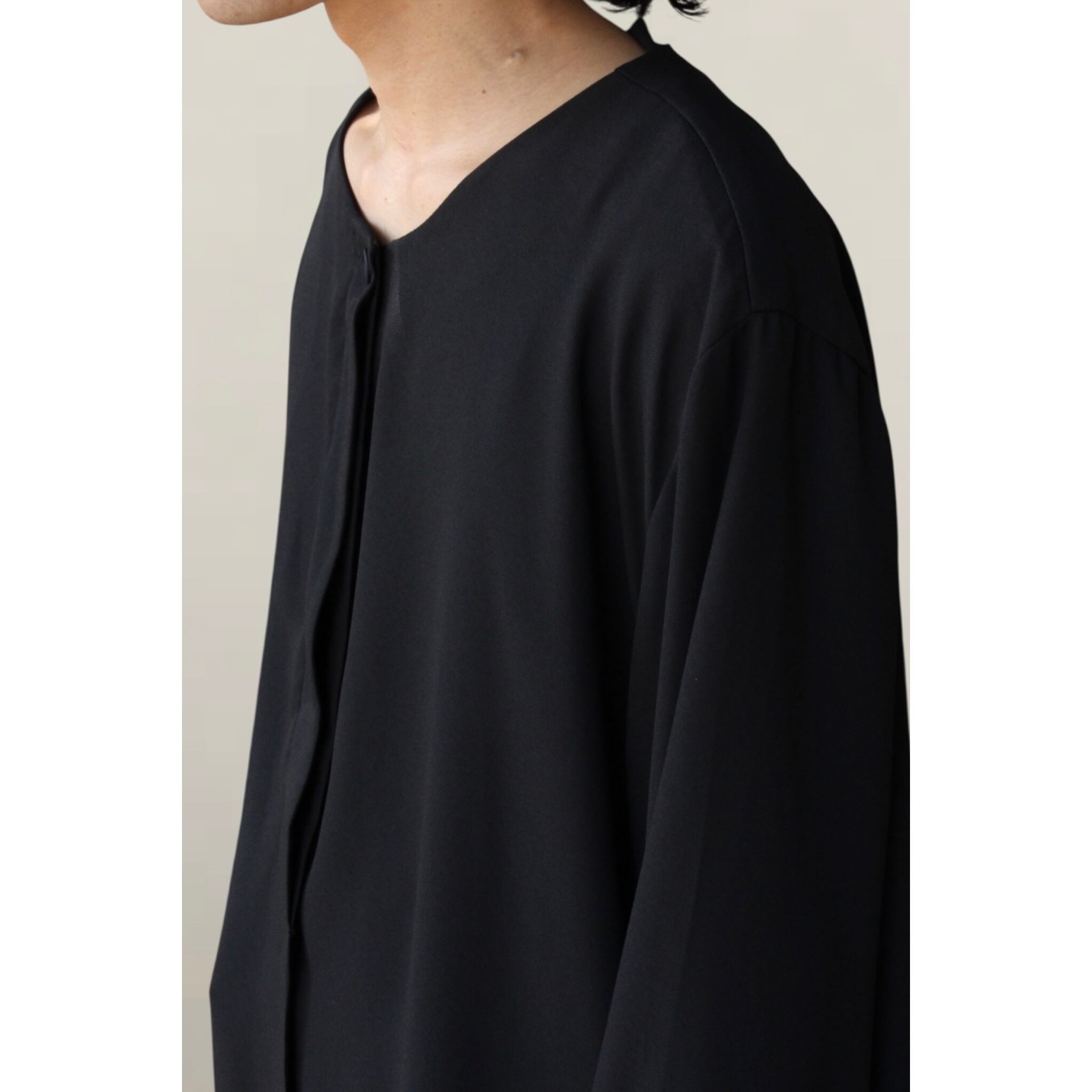 ボタン部分は比翼になっていて無駄なくすっきりとしたビジュアルに。それでいてポリエステルのとろみのある素材感がマッチしております☺︎