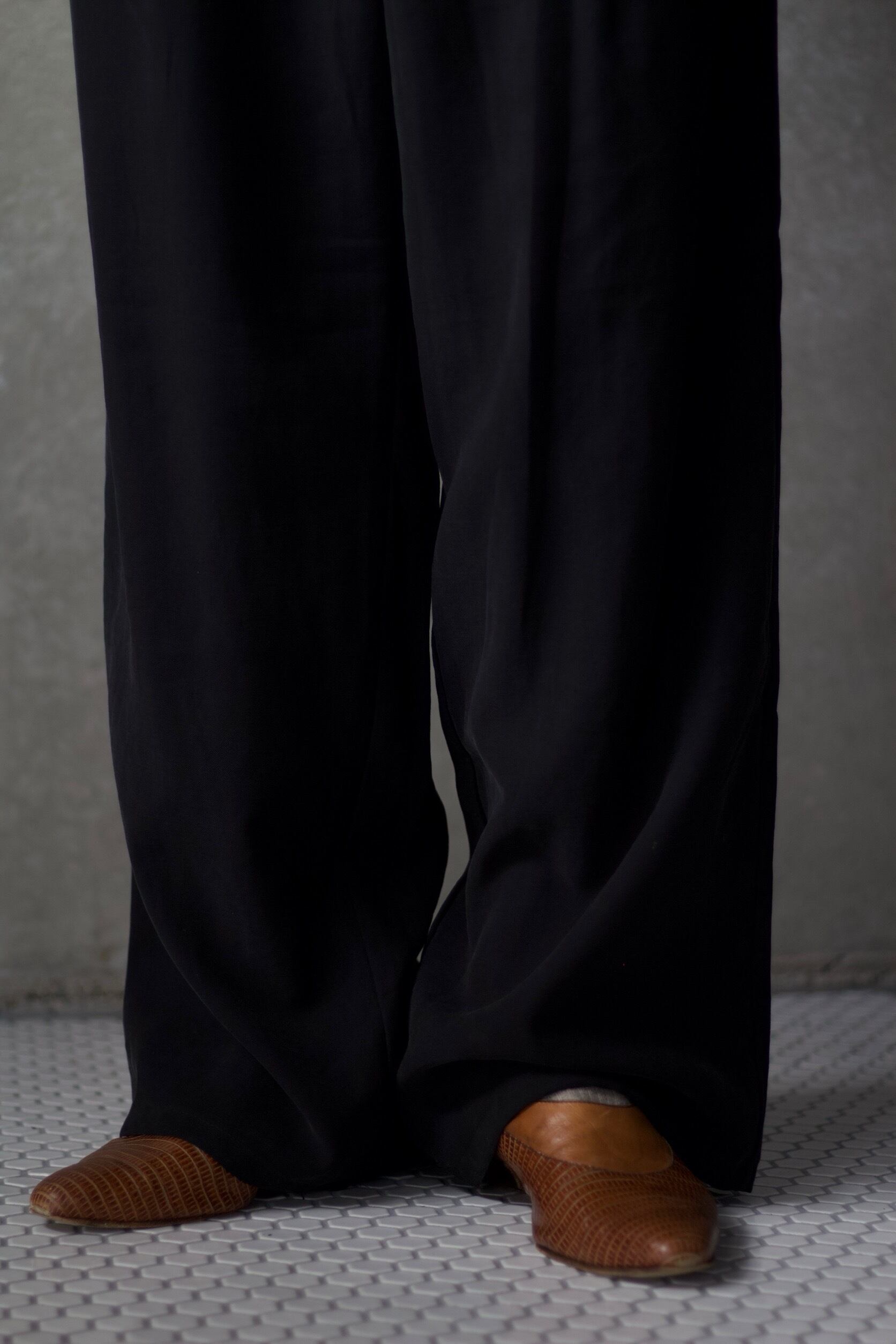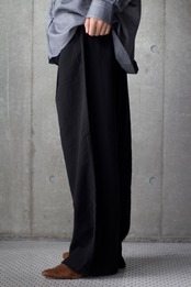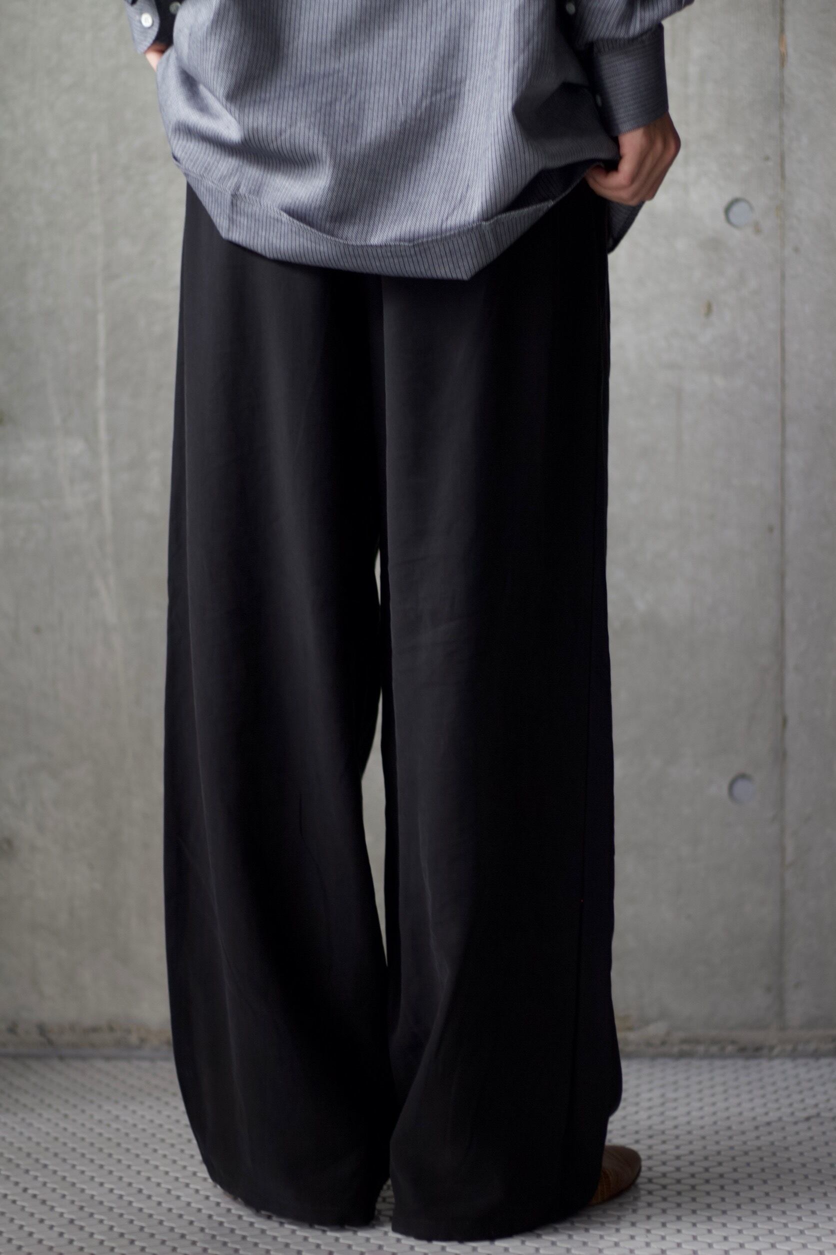 極太で、裾にかけて綺麗にまっすぐ落ちるワイドストレート。ドレープ感がたまらない一着。