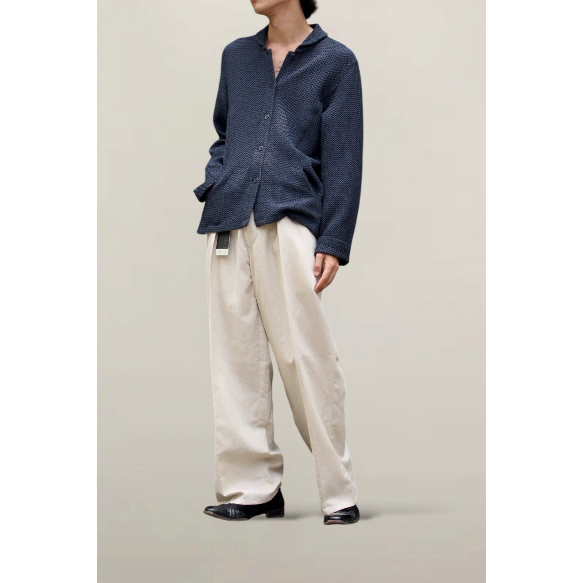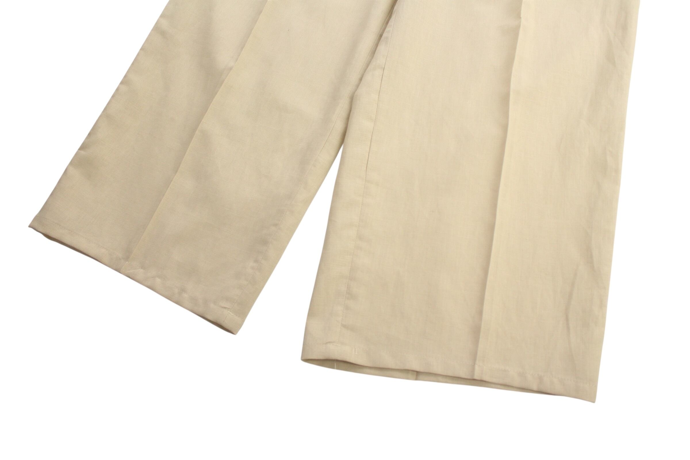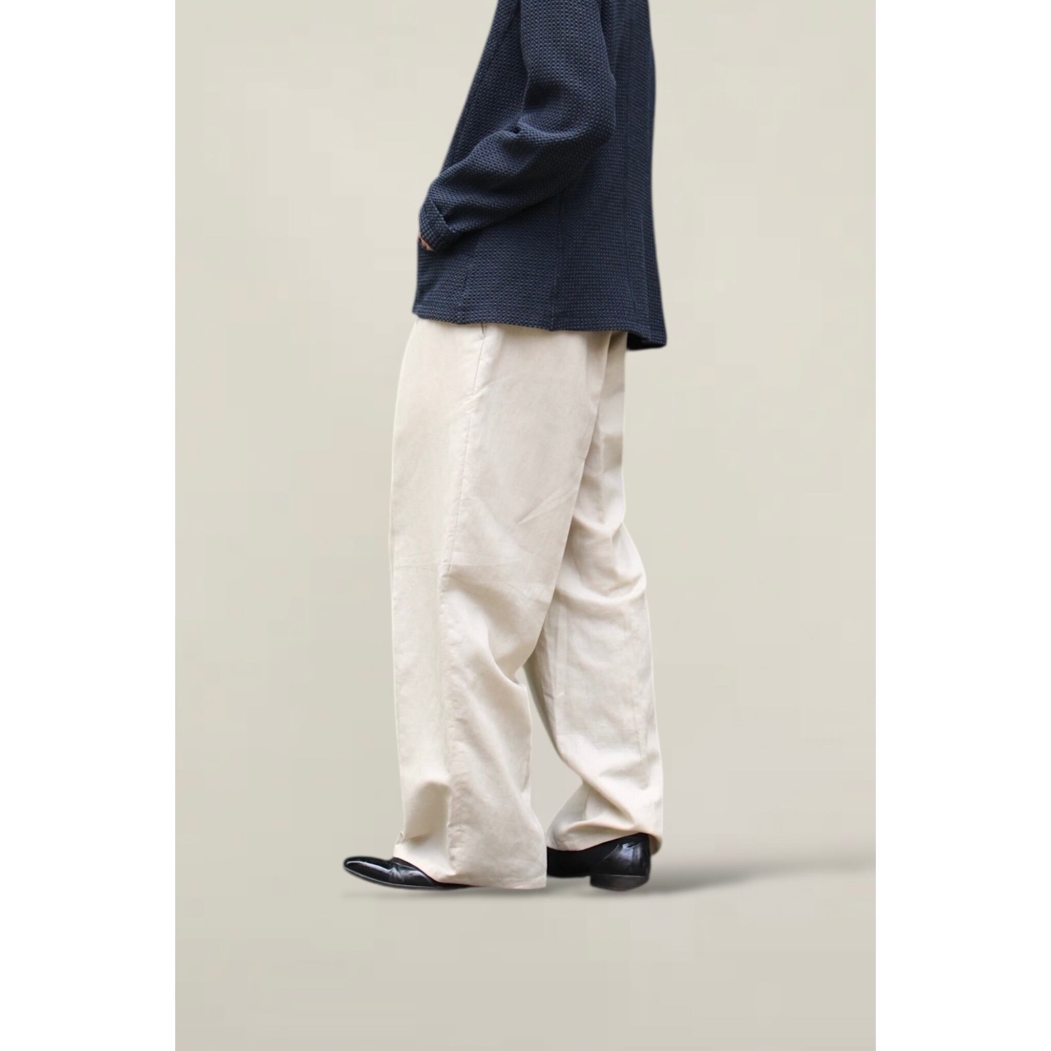 オフホワイトのカラーリングで雰囲気的にも明るく汎用性が高いスラックス。ジャケット、コートを合わせる際にも愛用できる逸品です。
