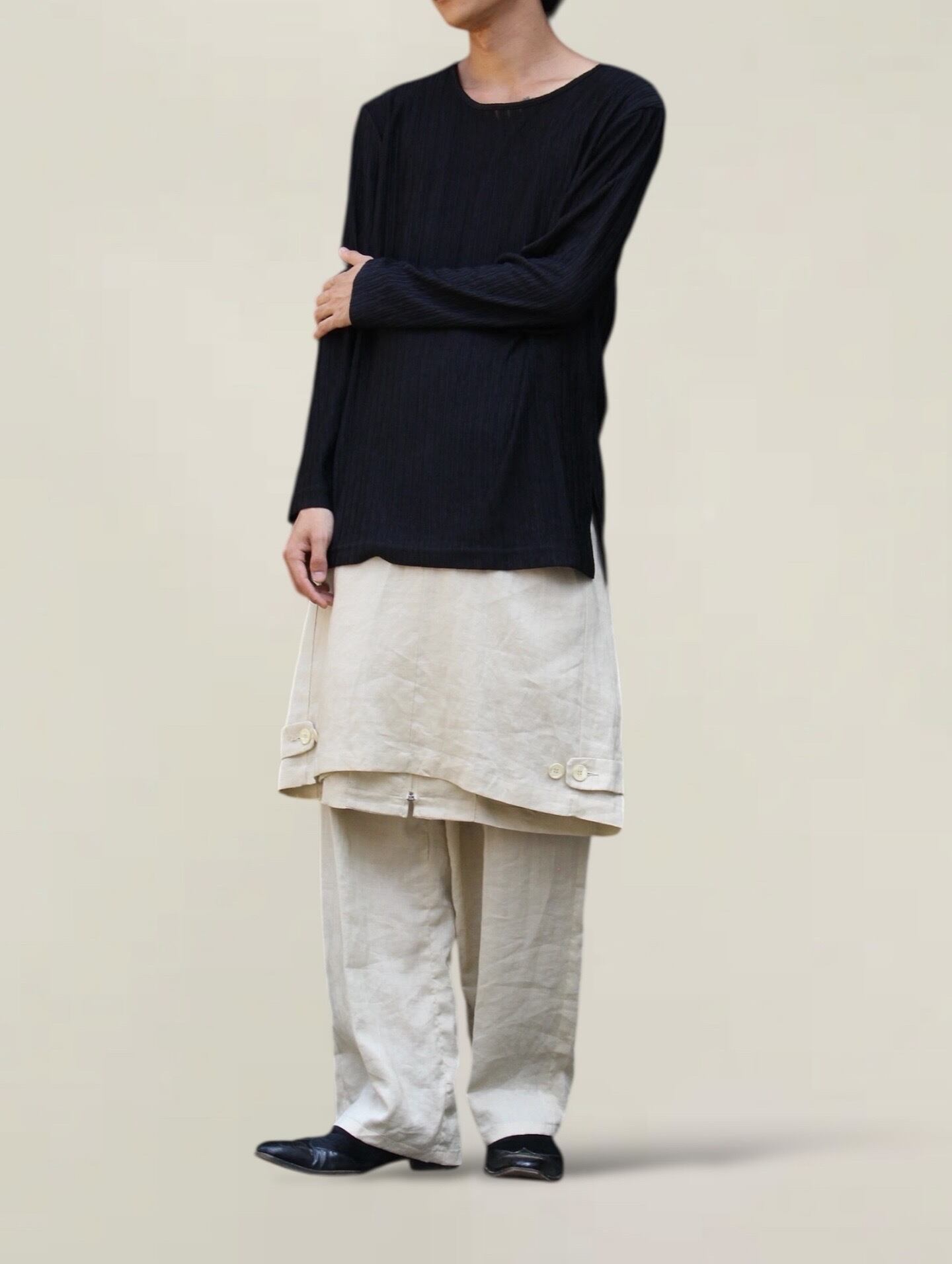 マットな印象なので通常なカットソーと比べより上品なアイテム。ワイドパンツとの相性も良くパンツもプリーツにしてセットアップ風に着てもカッコ良いです。。