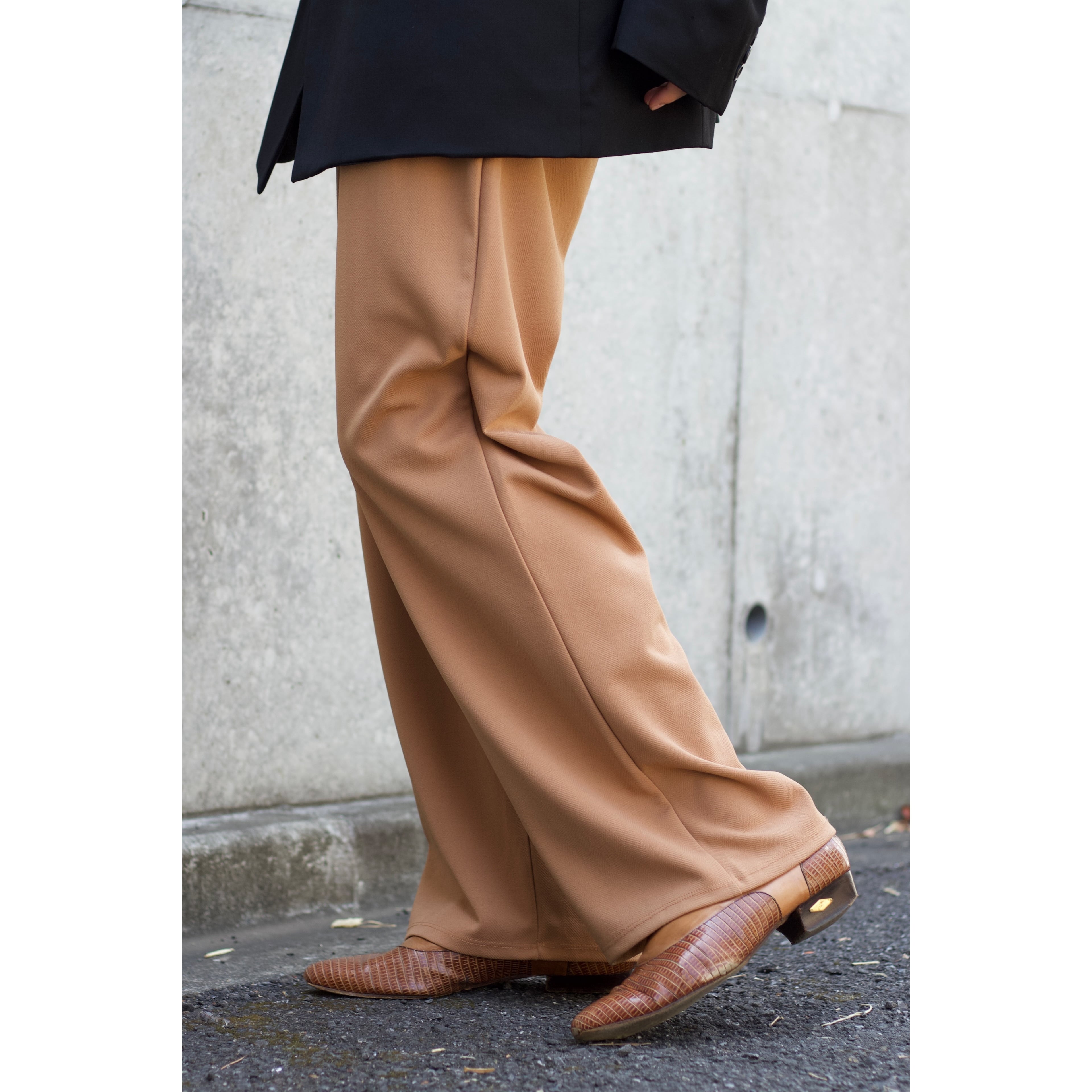 程よい太さで、裾にかけて綺麗にまっすぐ落ちるワイドストレート。動く時のドレープ感がたまらない一着。