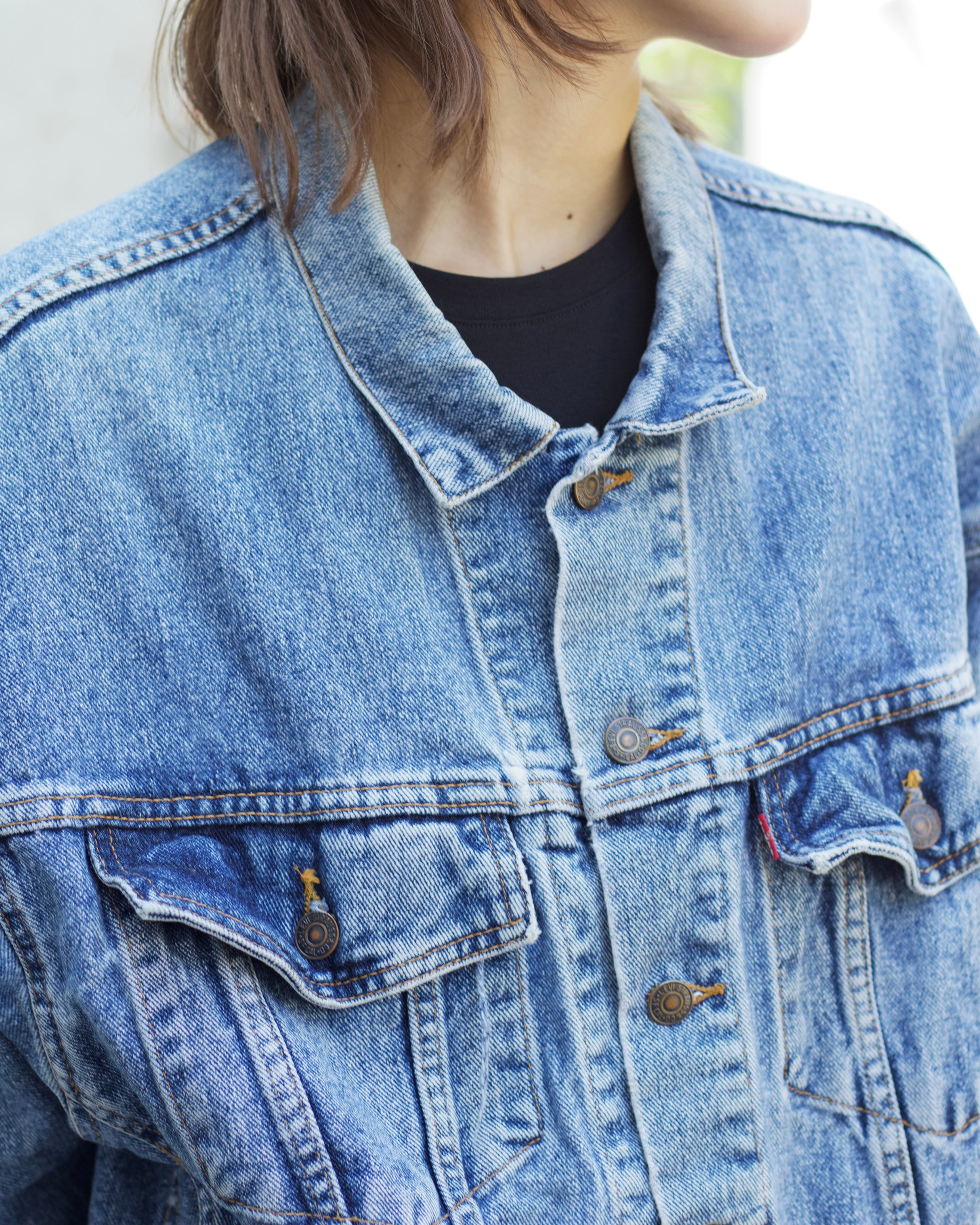 首元のレザーパッチタグやリーバイス刻印ボタン、胸ポケットのフラップなど、細部までブランドらしさの詰まった一着☺︎