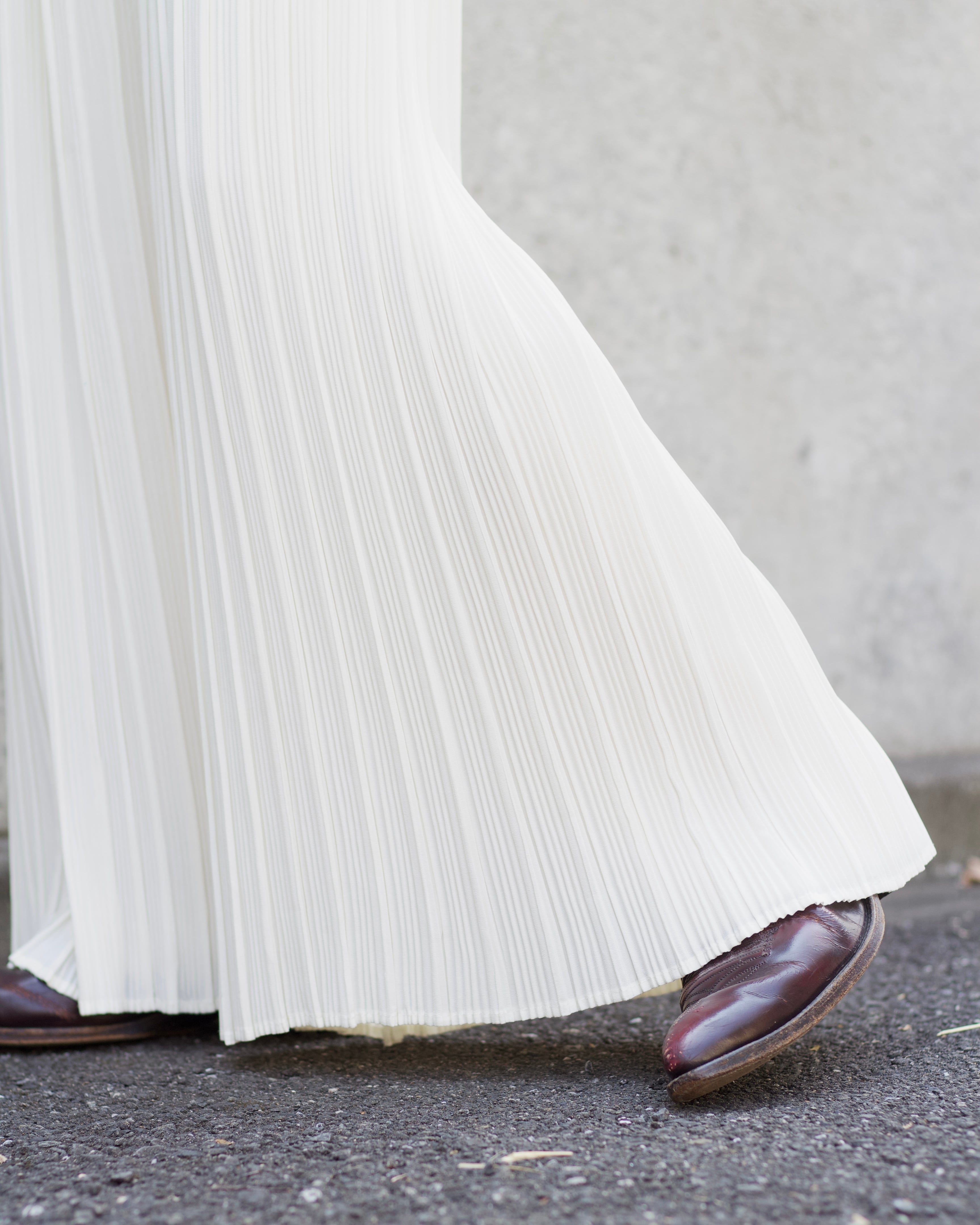 ドレープ感のあるとろとろした表情にプリーツがとても魅力的な一本。