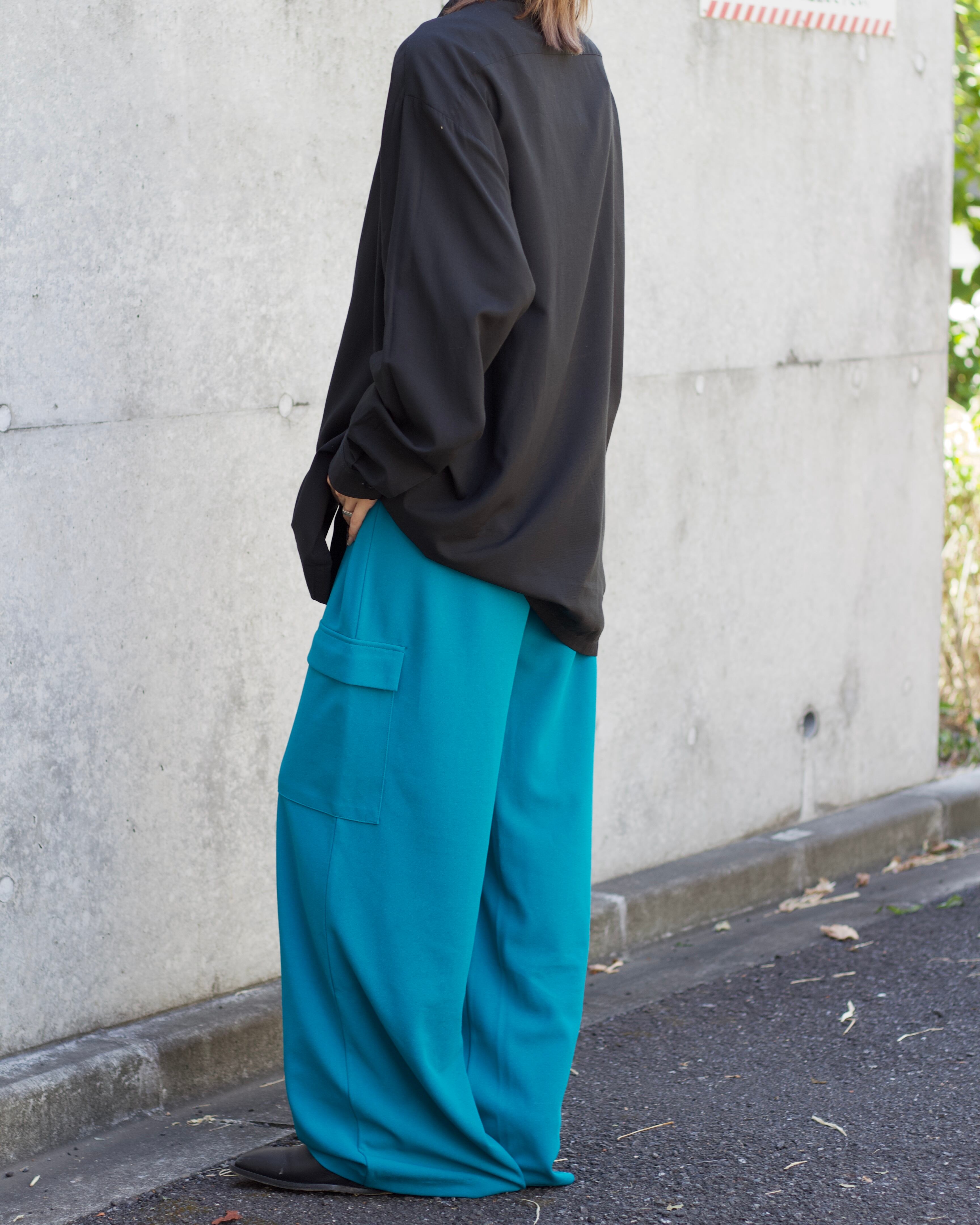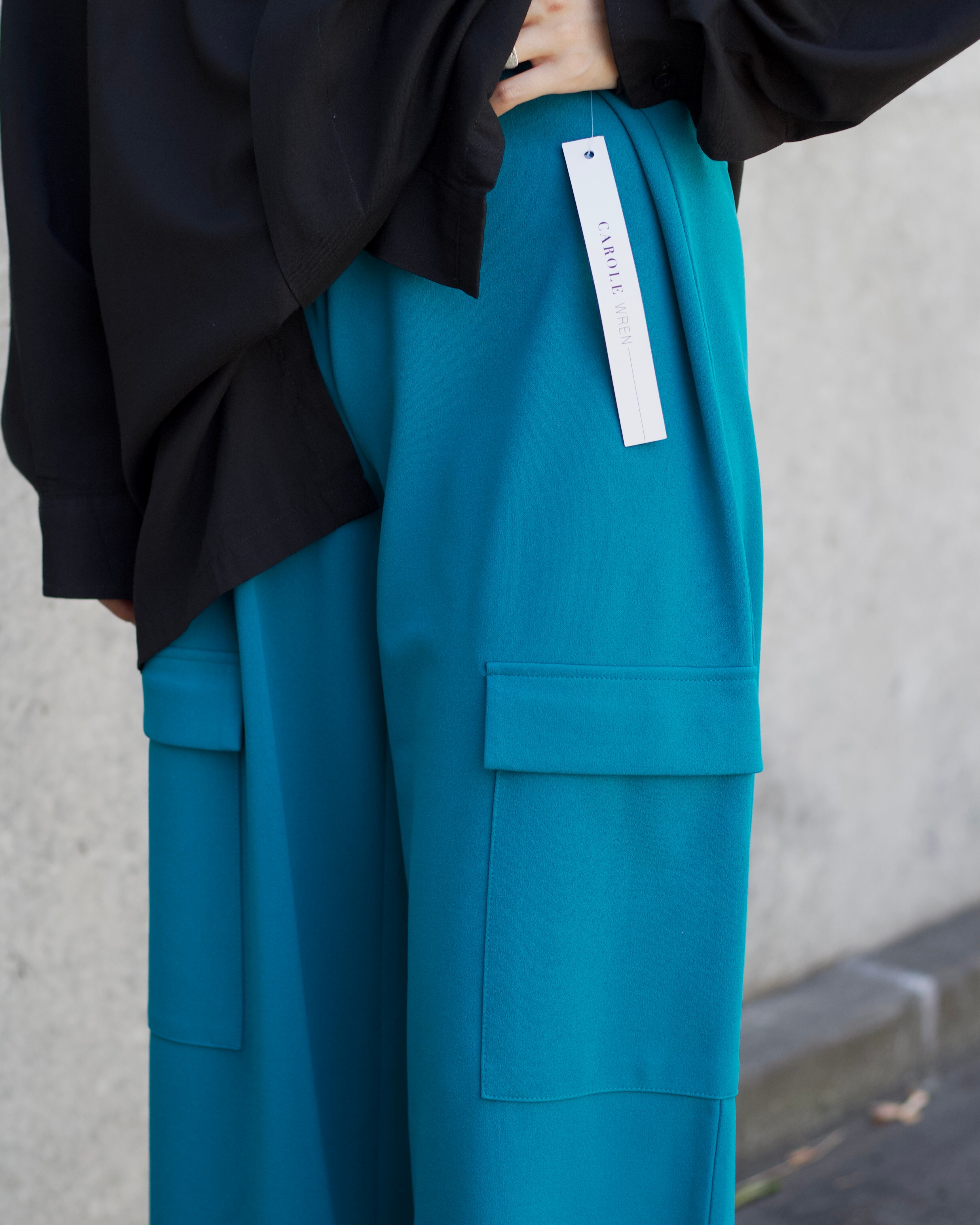 珍しいターコイズブルーカラーで、デニムの様な合わせやすさは待ち合わせつつ、ファッションに彩りを与えてくれます。