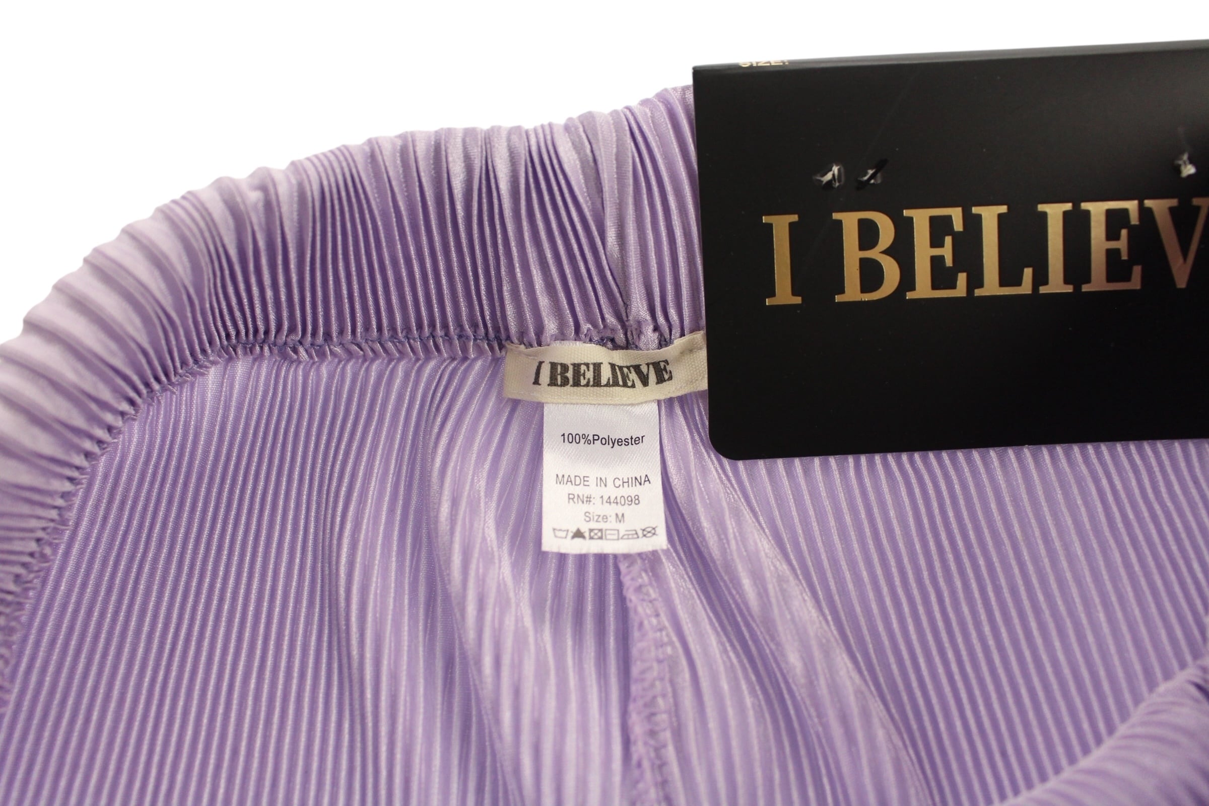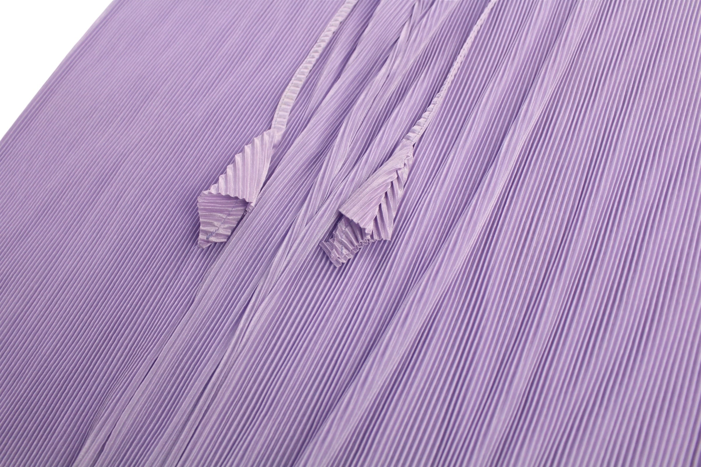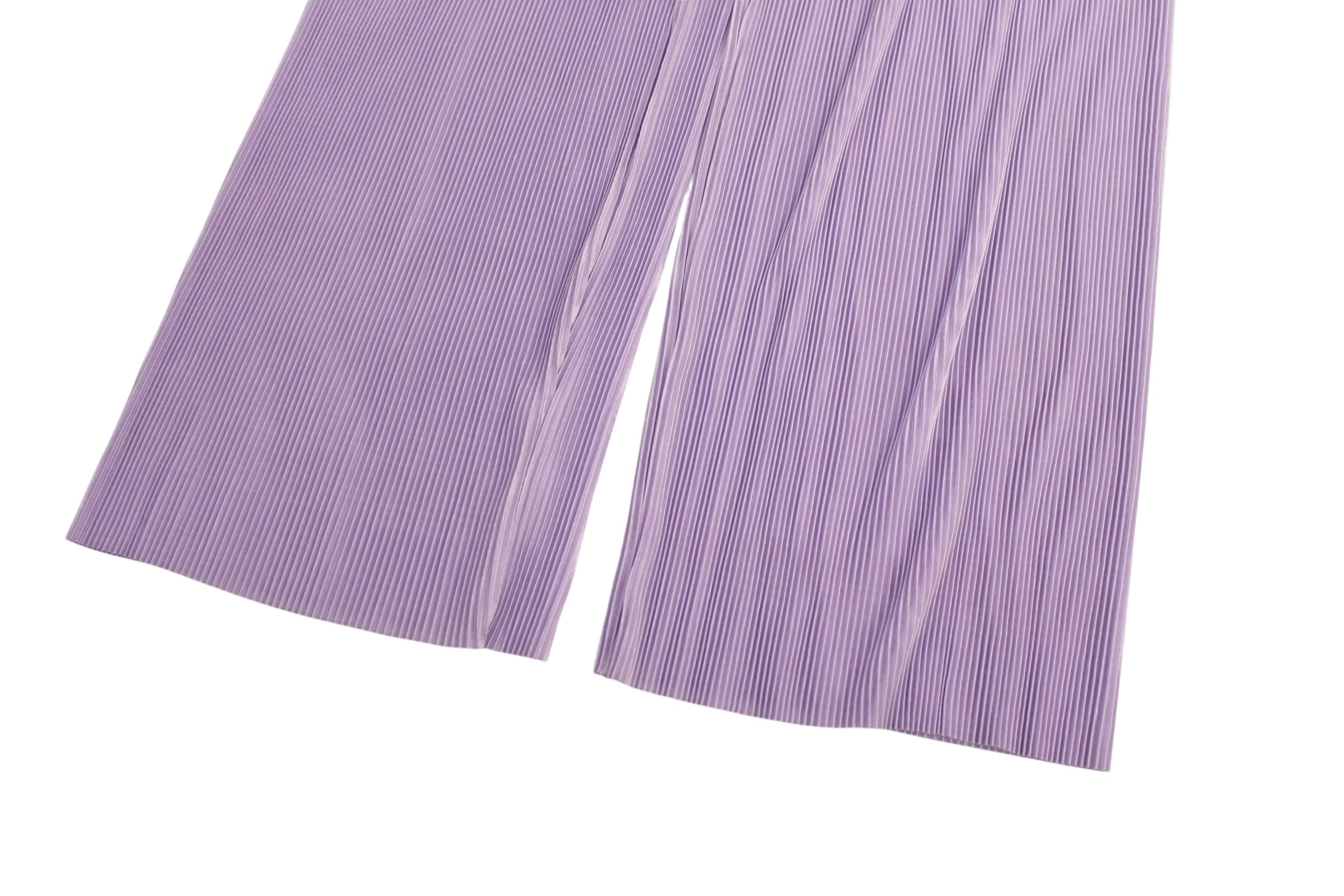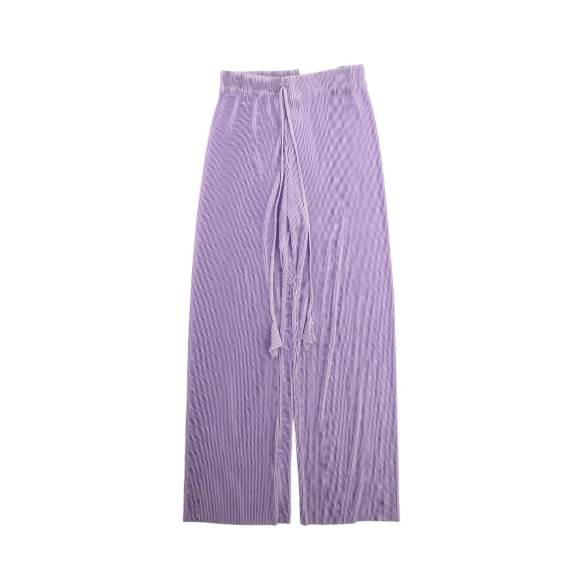 薄めのラベンダーカラー。秋冬に差し色として履きたい色物パンツです。ウエスト部分にはプリーツ生地の飾りが付いていアクセントに。