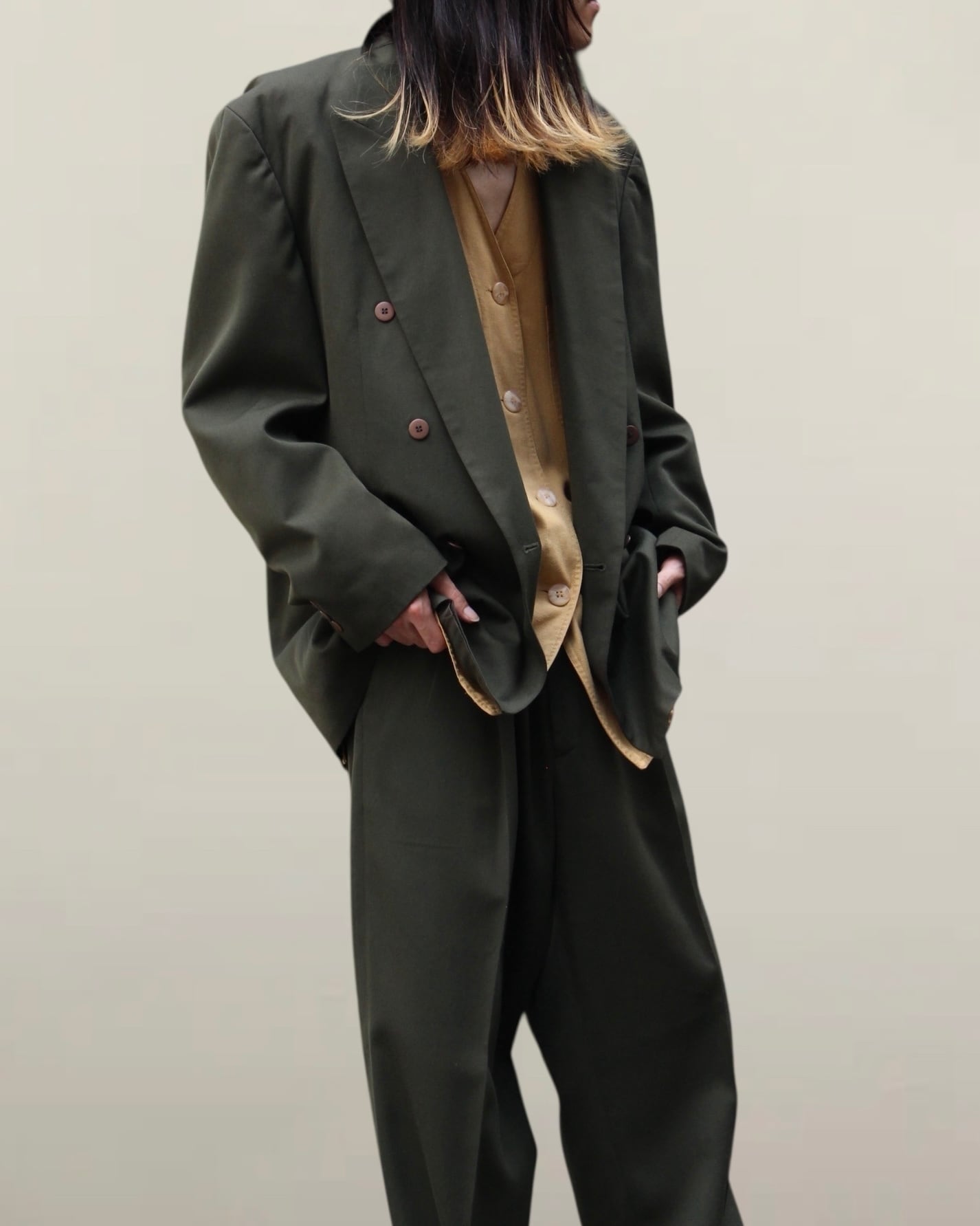 vintage dark green double tailored set up【OT-13480】