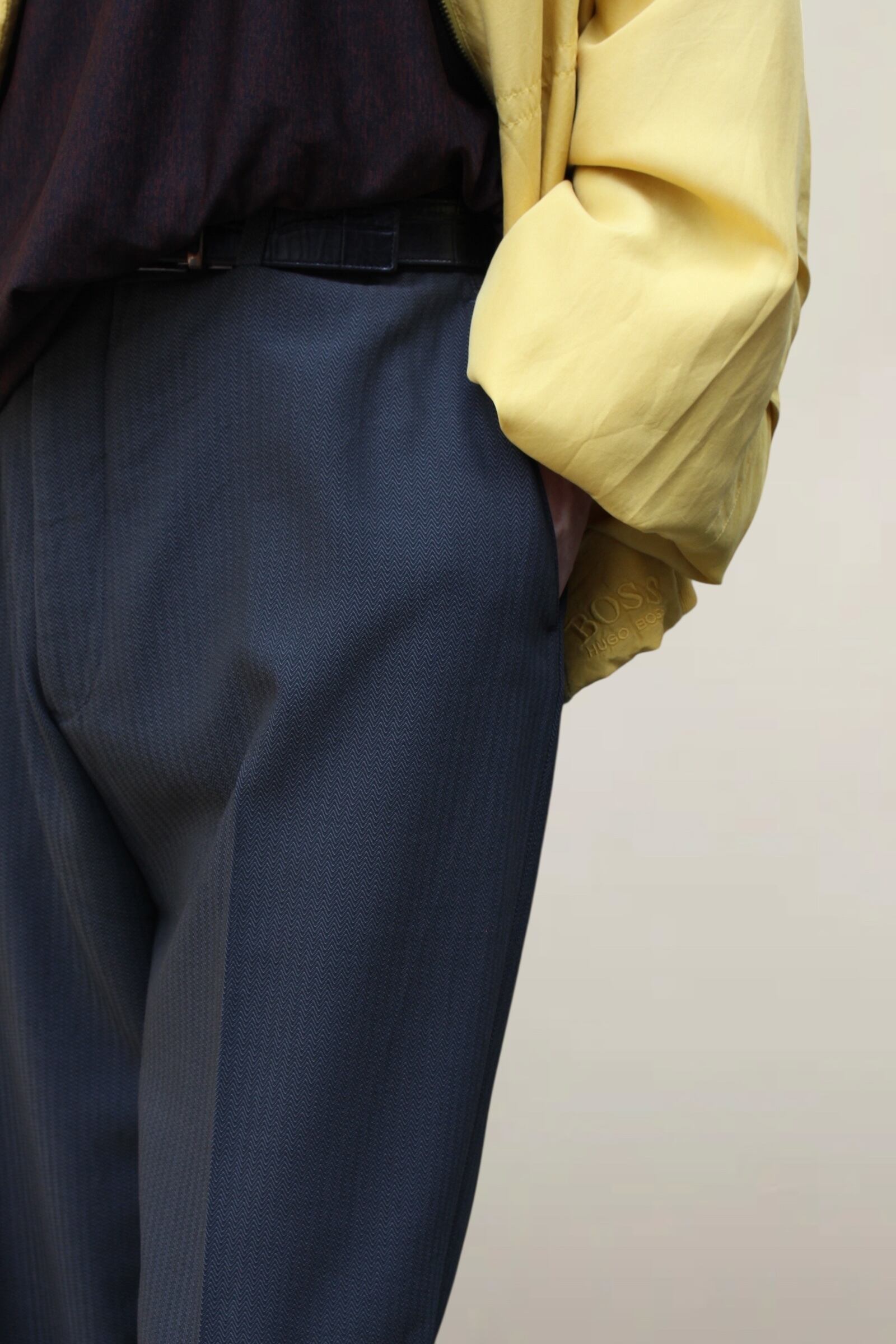 "ARMANI COLLEZIONI" woven chevron pattern no-tuck wide slacks【OT-9560】