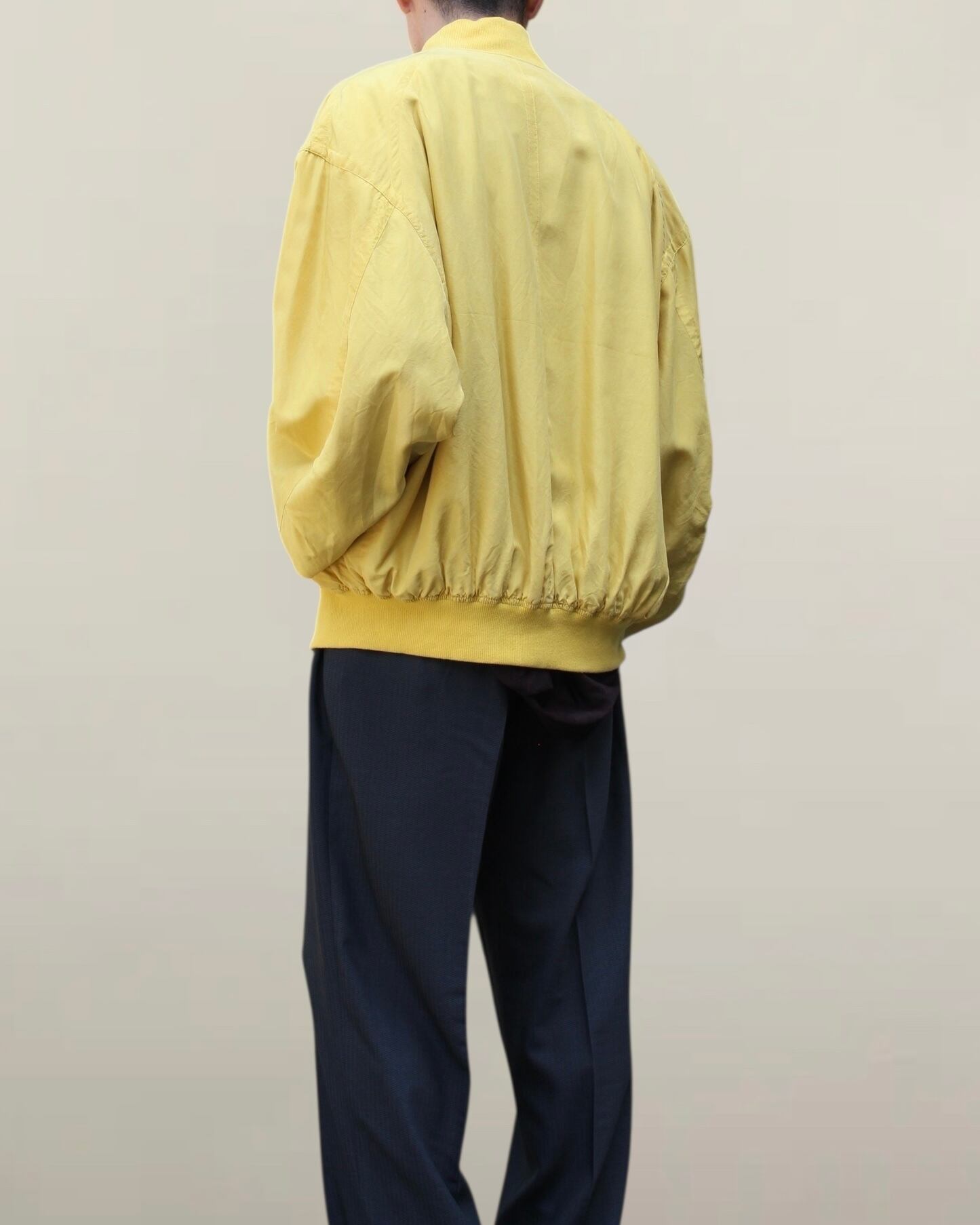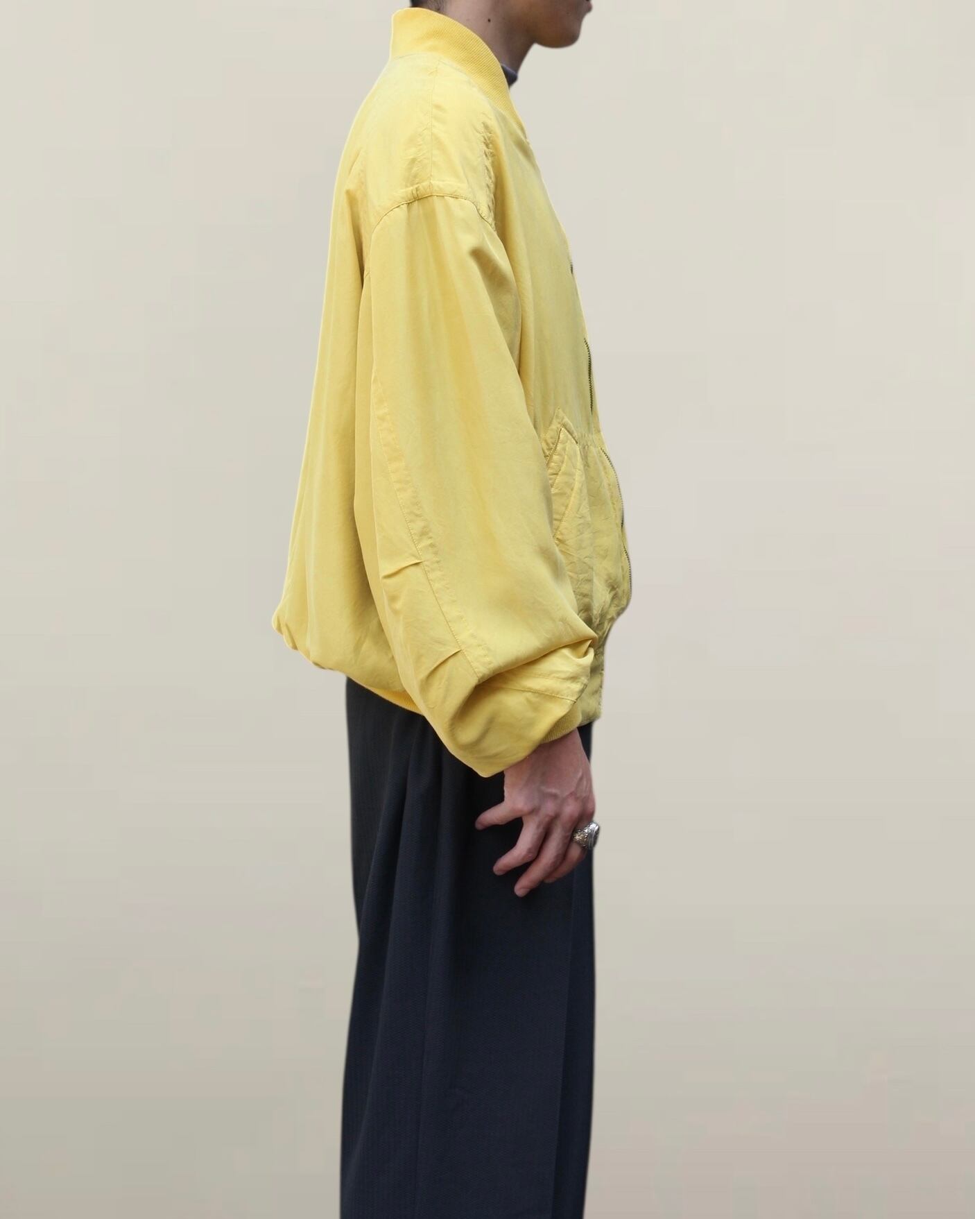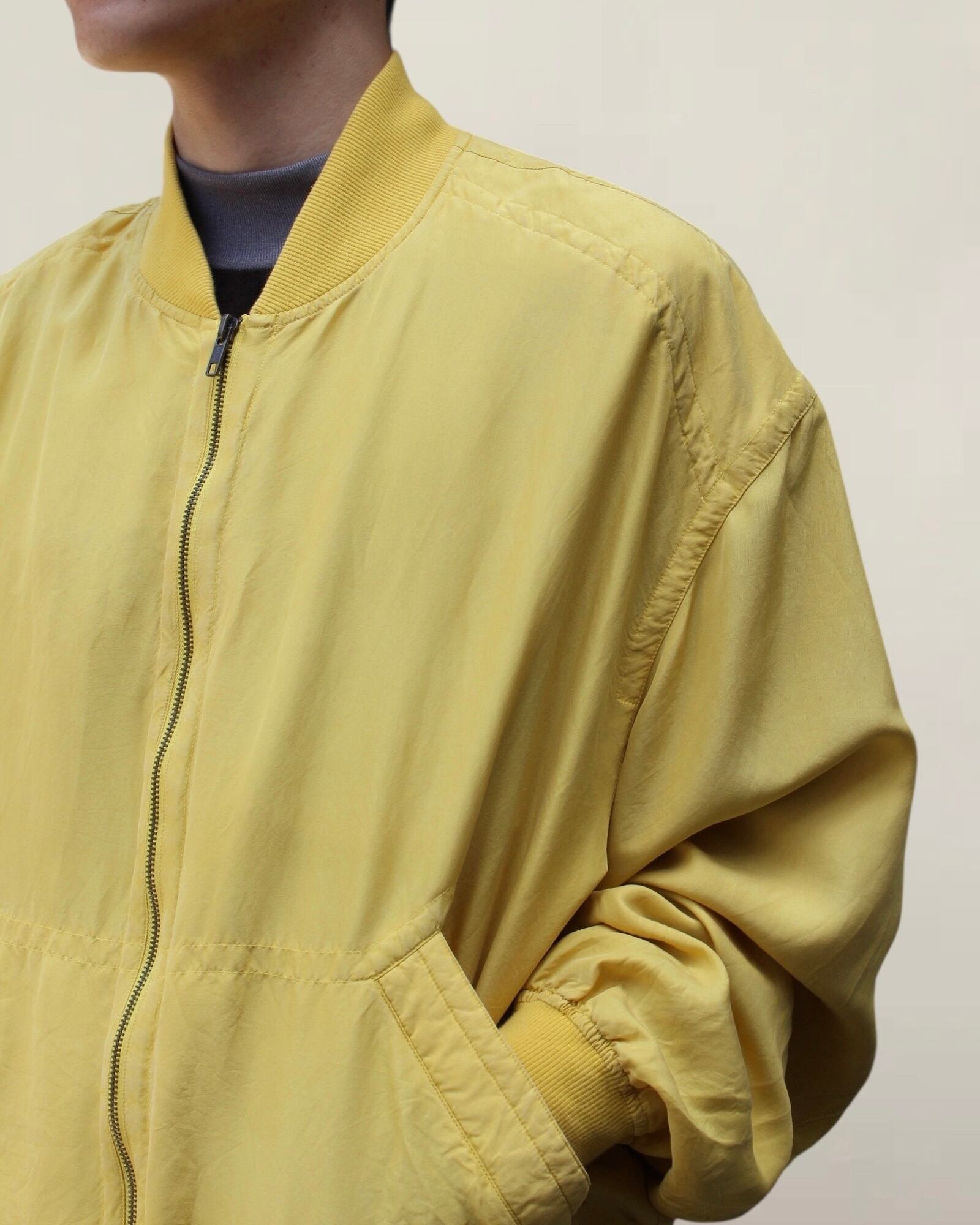 シルクの柔らかさを存分に活かした、ボンバーシルエットでリブで丸くなる形が素晴らしいですね◎