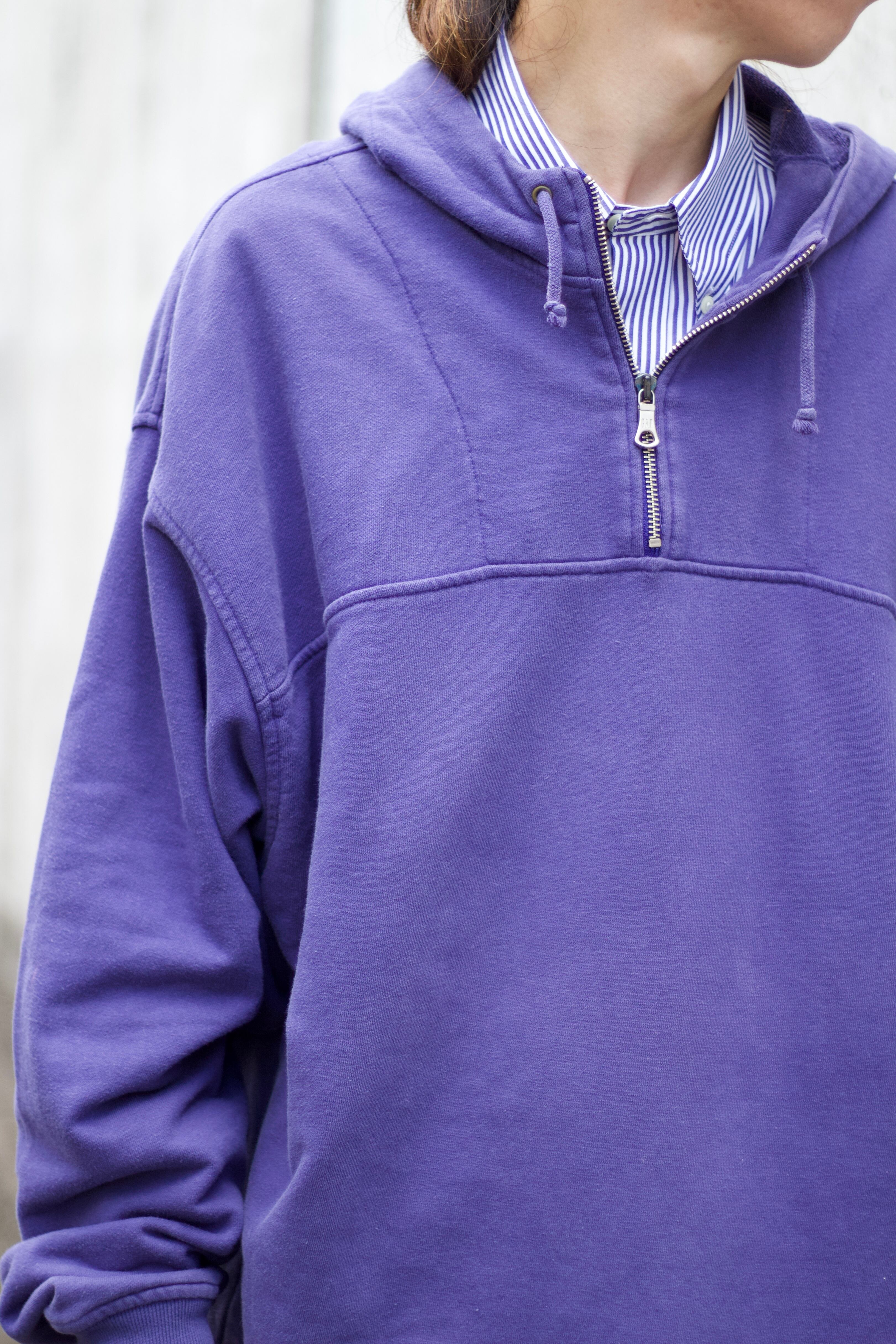 ヴィンテージ好きにはたまらないナス紺。そして身幅広めのルーズシルエット。