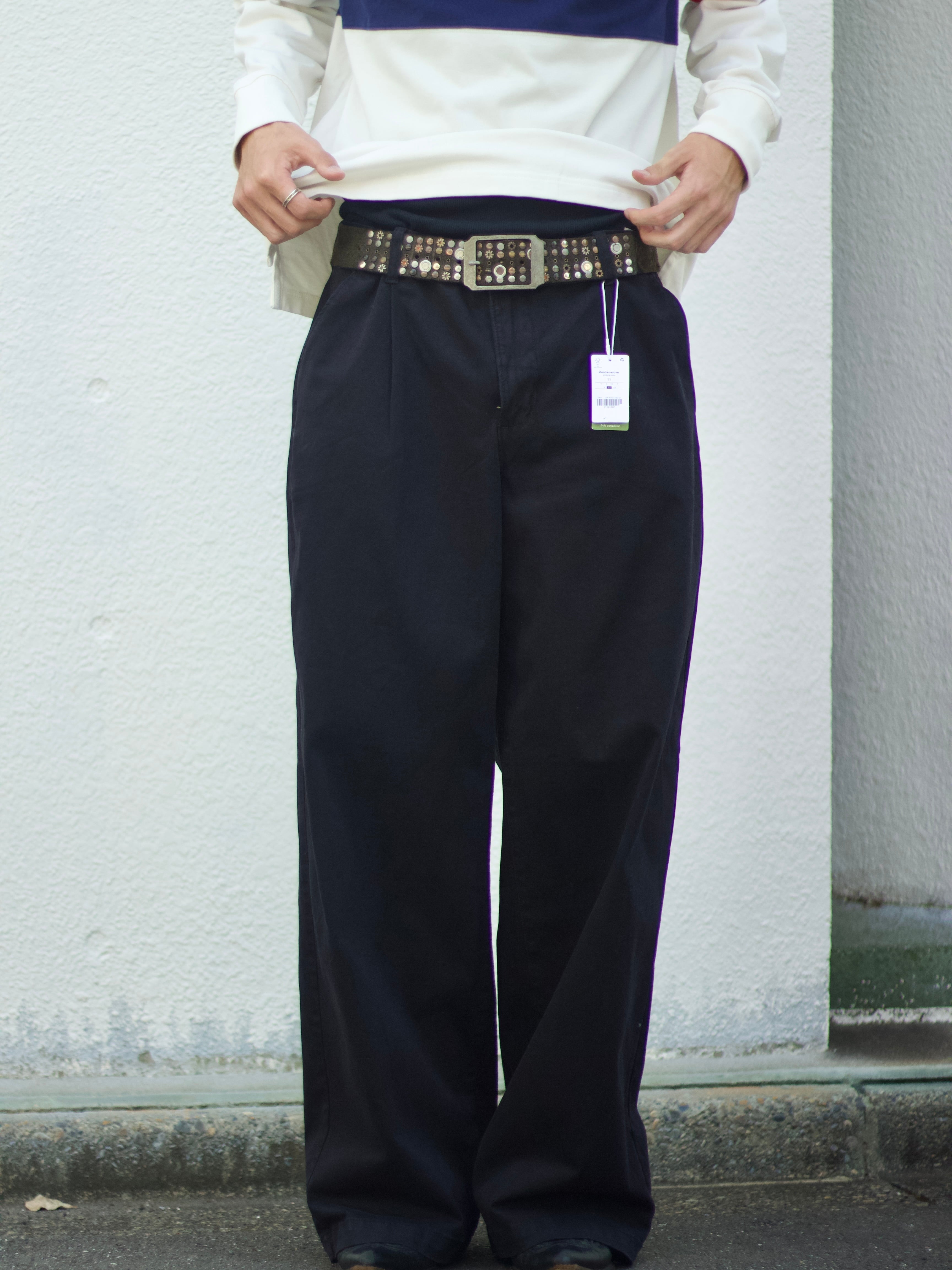 ハイウエストで履いてもよし、腰で履いて裾をためてあげてもめちゃくちゃかっこいいです。