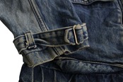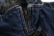ファイヤーマンジャケットとは、名前の通り消防士が着ていた防火ジャケットを現代風に再構築したアイテムなんですけど、こちらのデニムジャケットも、それを模した、ジップに比翼のように金具がついていてどこか男心をくすぐるデザイン◎