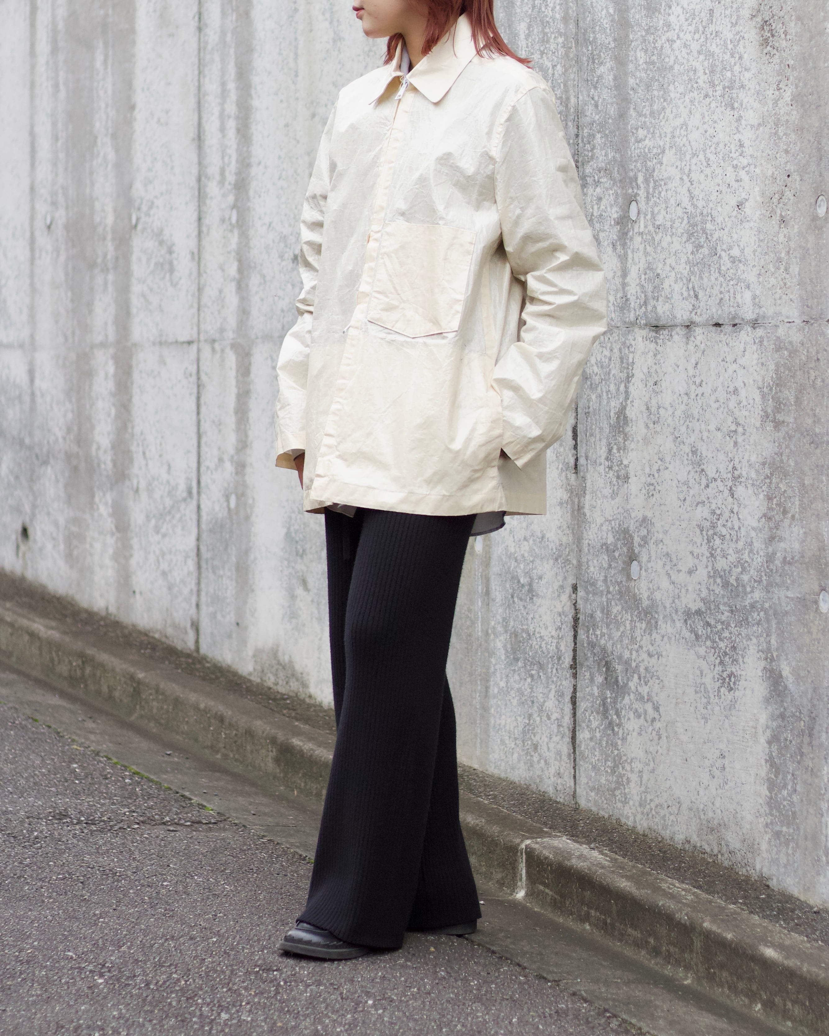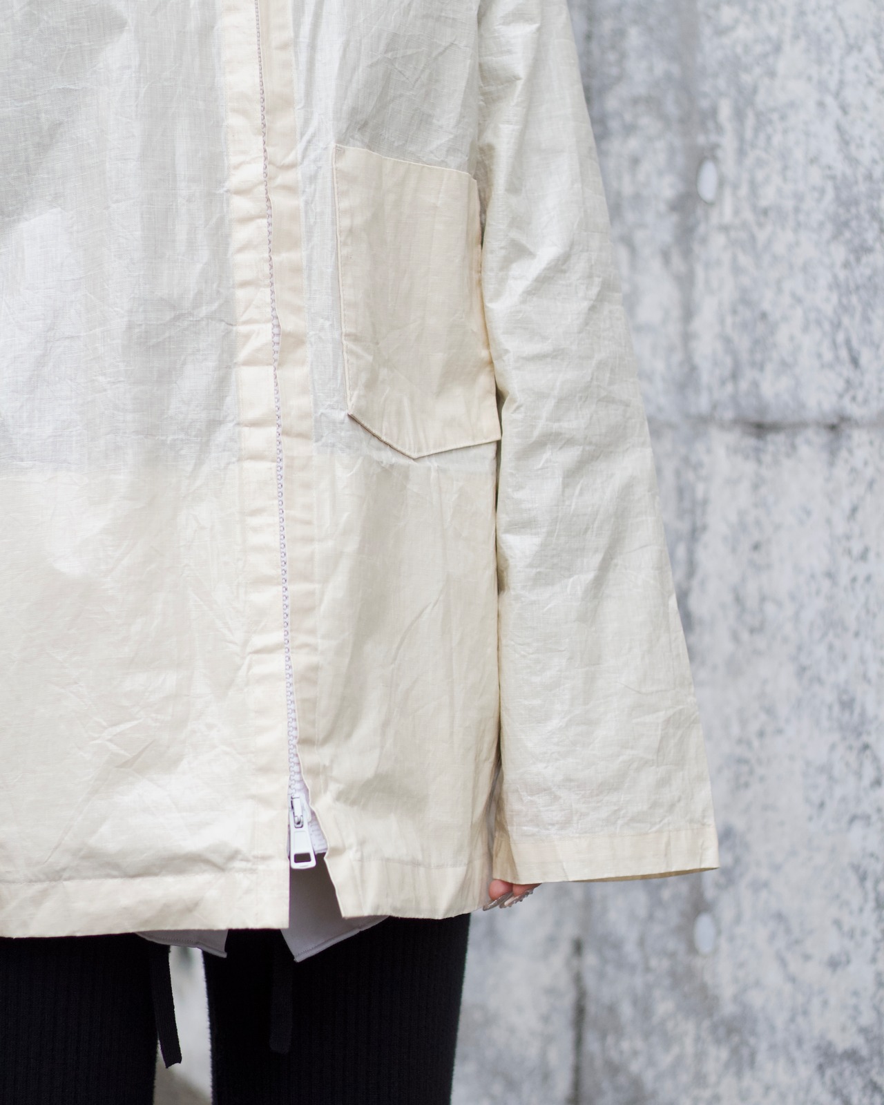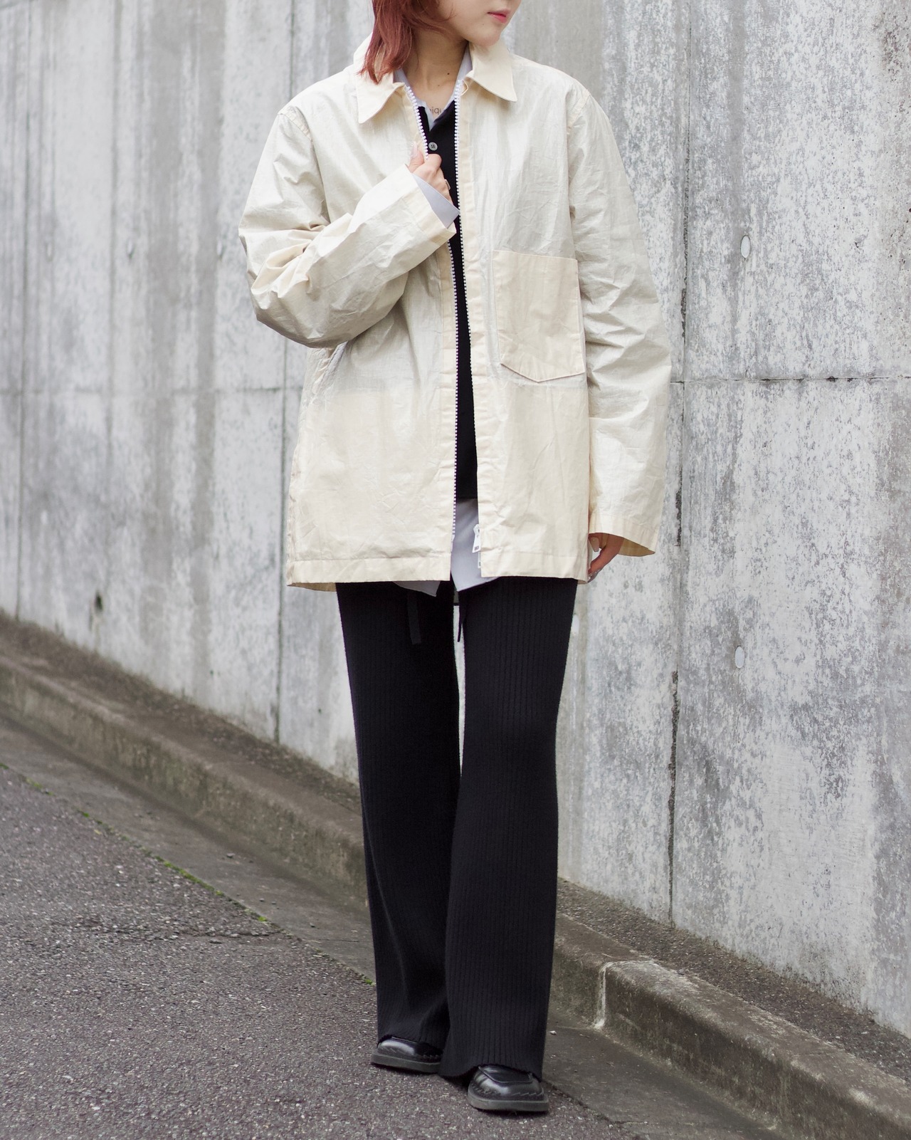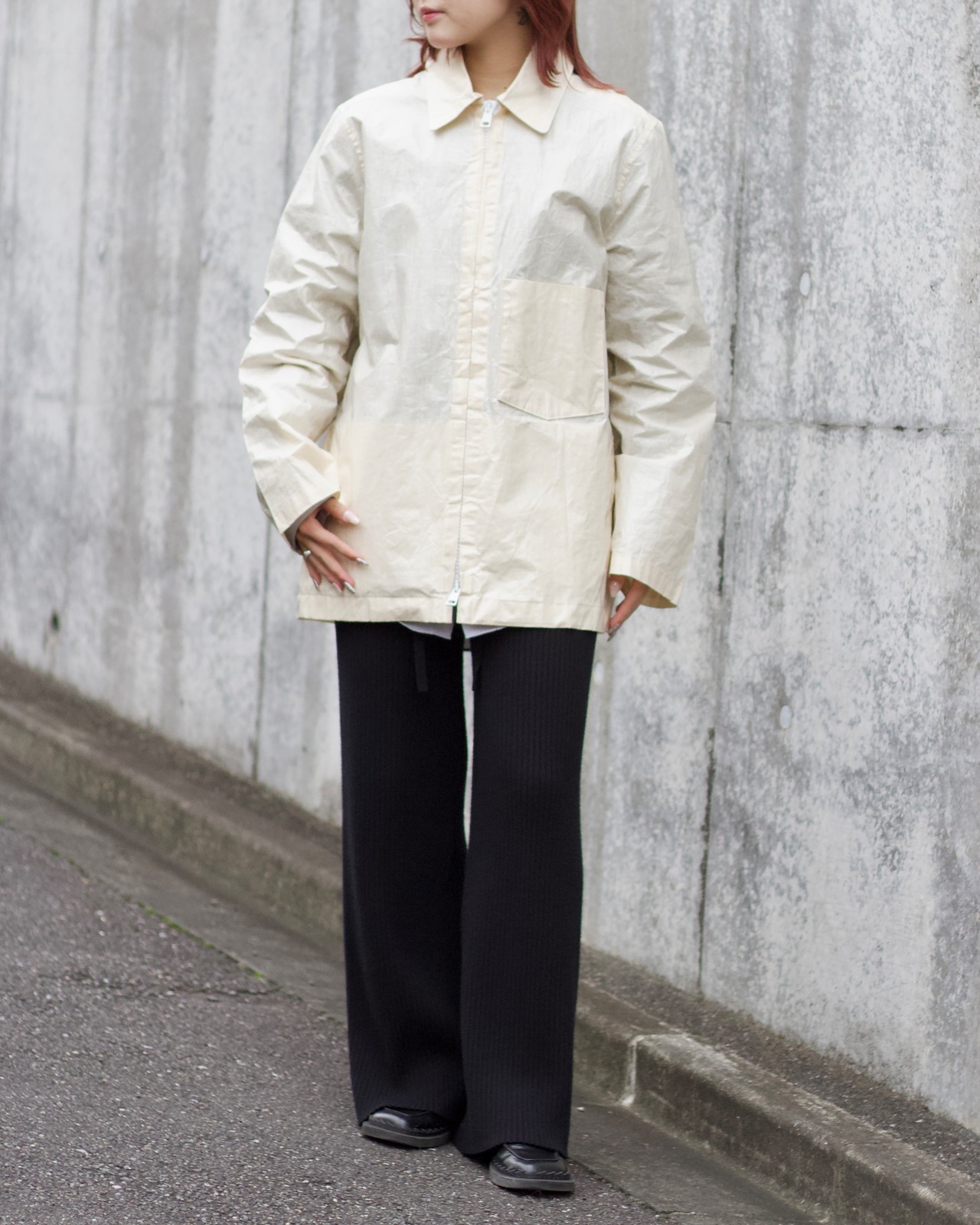 フロントはダブルジップ仕様、左胸に大きめのポケットを配置したミニマルなデザイン。