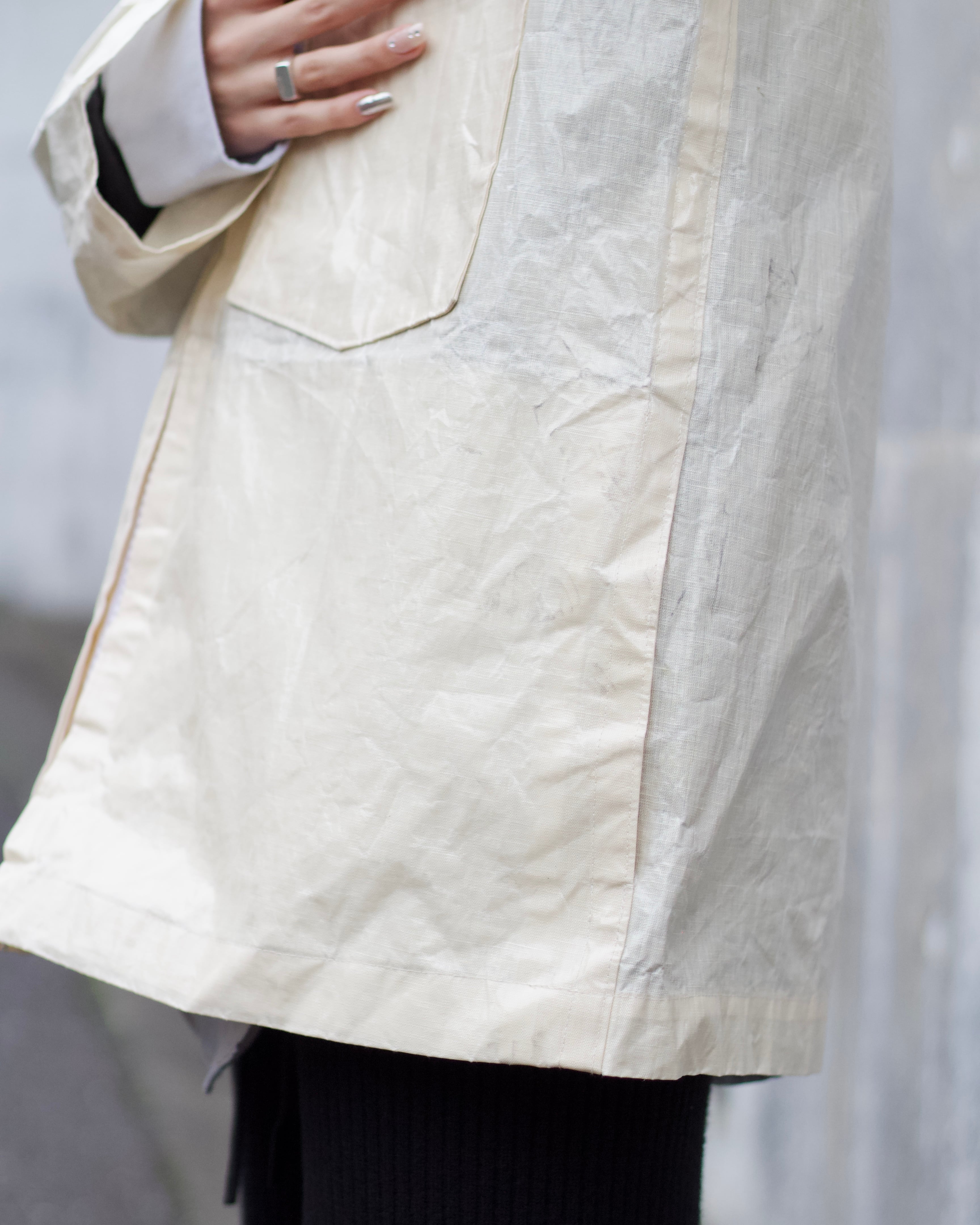 まるでIKEAのバッグを思わせるようなハリのある素材感で、軽量ながら存在感のある一枚。