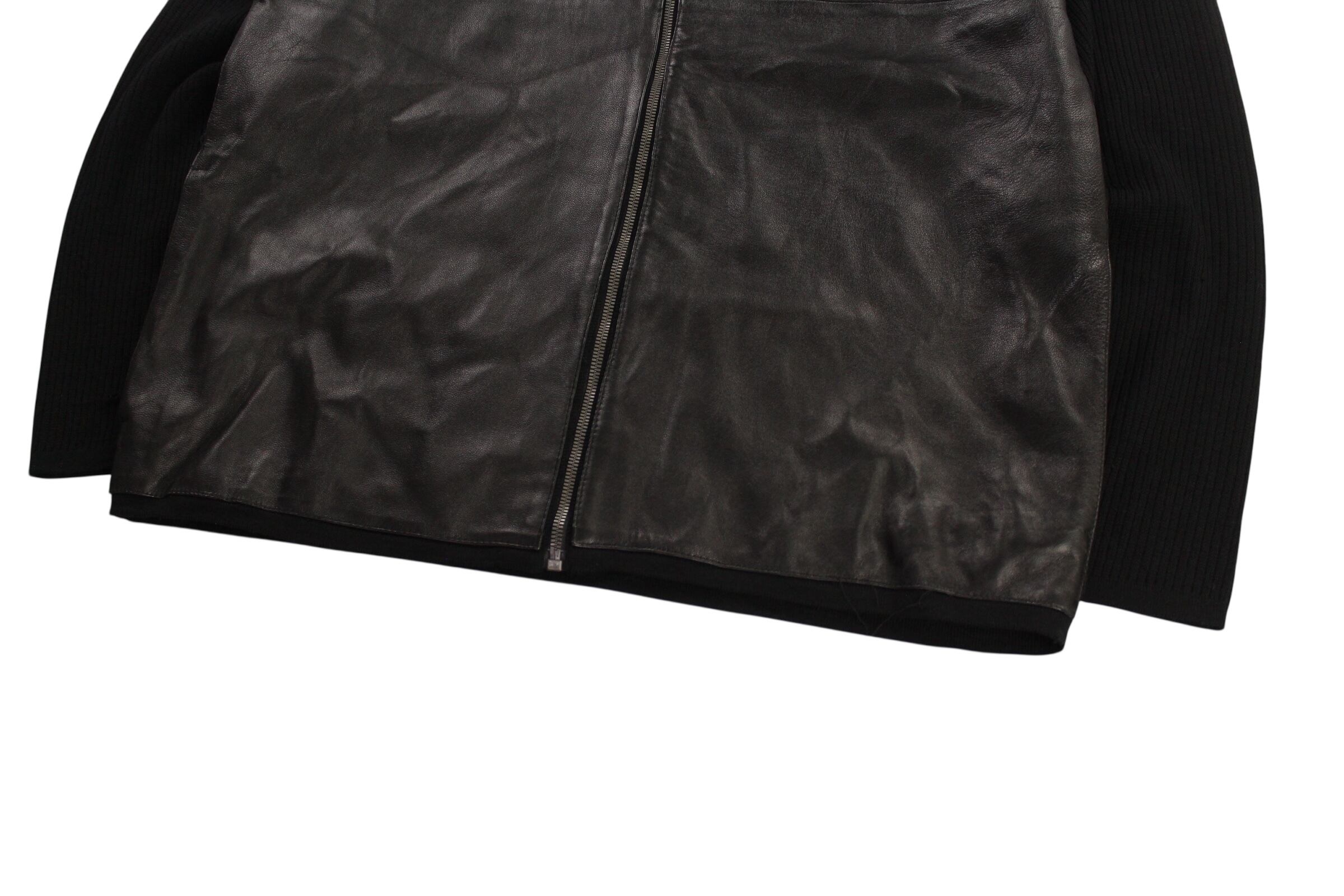 ボディの前面はしなやかなレザーを採用し、袖や背面には伸縮性のあるニット素材を組み合わせた異素材ミックスの一着◎