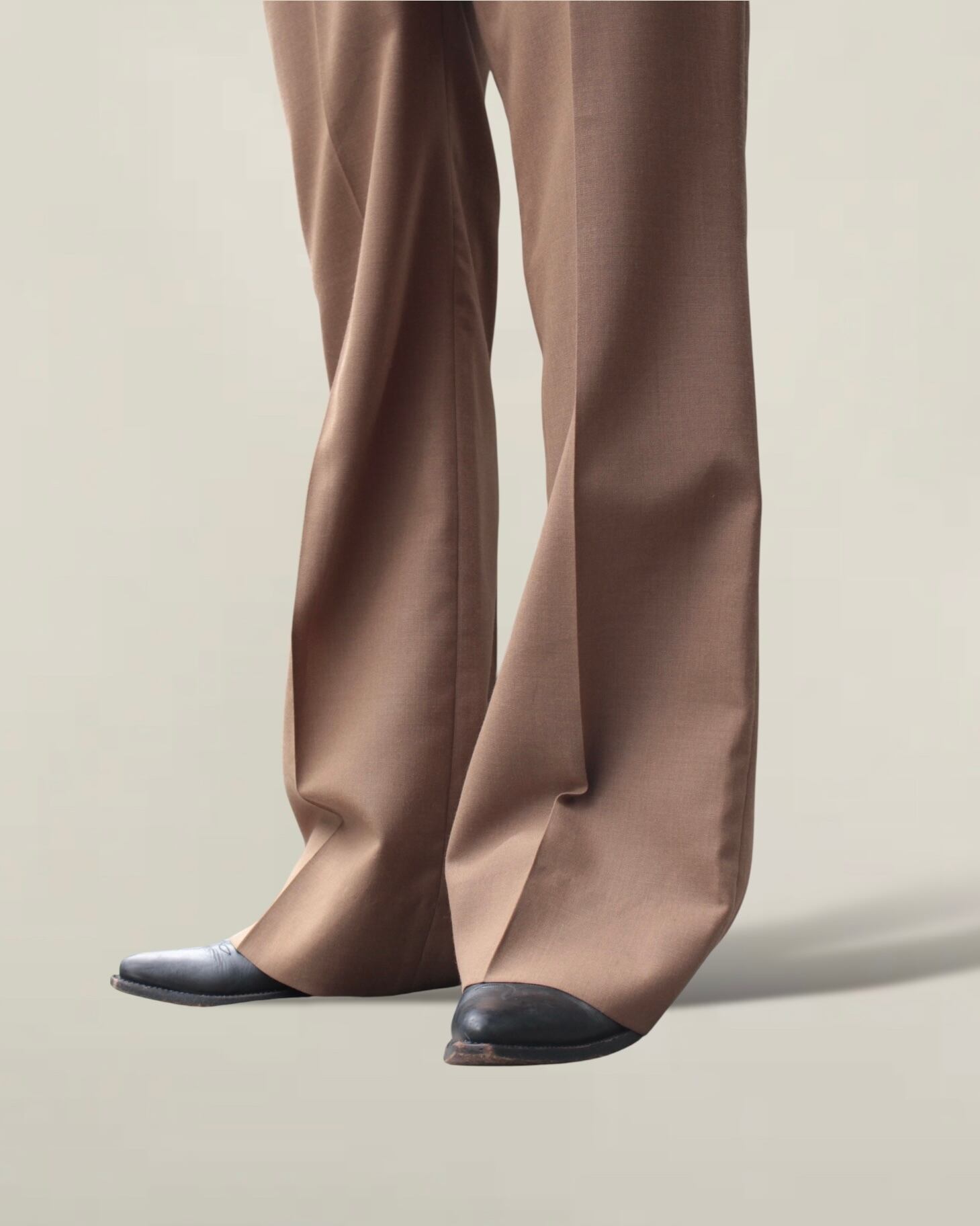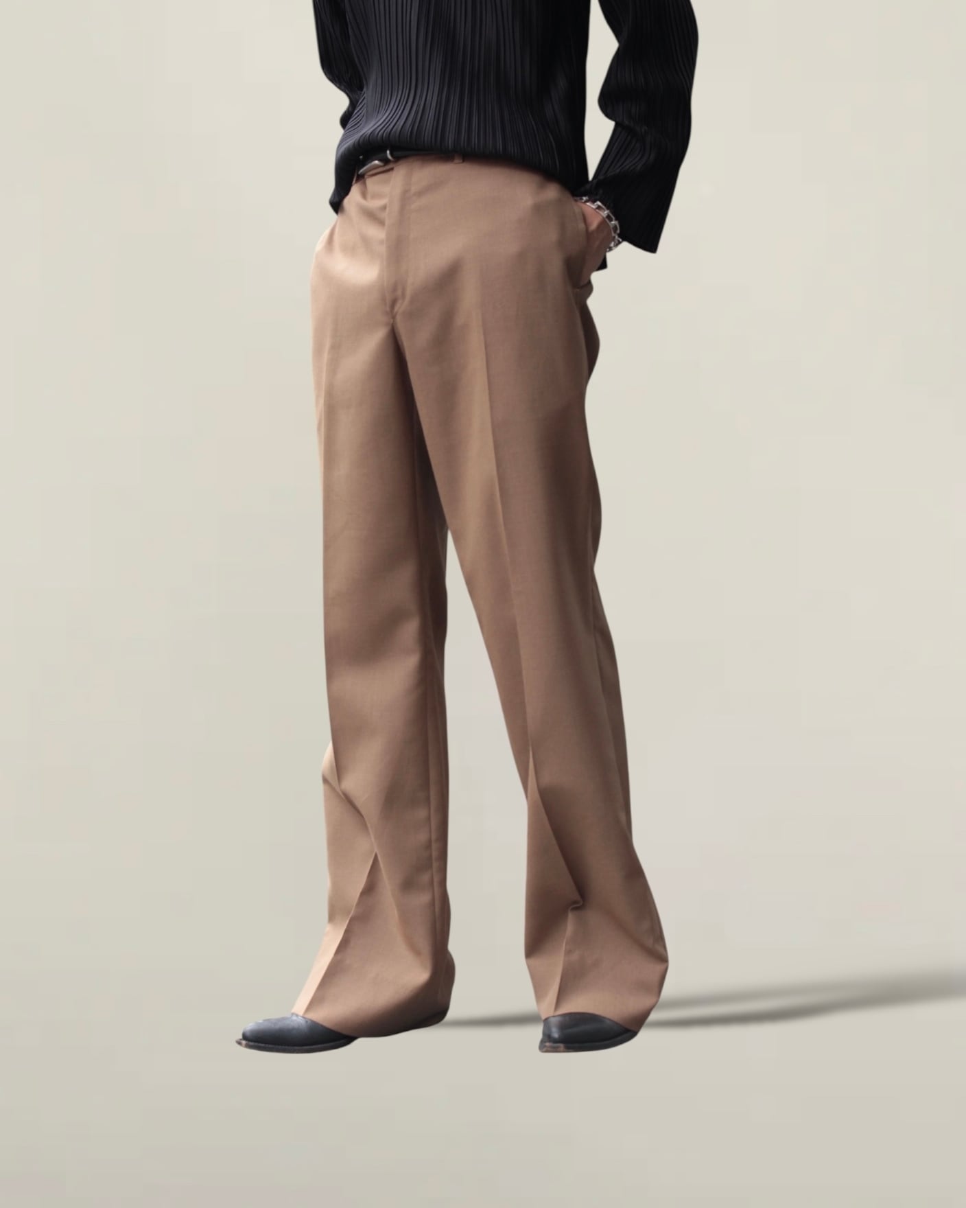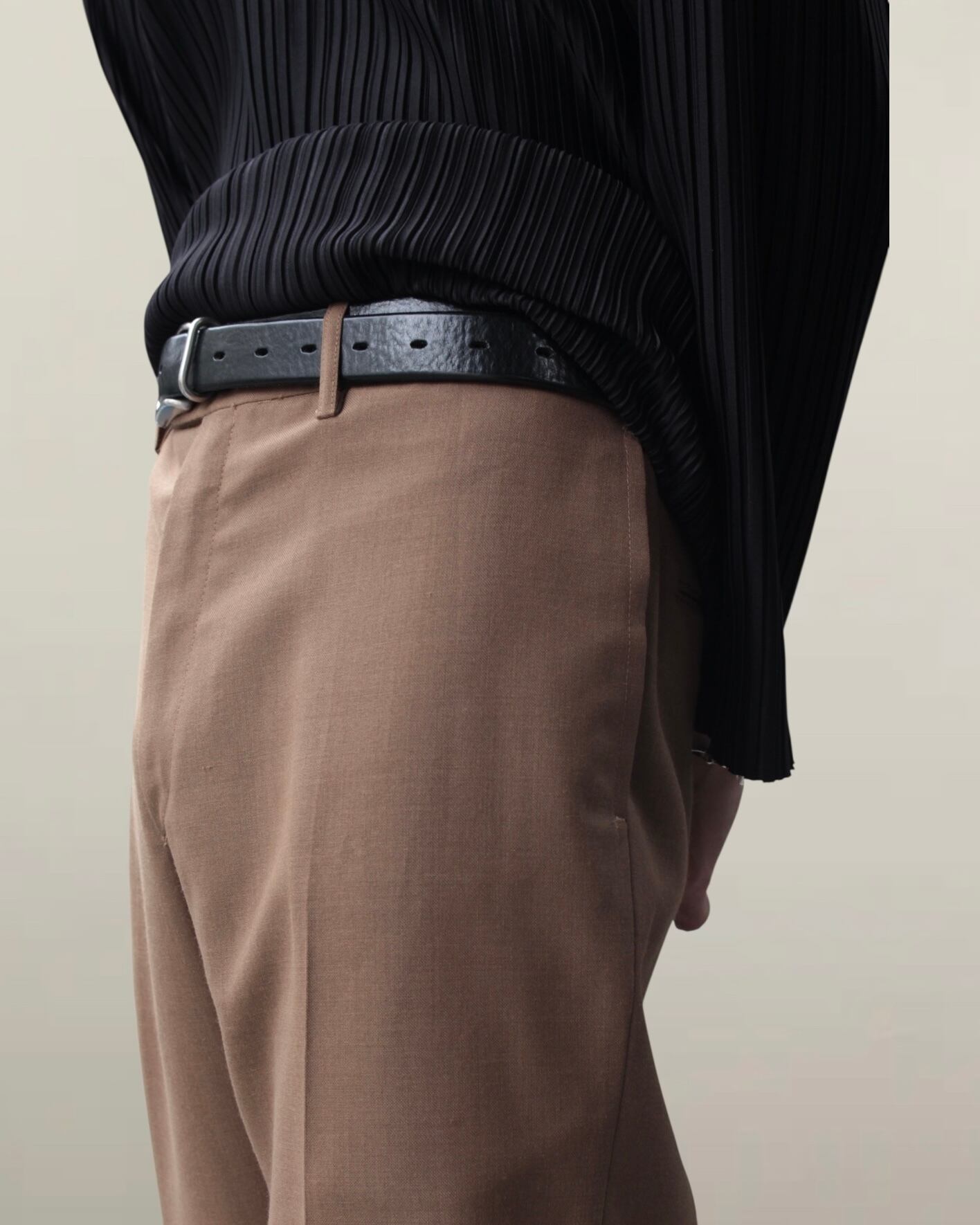 まず、クラシックなノータックシルエットがすっきりとシャープな印象