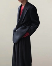 身幅はゆとりがありこの手のものだと、着丈も短めなのでパンツとのバランスも良く着ていただけるテーラードジャケットかと◎