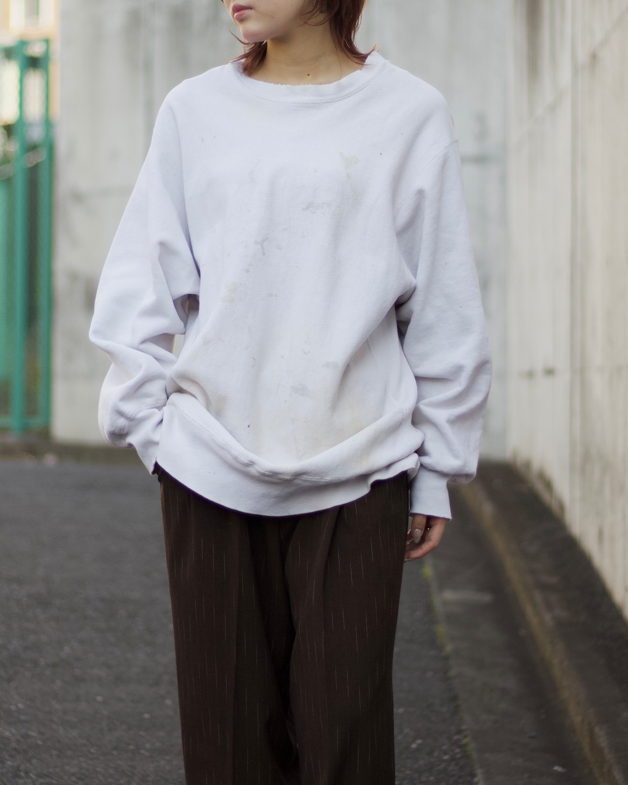 目無しのタイプなので、主張の激しくないのがポイント。さりげなく、洗練されたヴィンテージスウェット。