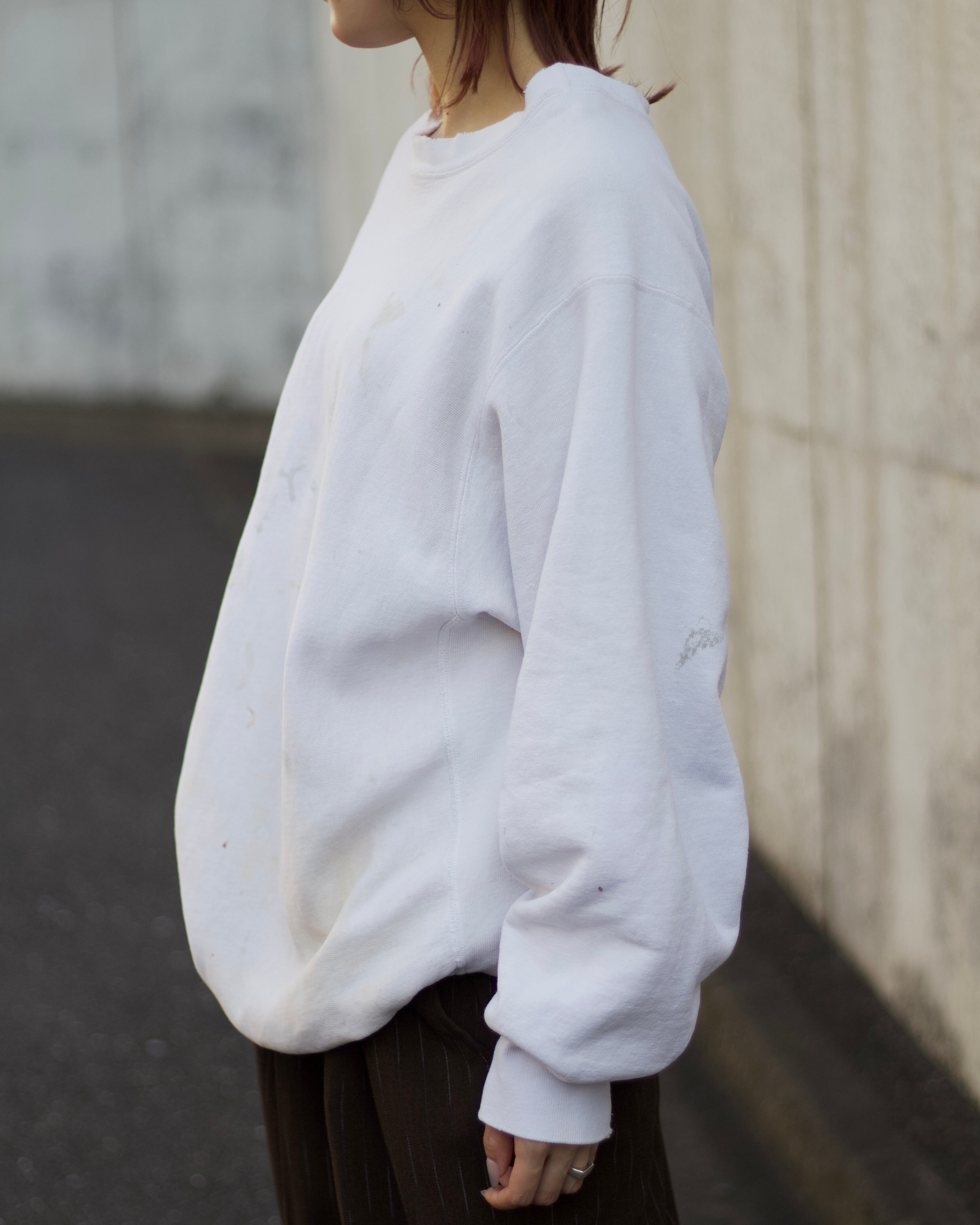 ヴィンテージスウェットは小さいものが多いですが、こちらは身幅、着丈が大きめに作られているのでいい意味で今っぽくも着れるかと。