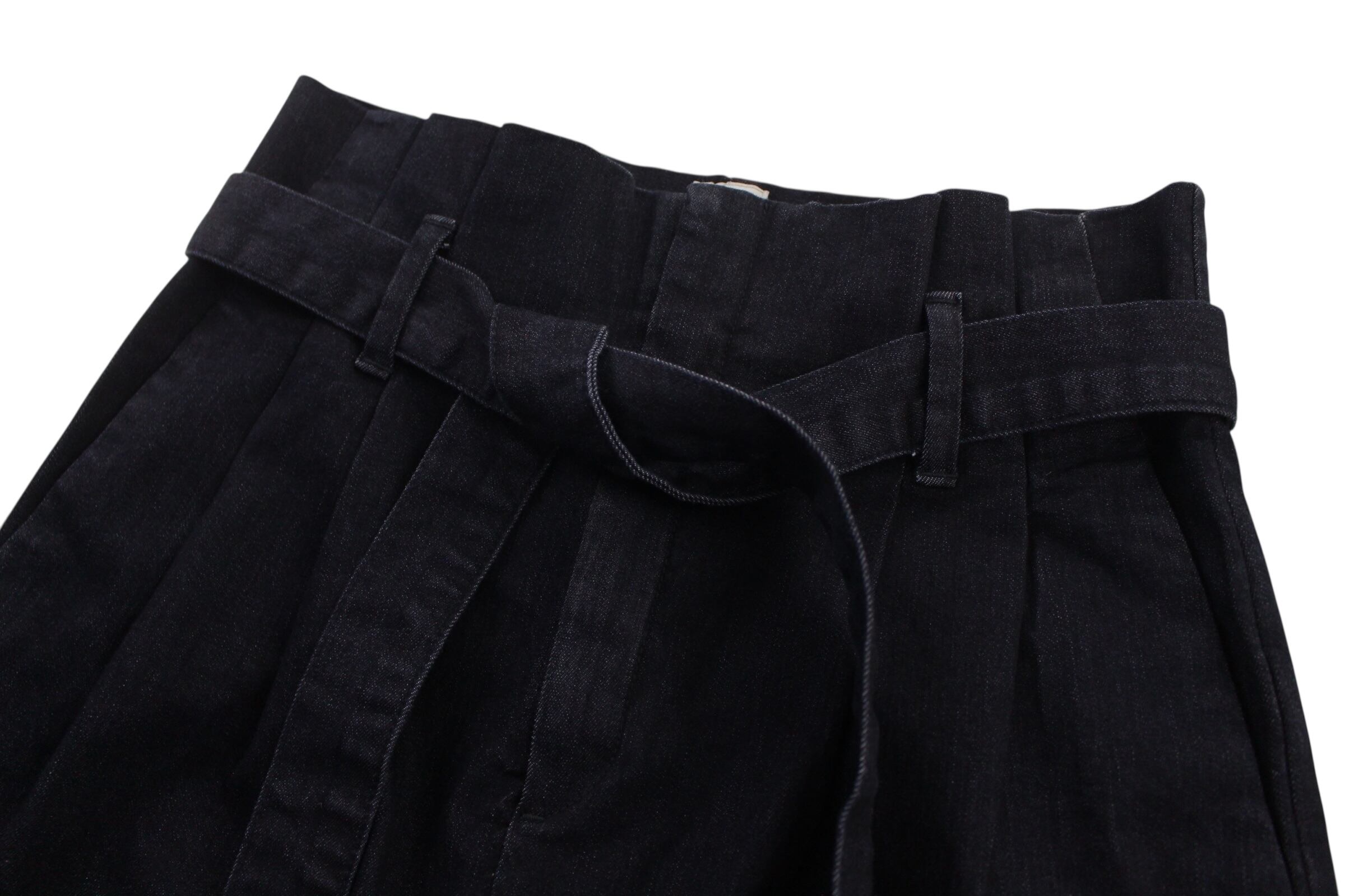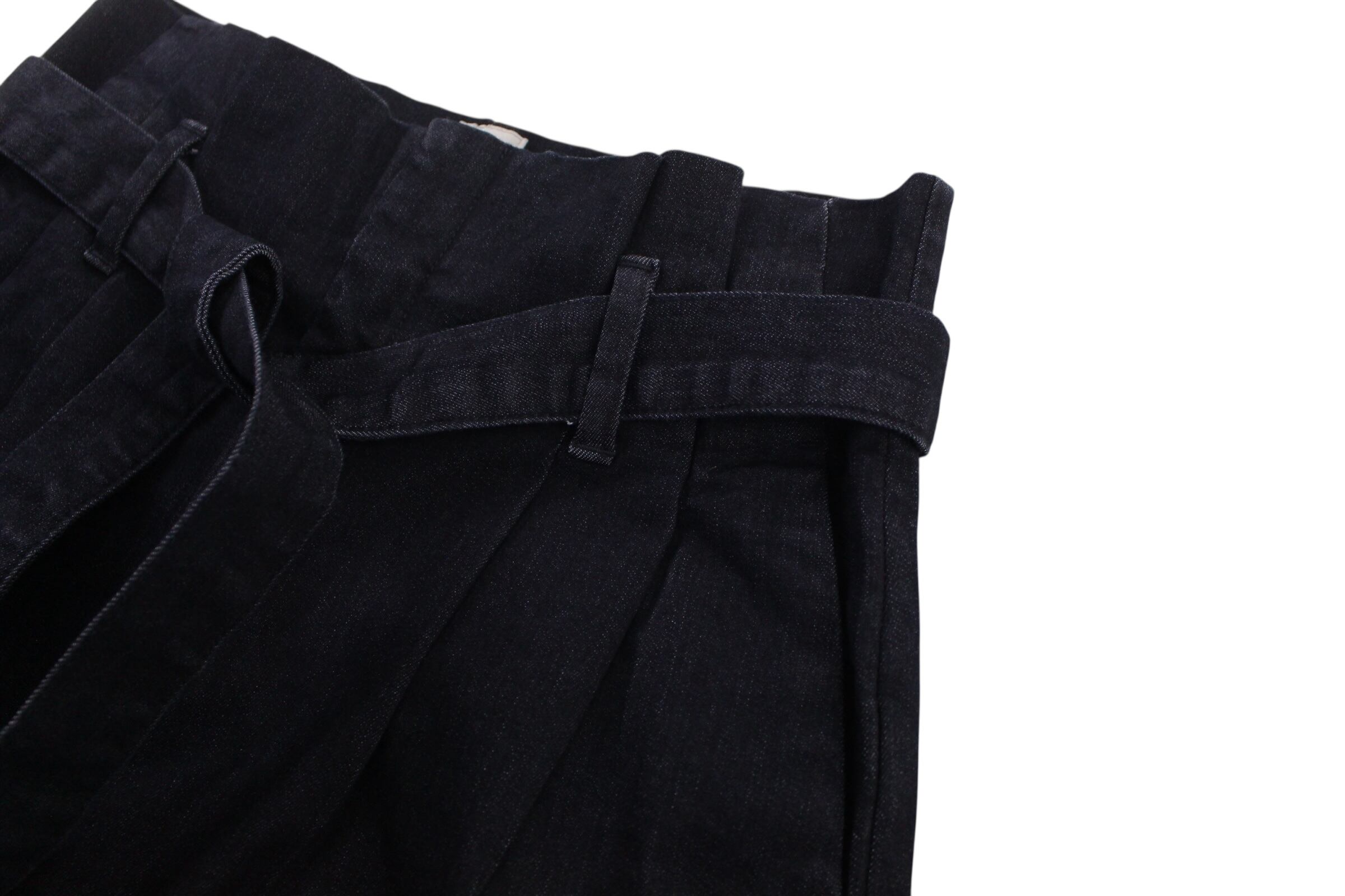 Wide buggy belted dark indigo blue cropped denim pants【OTTK-4308】