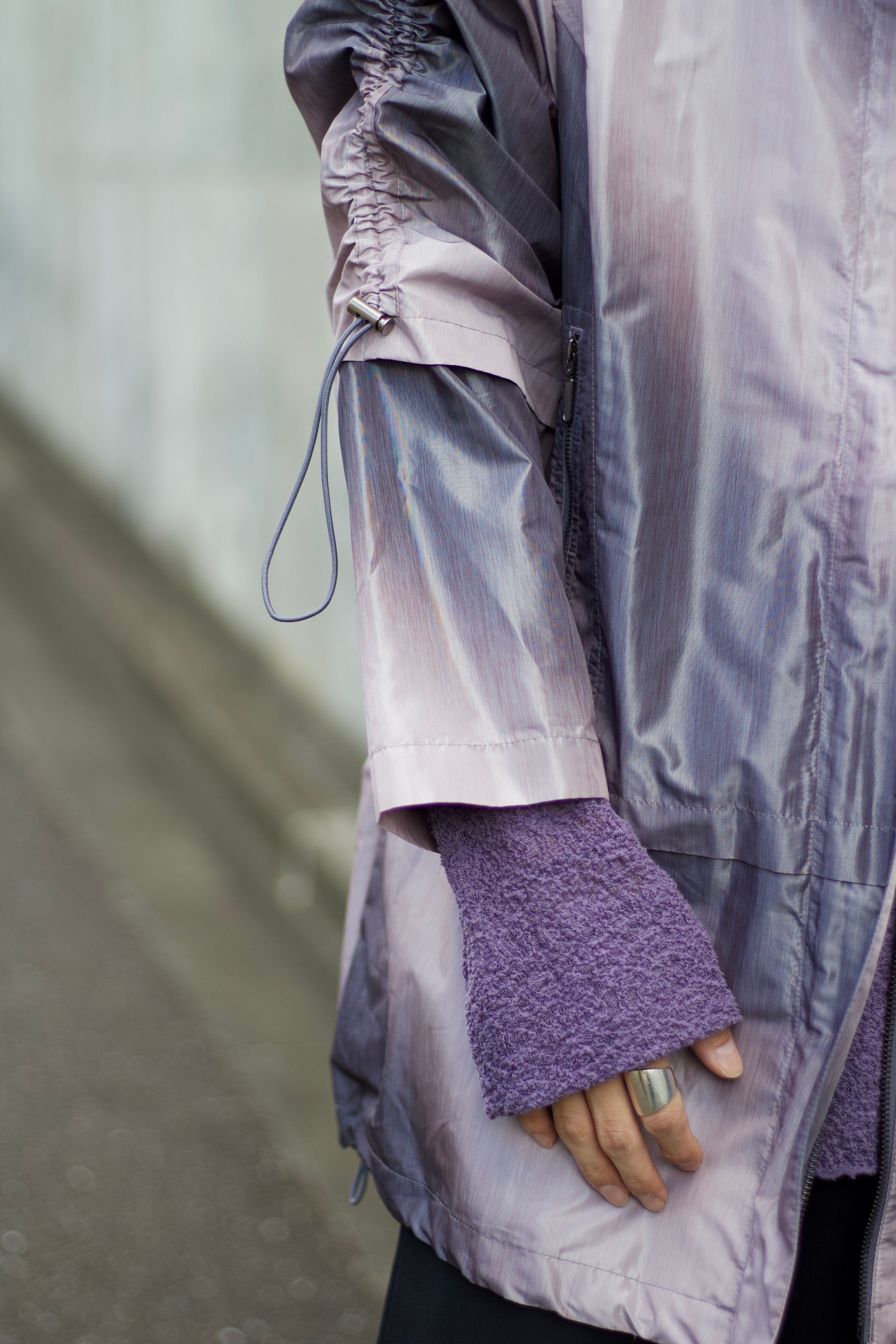 裾元と、腕にドローコードが左右1つずつついているので、着丈やアームの調整可能!ジップポケットもありますよ〜。