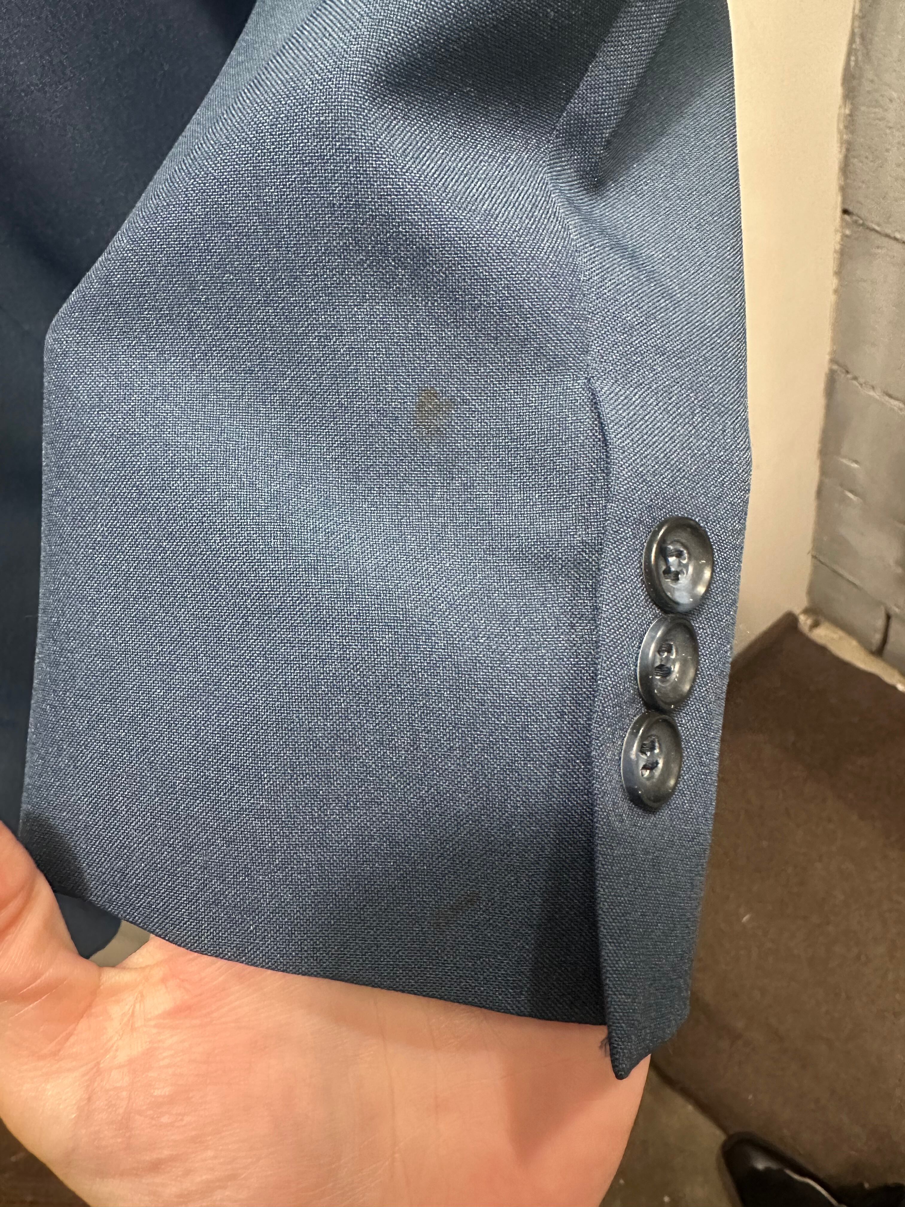 ダブルのテーラードジャケットで、スタイリッシュさ、フォーマルさはもちろんのこと、淡い色味は抜け感もしっかりと出してくれます。
