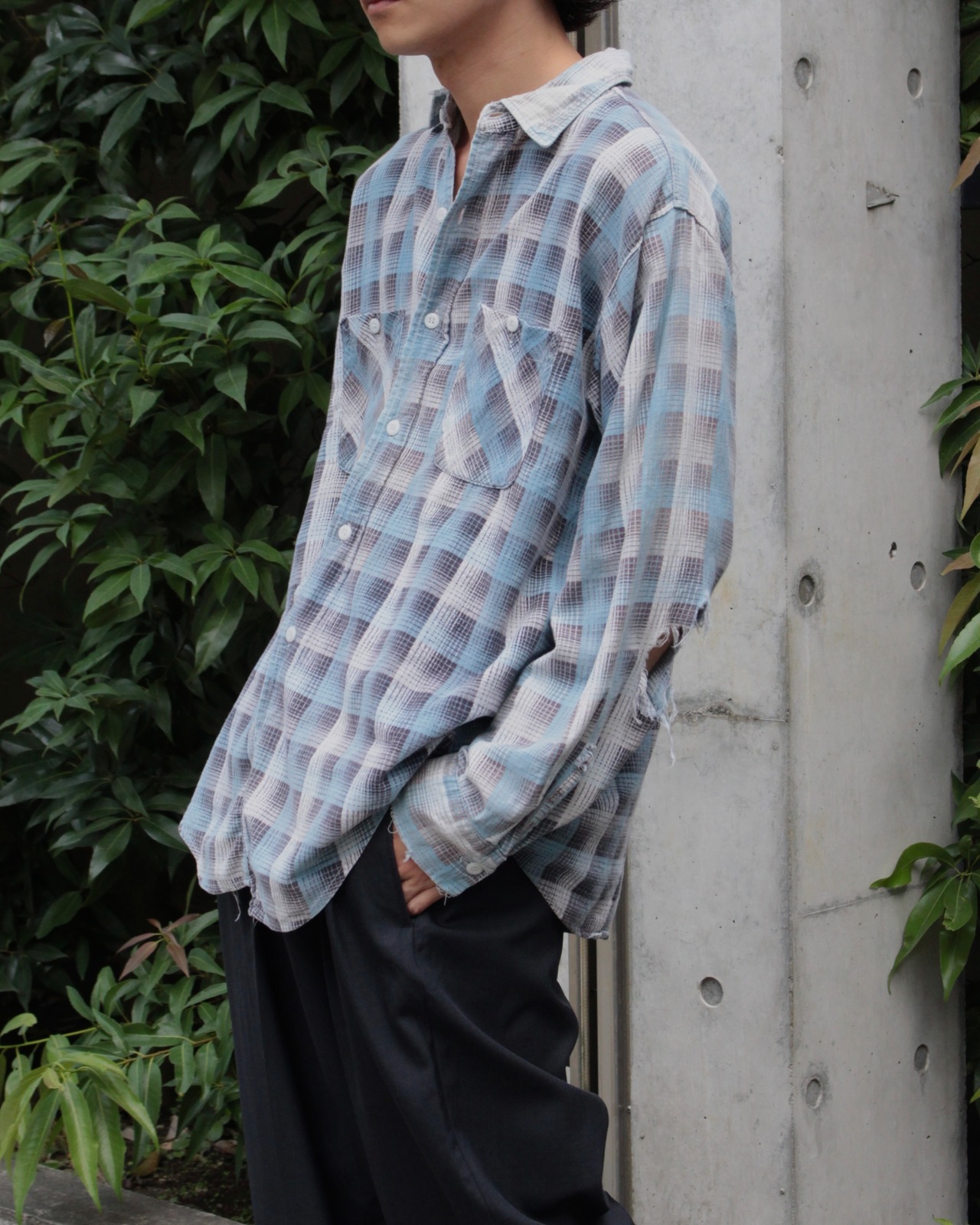 1960s vintage "Beltex"nice boro check pattern shirts made in usa【CU-8715】