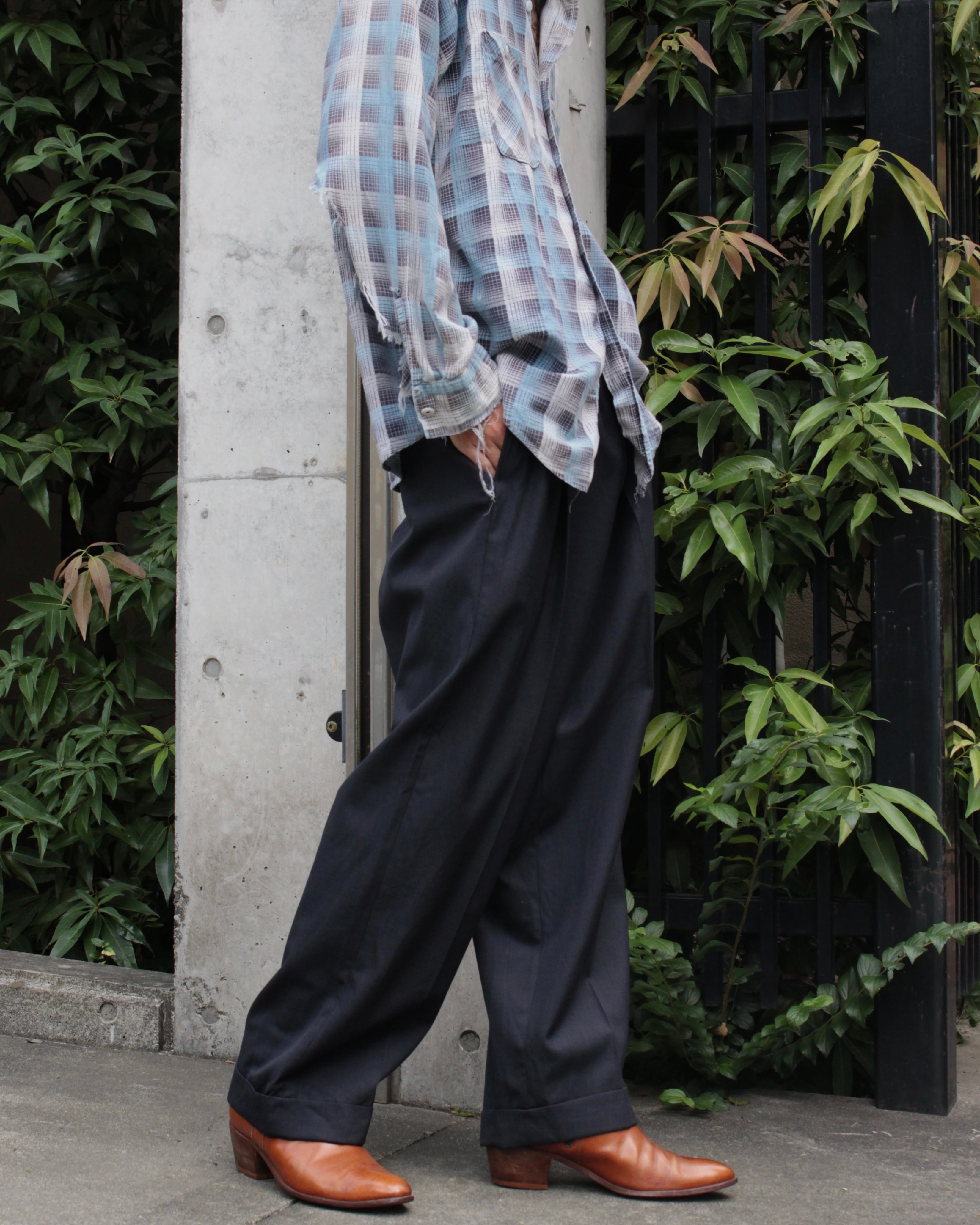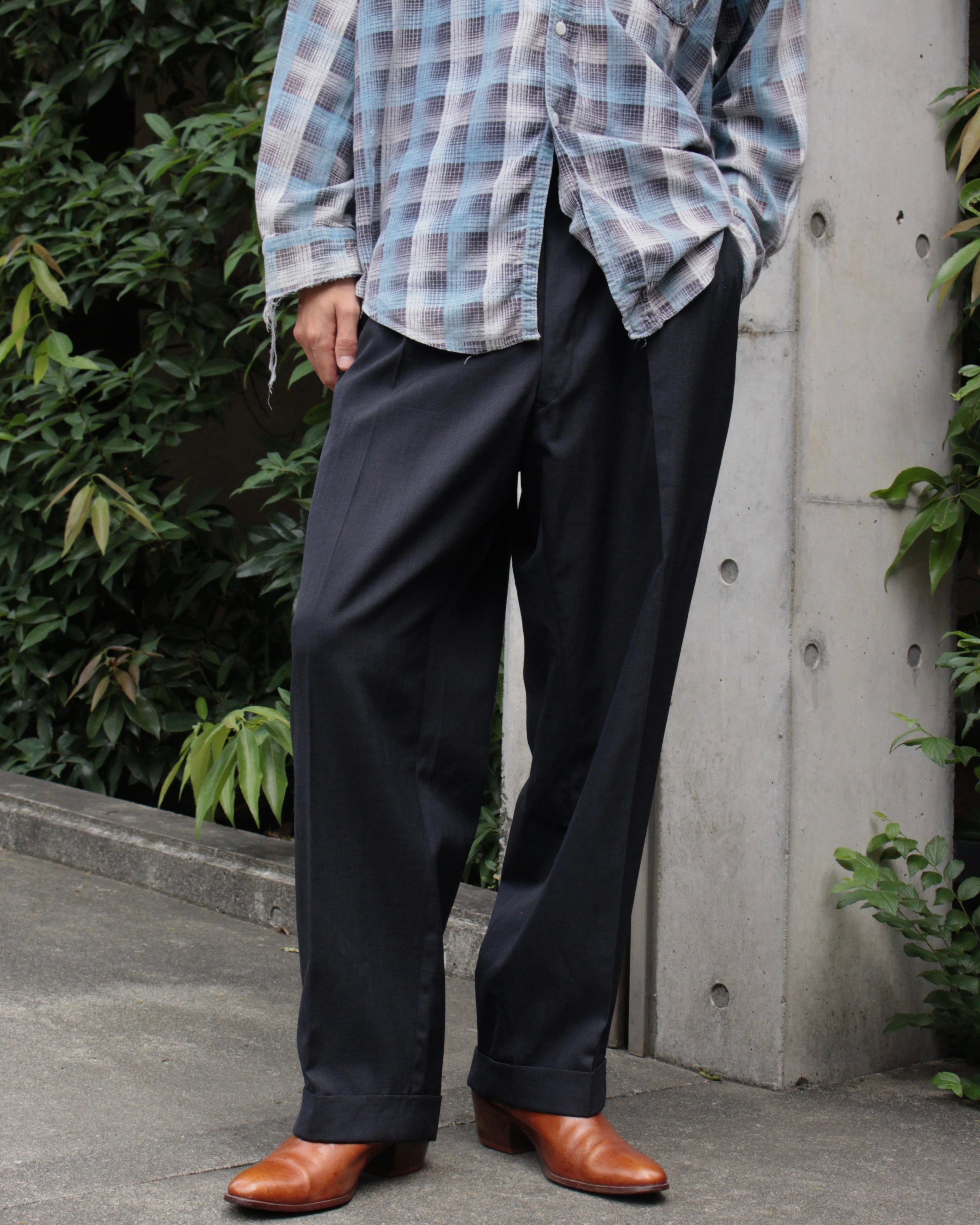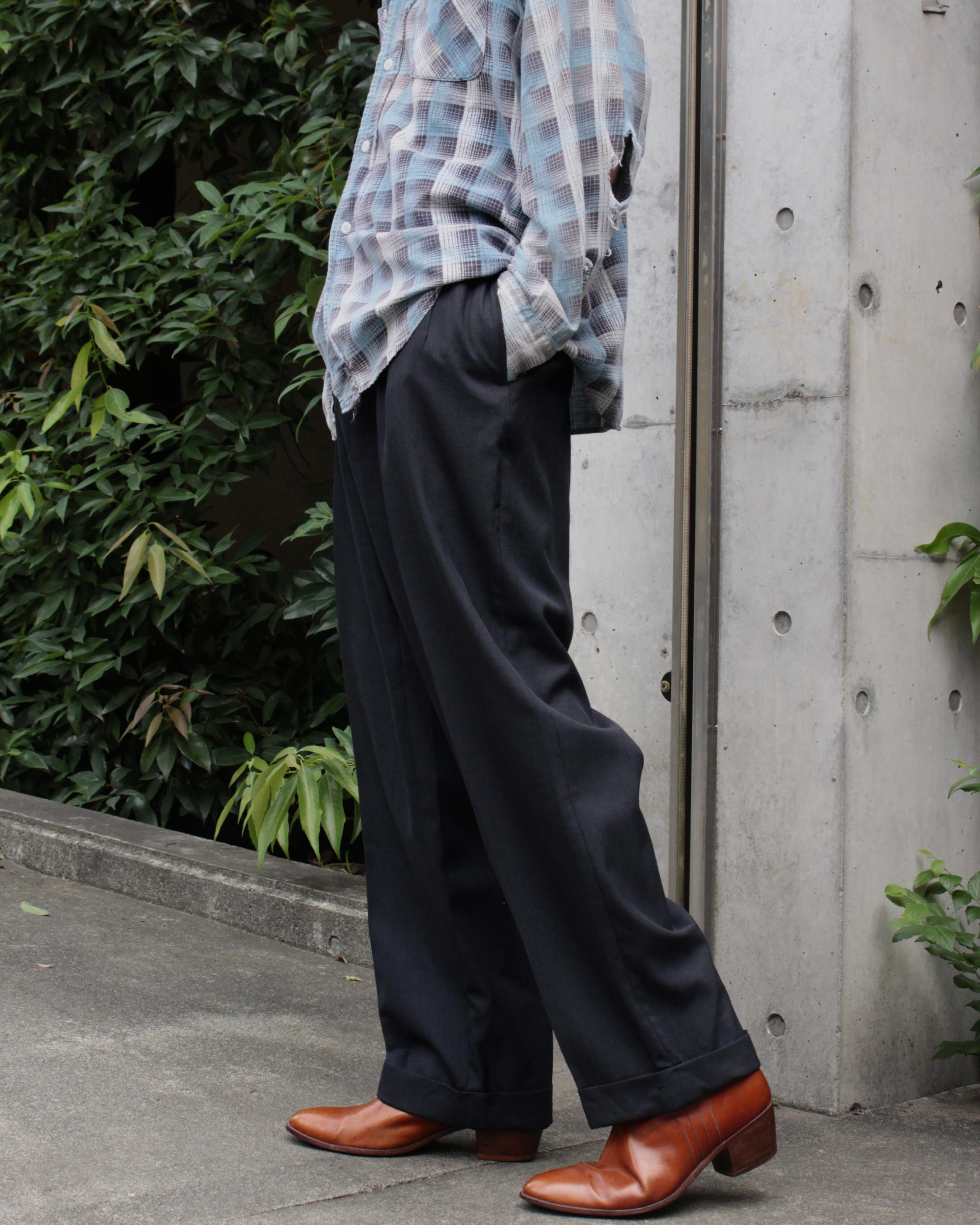1960s vintage dark navy color wide 2-tuck slacks【CU-8716】
