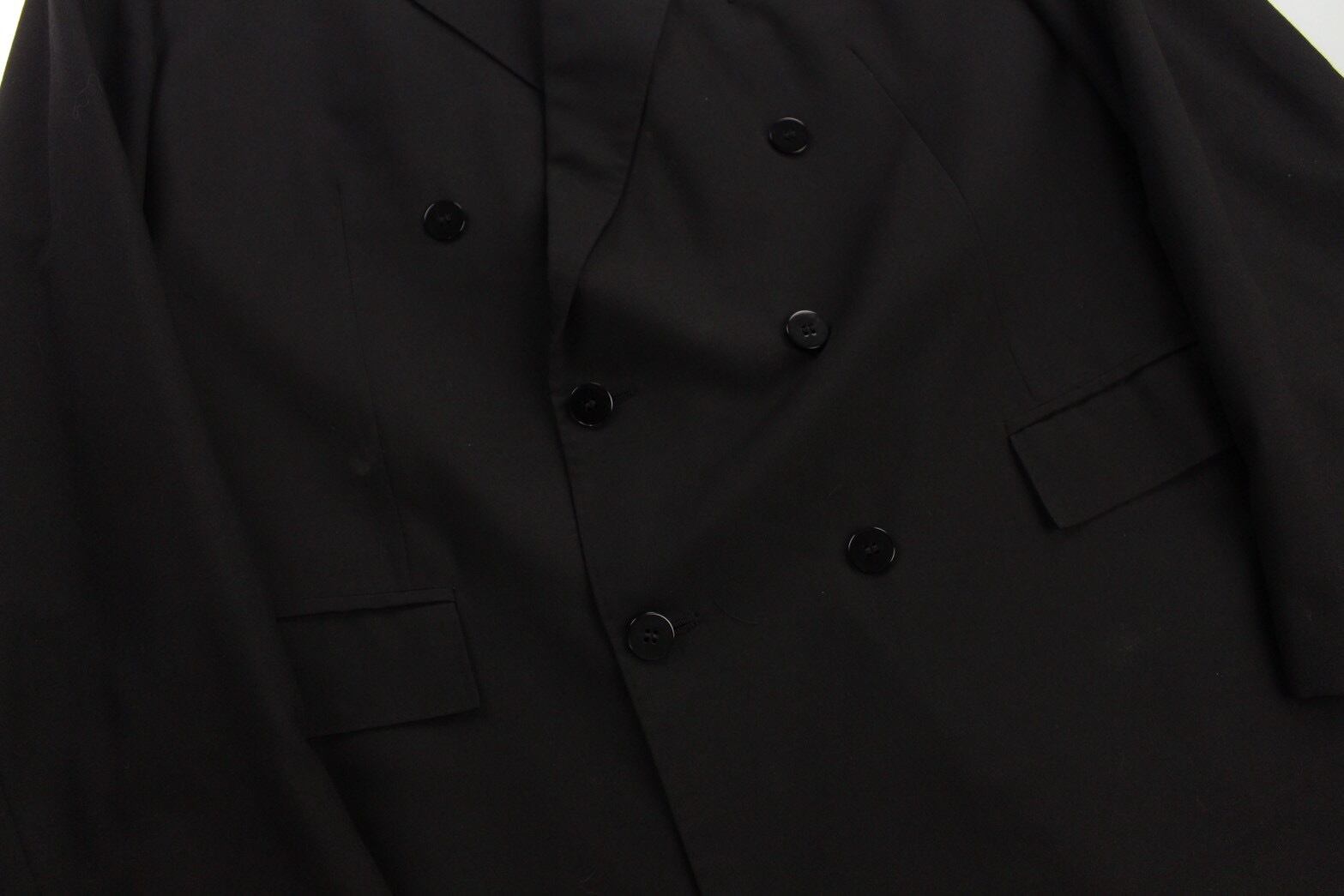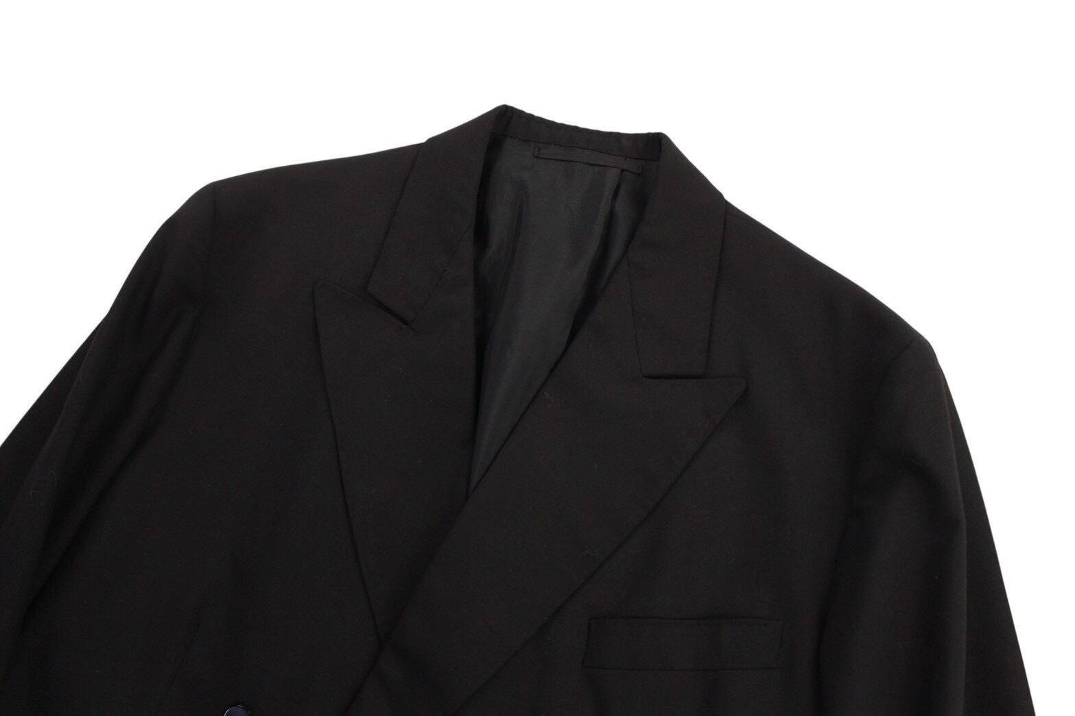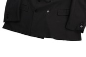 ダブルの仕立てで2ボタンのダブルブレスト仕様。ウールながらも滑らかな,起毛感のない贅沢なファブリックに,ブラックカラー。